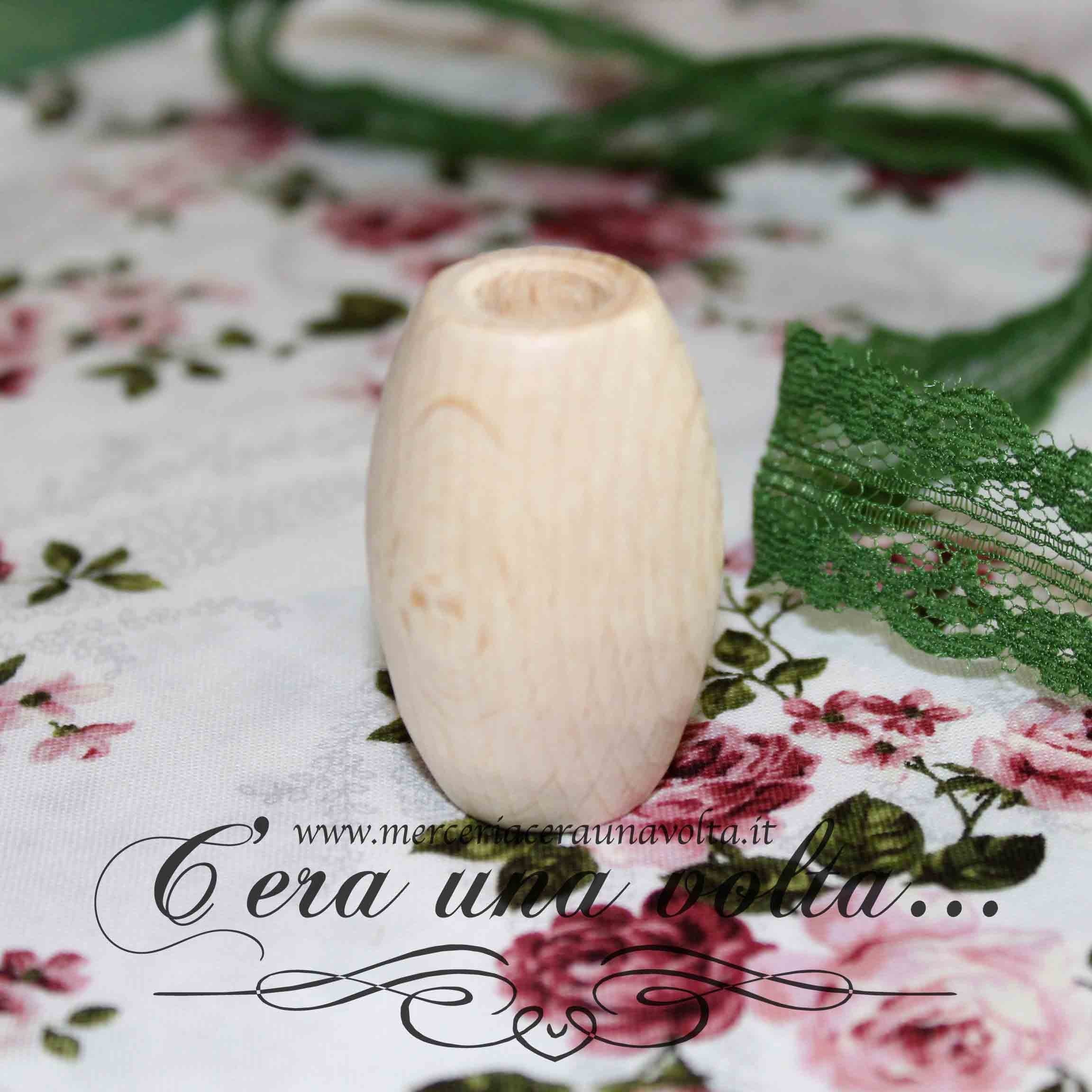 Perle ovali in legno naturale con foro passante grande, ottima finitura, ideali per decorazioni, modellismo, fai da te, bambole e pupazzi