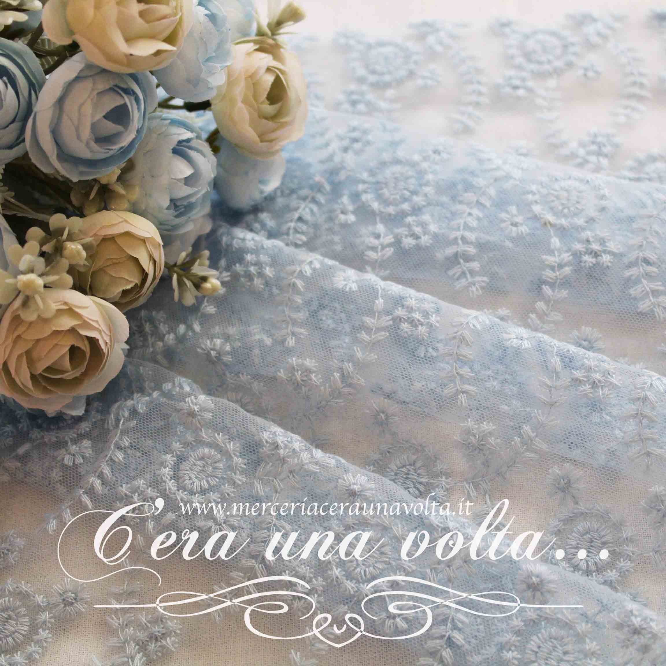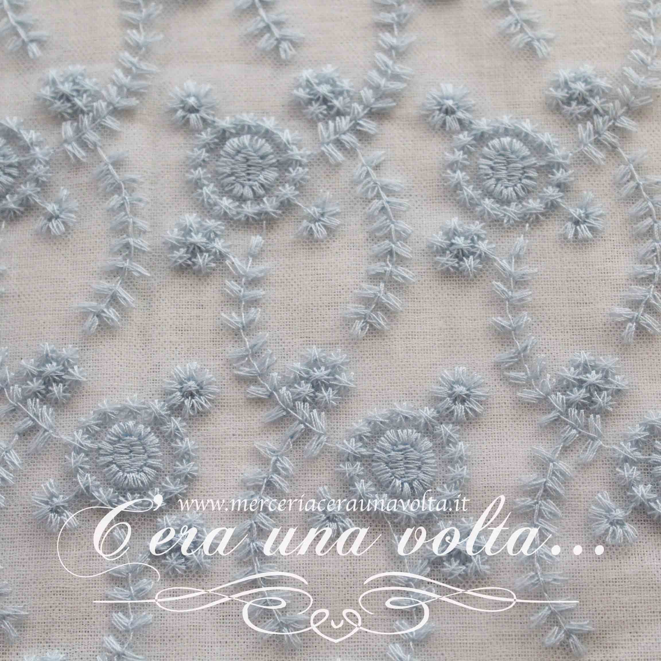 Un delicato ricamo su una base in tulle crea raffinati motivi floreali, un design romantico ed evocativo, dal fascino antico e provenzale.