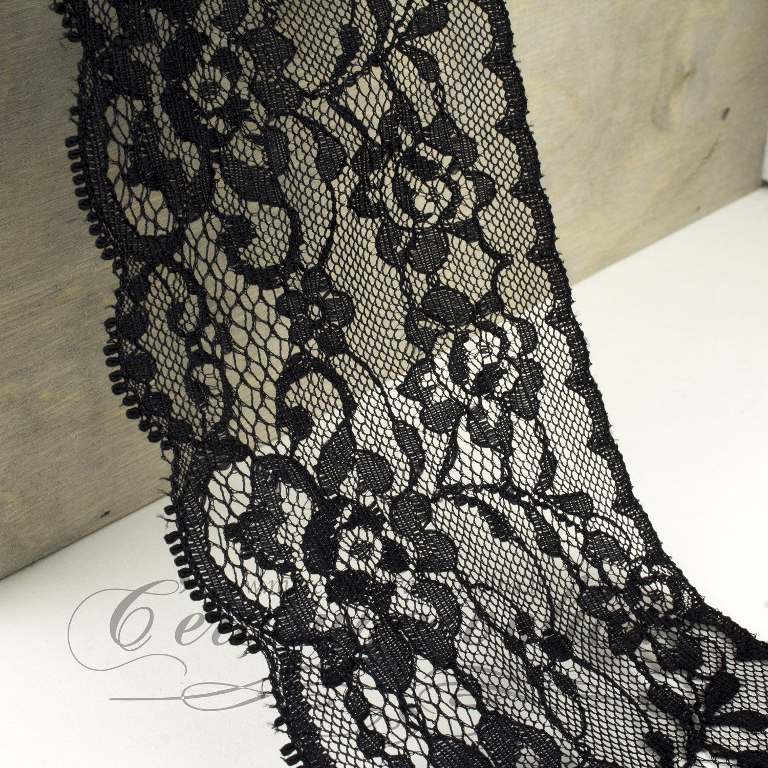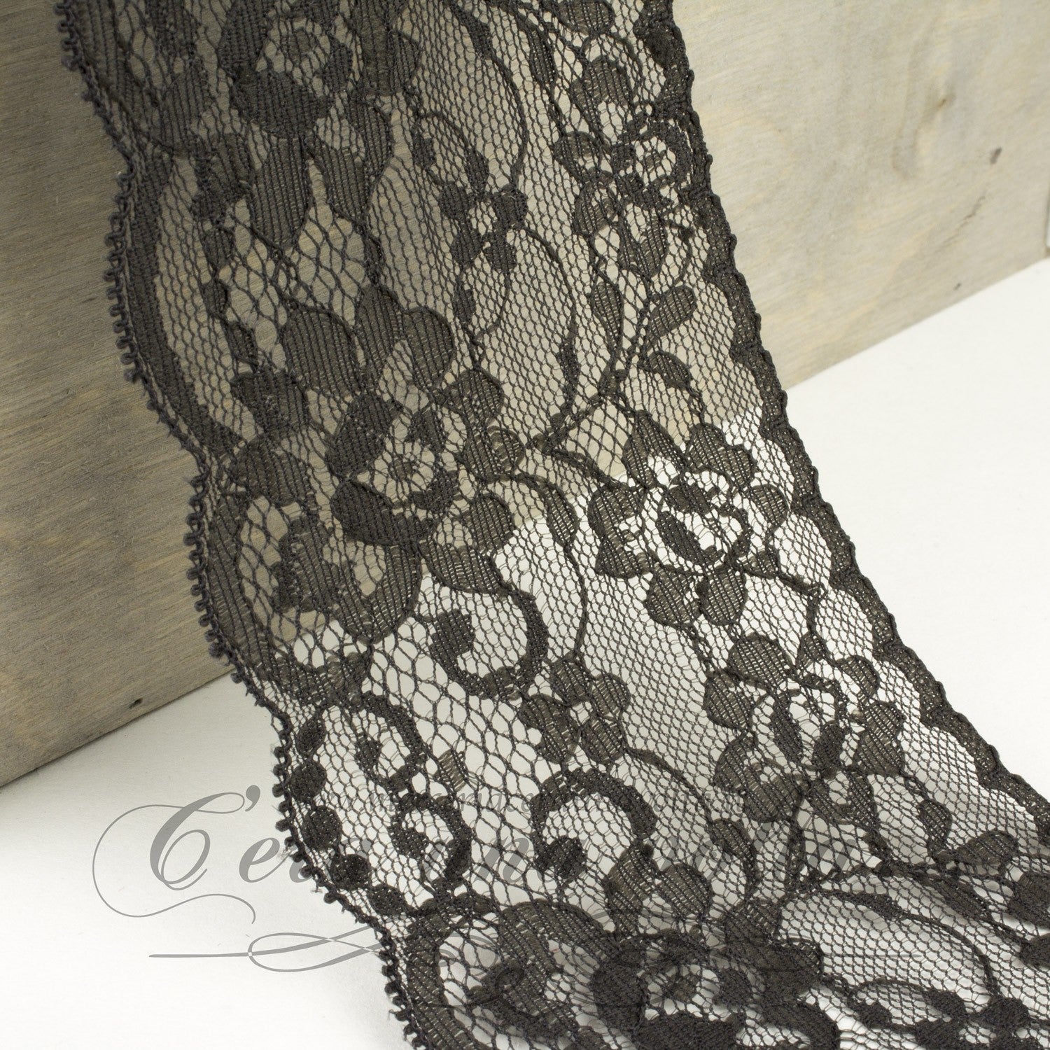 Pizzo fleurs romantiques, elegantemente ricamato su base in tulle con motivi floreali e smerlo finale.