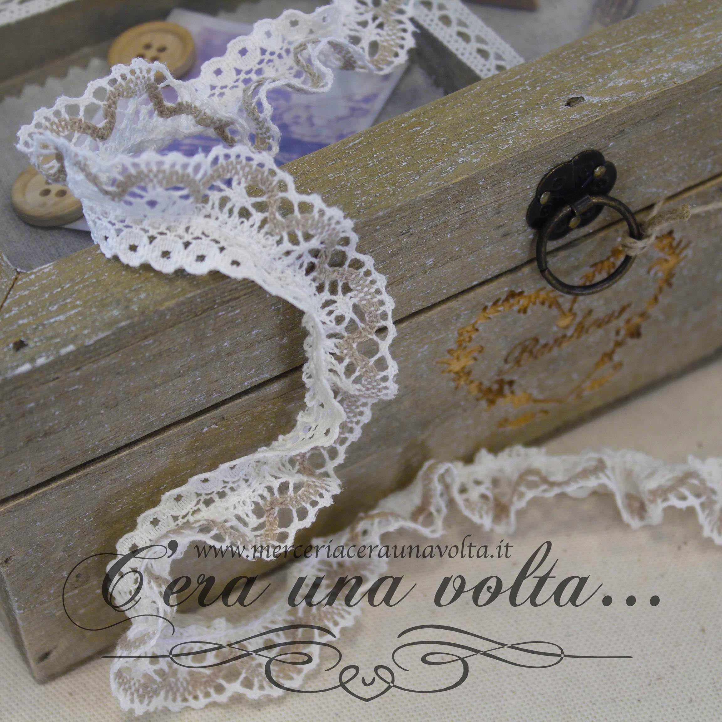 Un pizzo perfetto per dare una nota raffinata ai tuoi complementi, Bianco Antico e un delicato color Corda naturale, esaltano...
