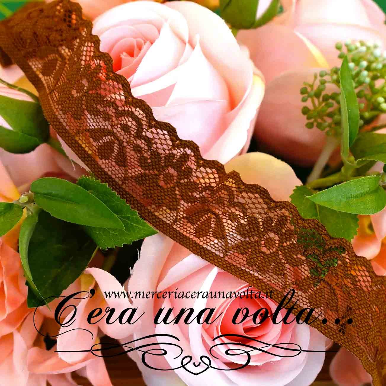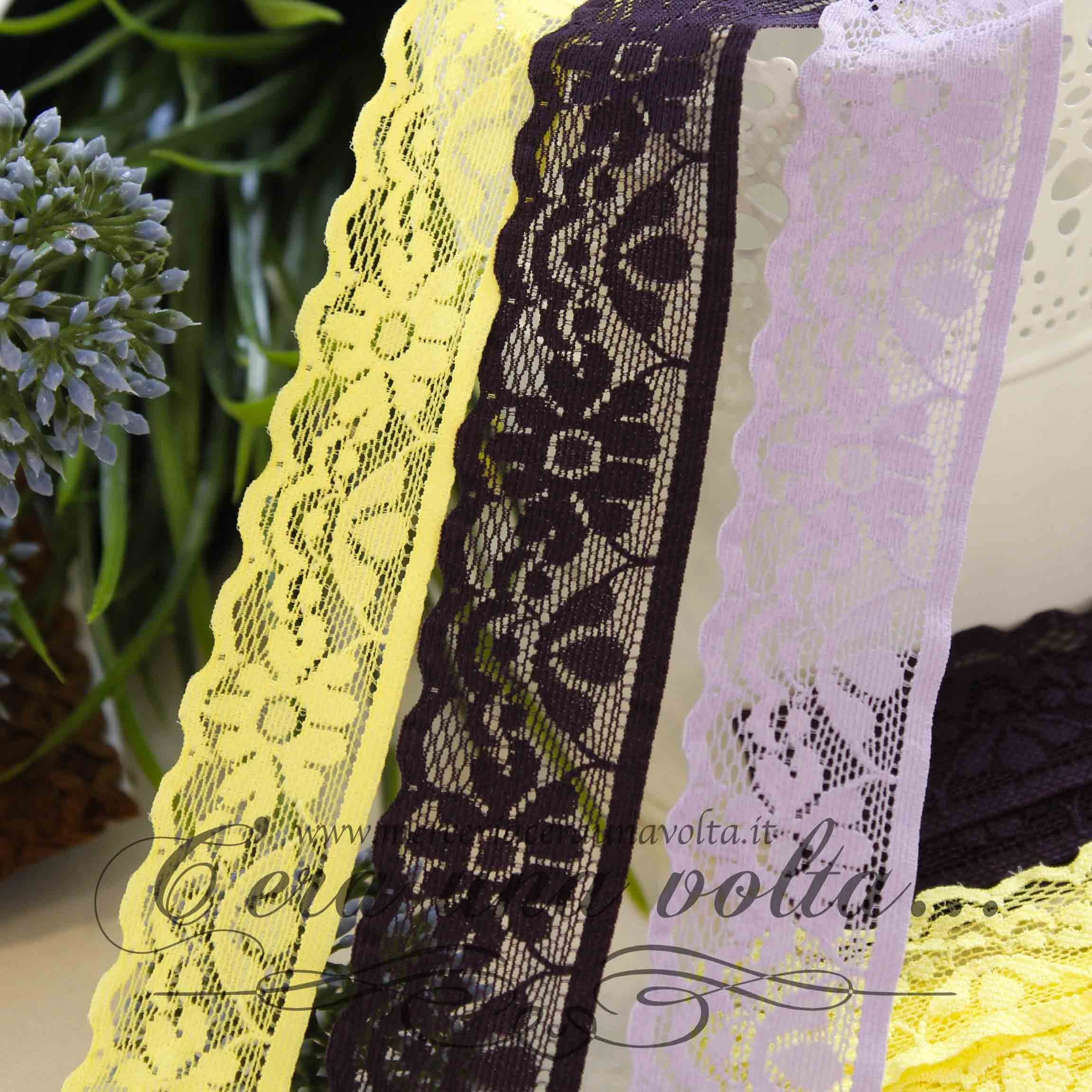 Pizzo in tulle Flower elasticizzato, con base in tulle, e romantici decori vittoriani, smerlato sul fondo. Disponibile in 6 varianti