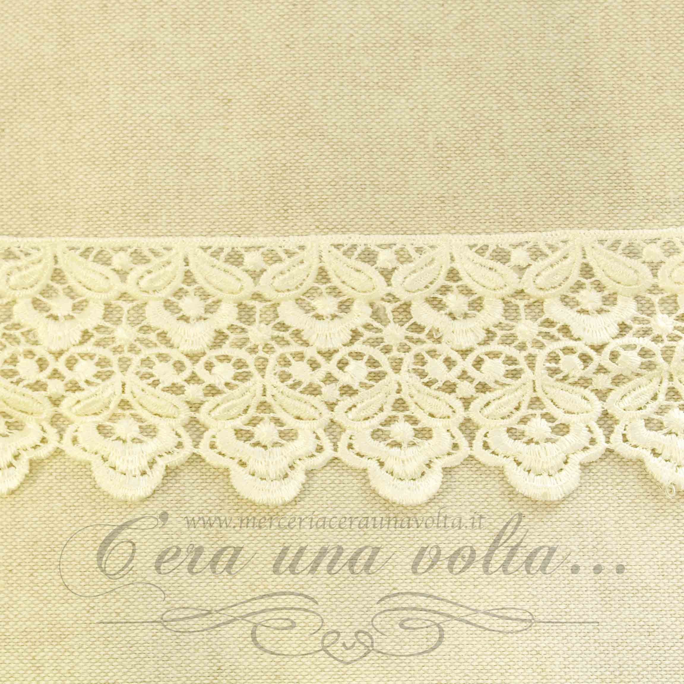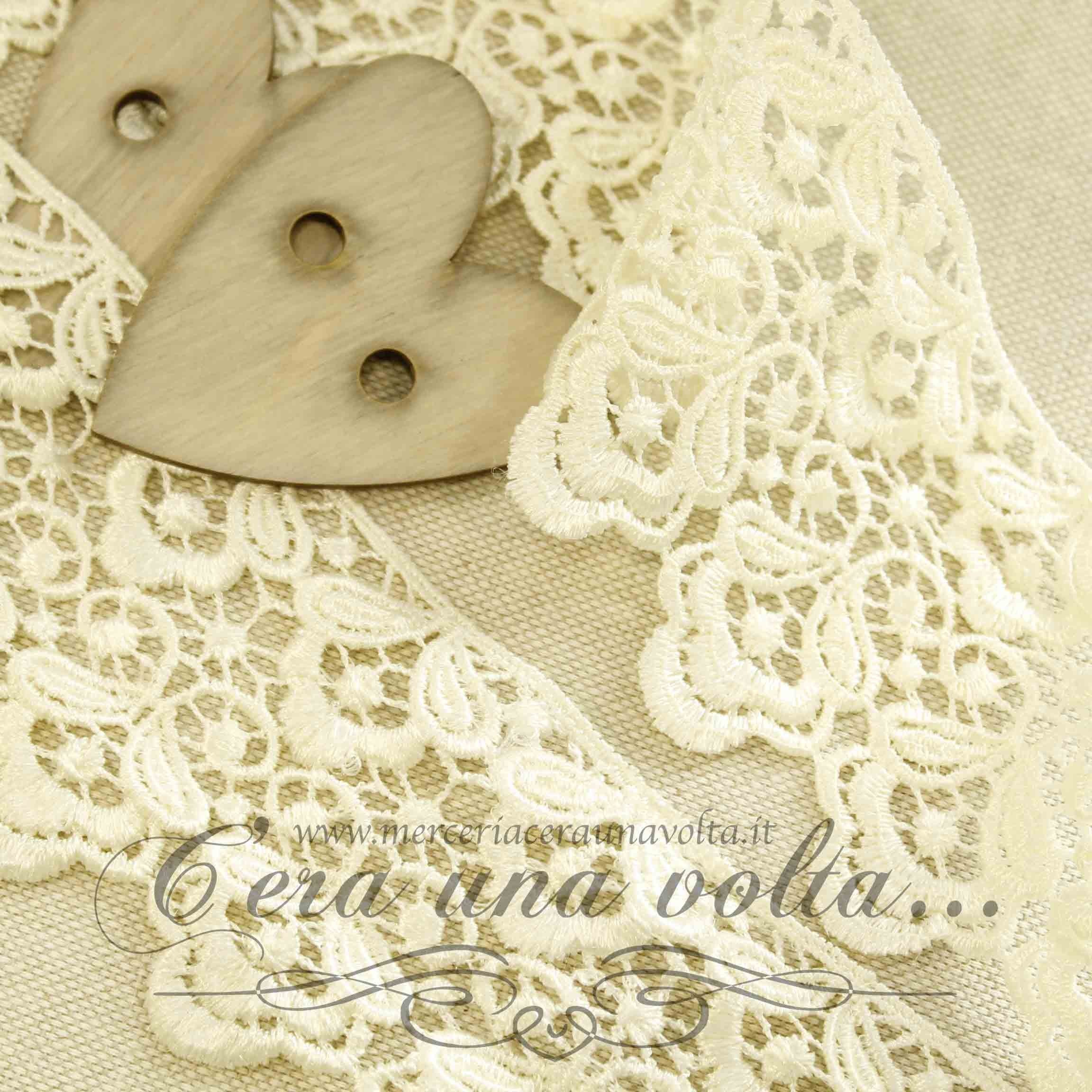 L'esprit è brioso e chiaro in questo pizzo macramè di fattura francese, ispirato ai pizzi dell'Ottocento dove l'anima e la predilezione per l'eleganza traspare in ogni dettaglio. Il Vintage si fonde con il moderno dando vita a romantiche creazioni