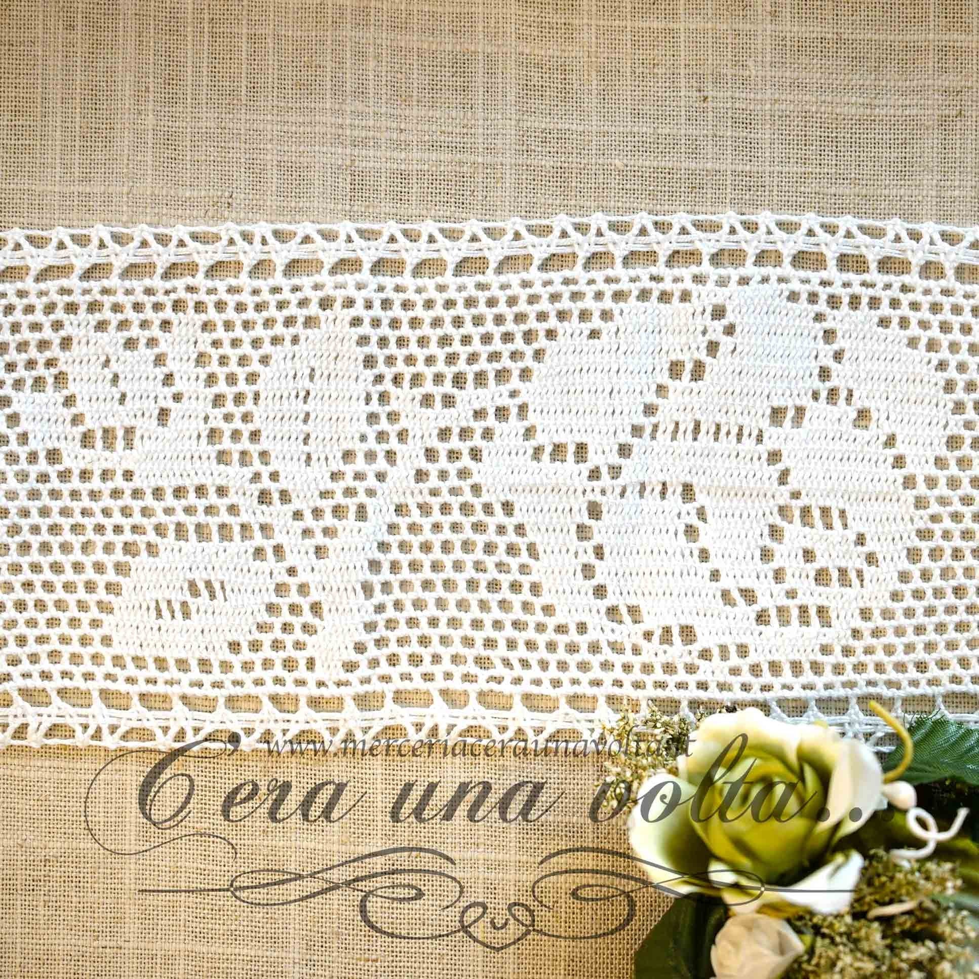 Pizzo dalla caratteristica quadrettatura a rete meglio conosciuta come filet, ricami a punto tela danno vita a questa meravigliosa rosa,...