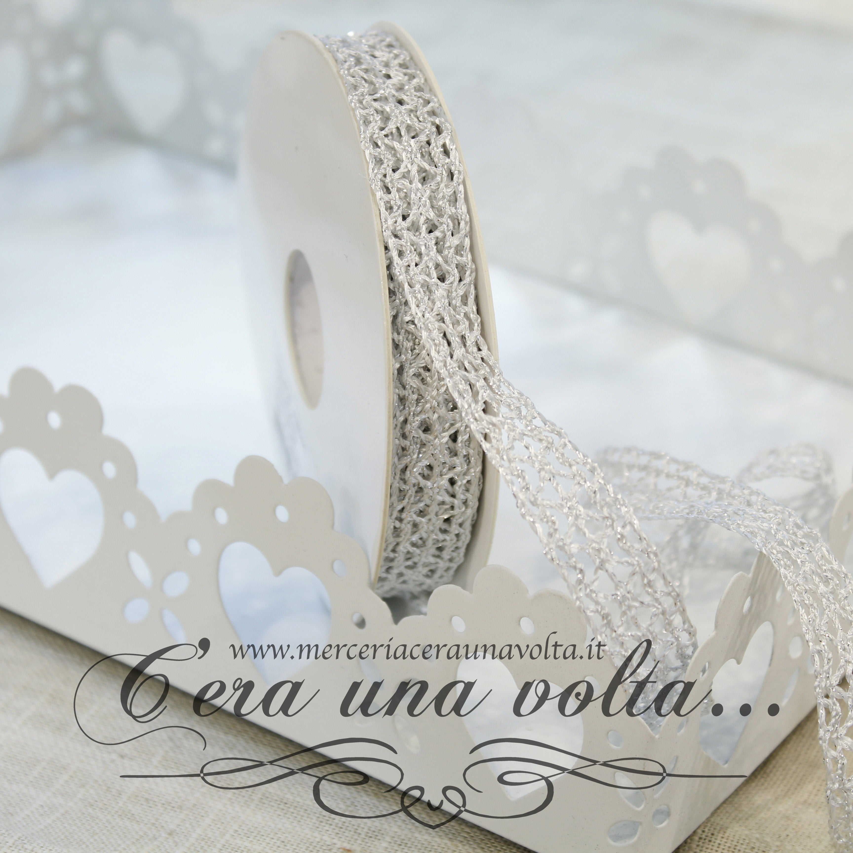 Una trama preziosa lavorata con un raffinato filato lurex, un pizzo incorniciato da entrambi i lati, evoca con elegante semplicità un'atmosfera festosa autentica.