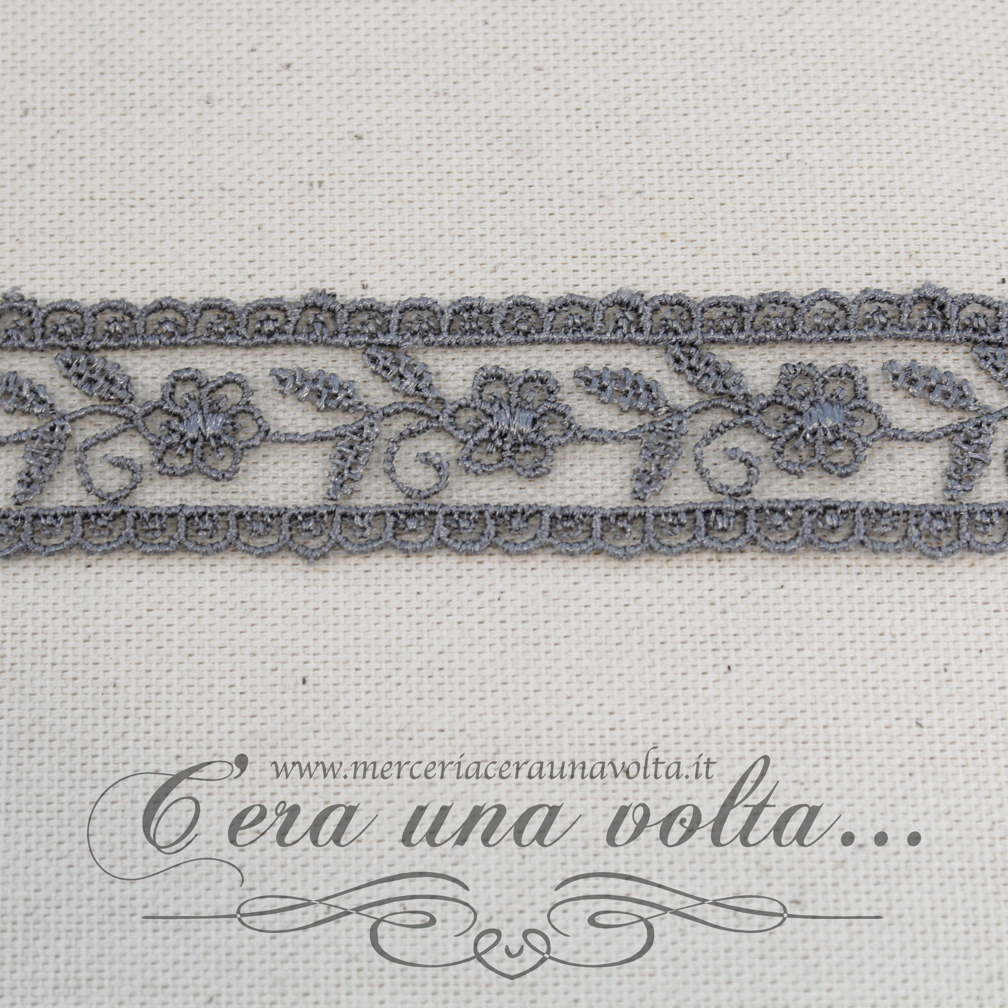 Pizzo tramezzo in tulle, con ricamo a rilievo a motivi floreali, una scia armoniosa e piacevole, smerlato da ambo i lati, dall'aspetto etereo e romantico.