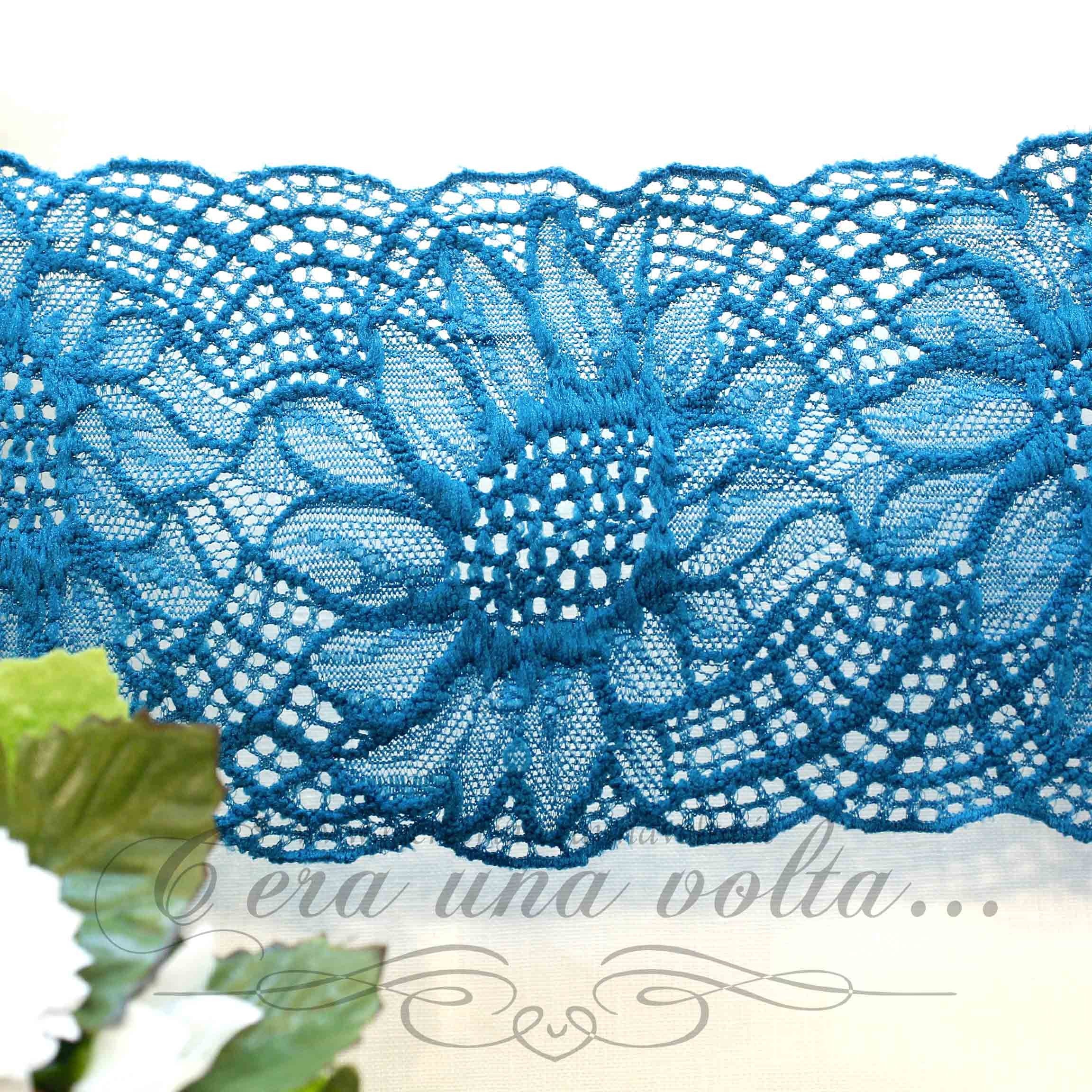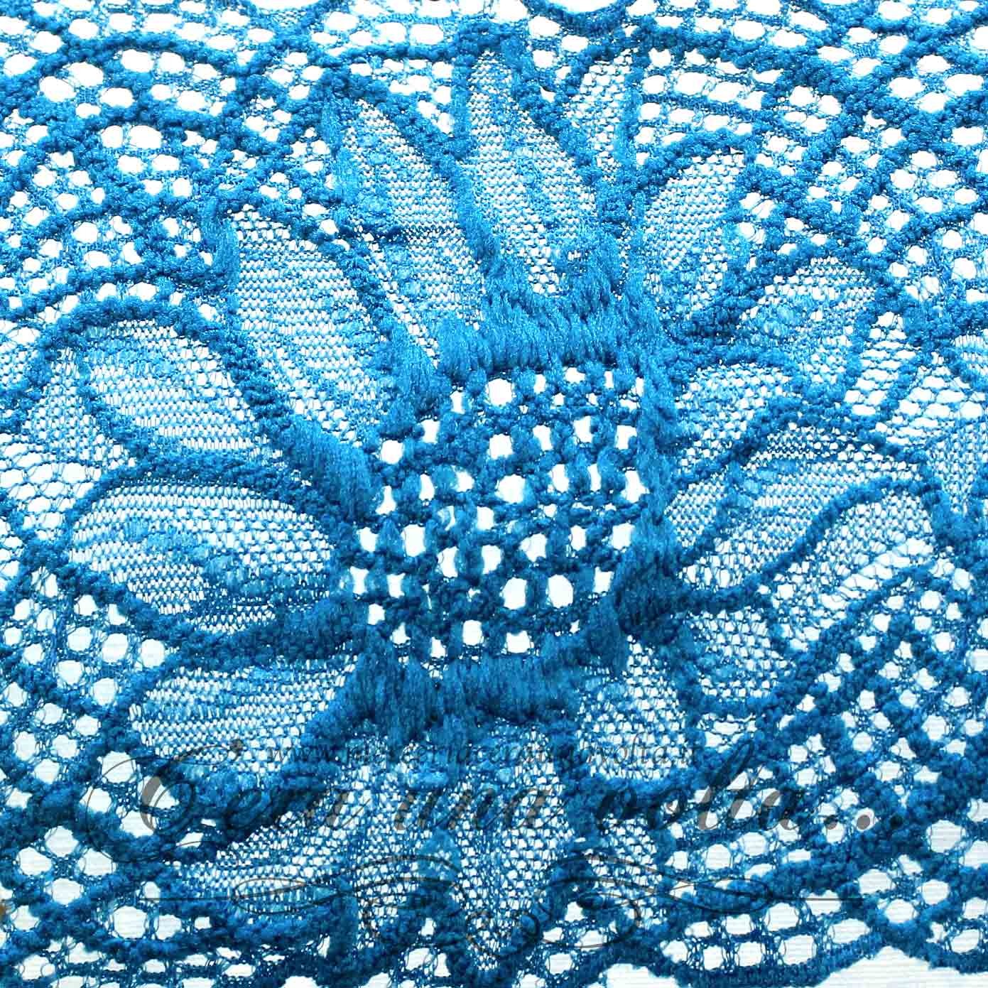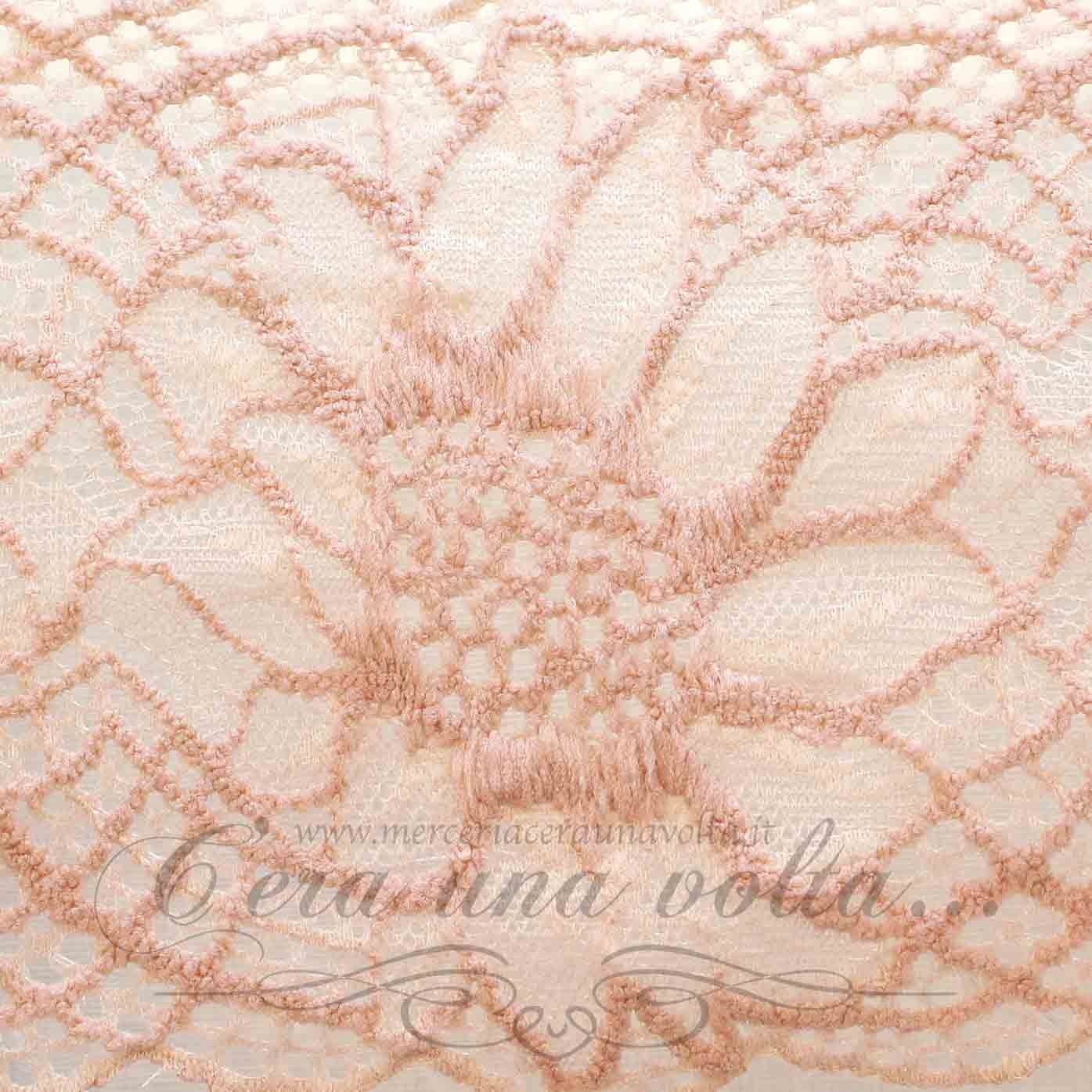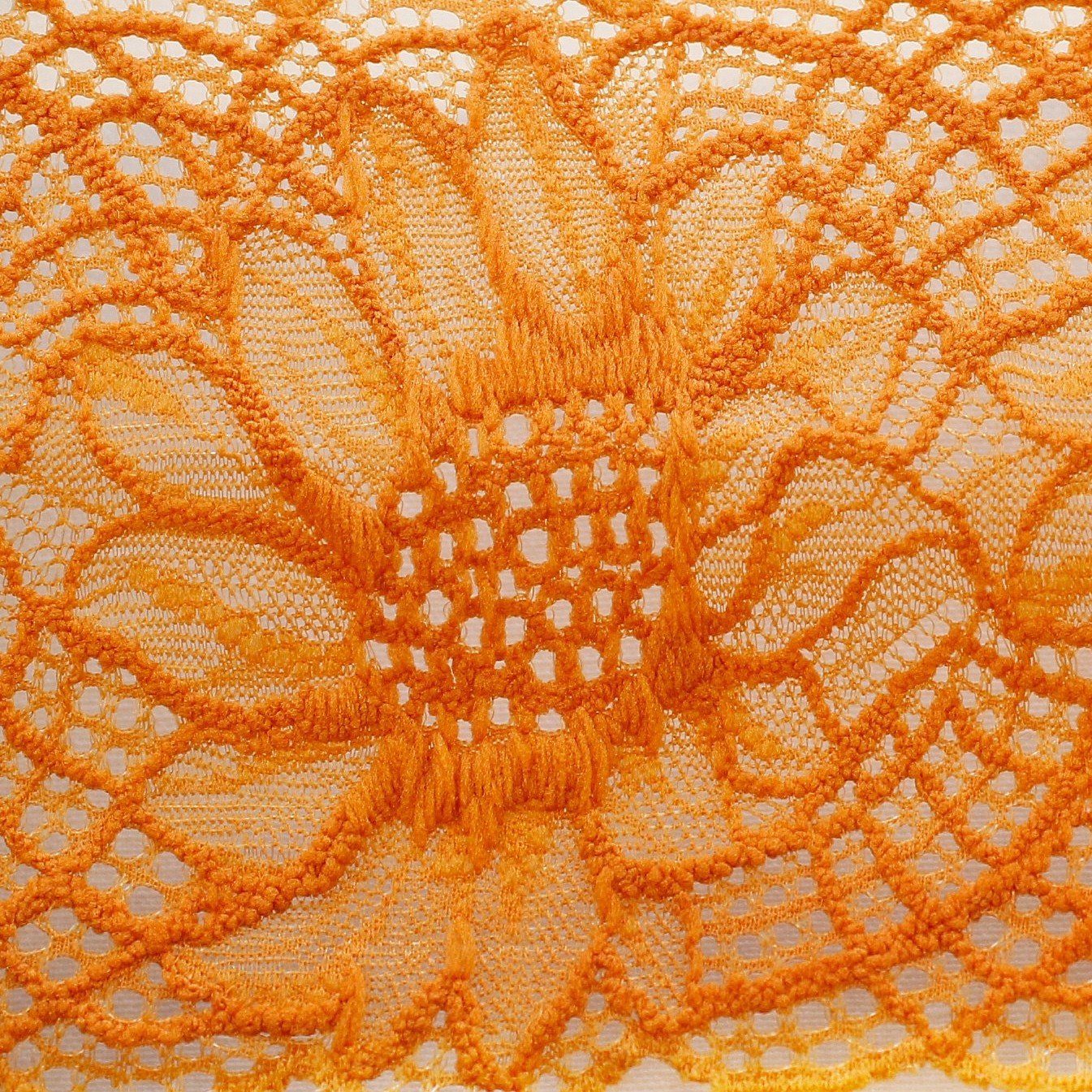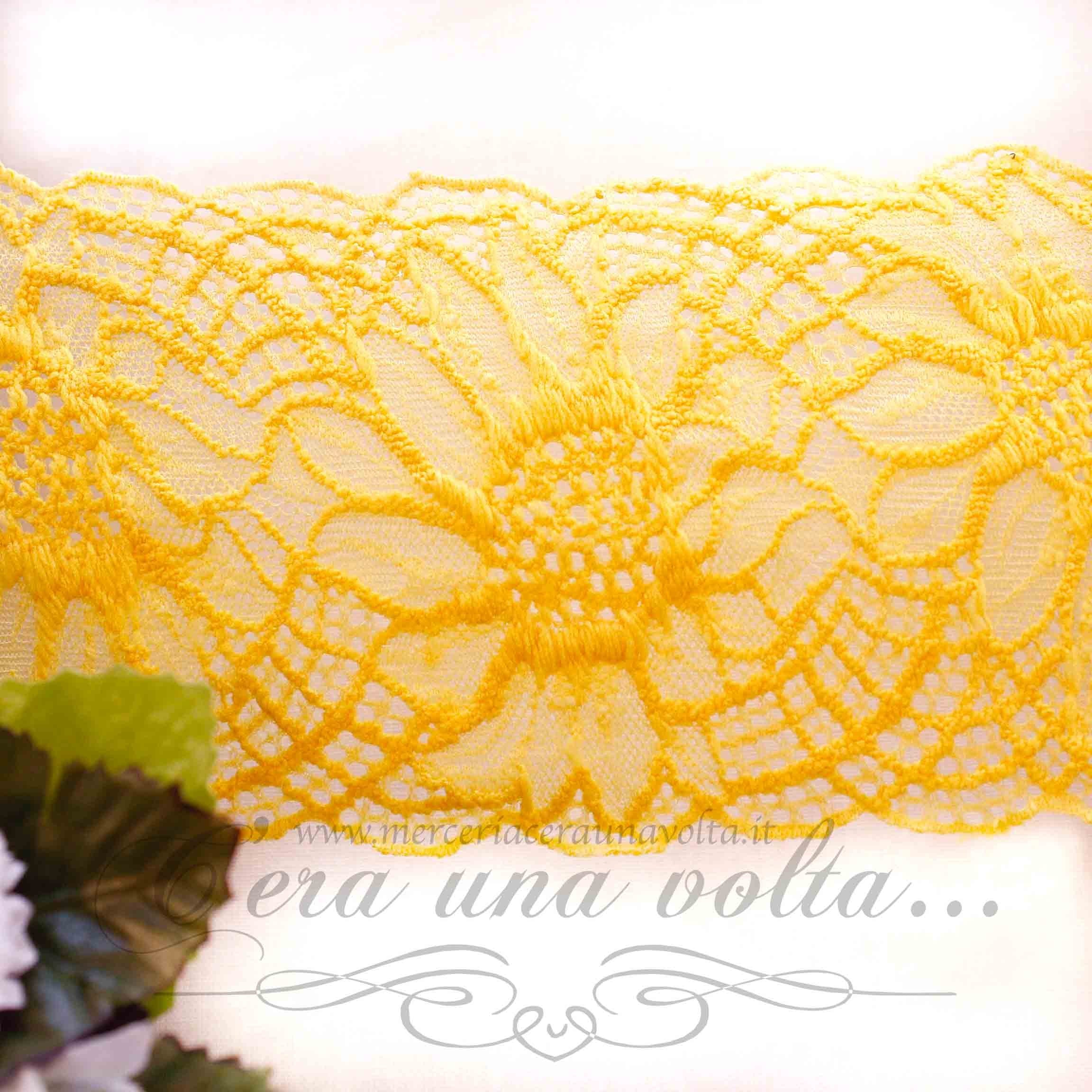 Pizzo tramezzo Sunflowers elasticizzato con base in tulle, ispirato all'eleganza della natura, motivi floreali, venature delicate, linee curve morbide. Smerlato...