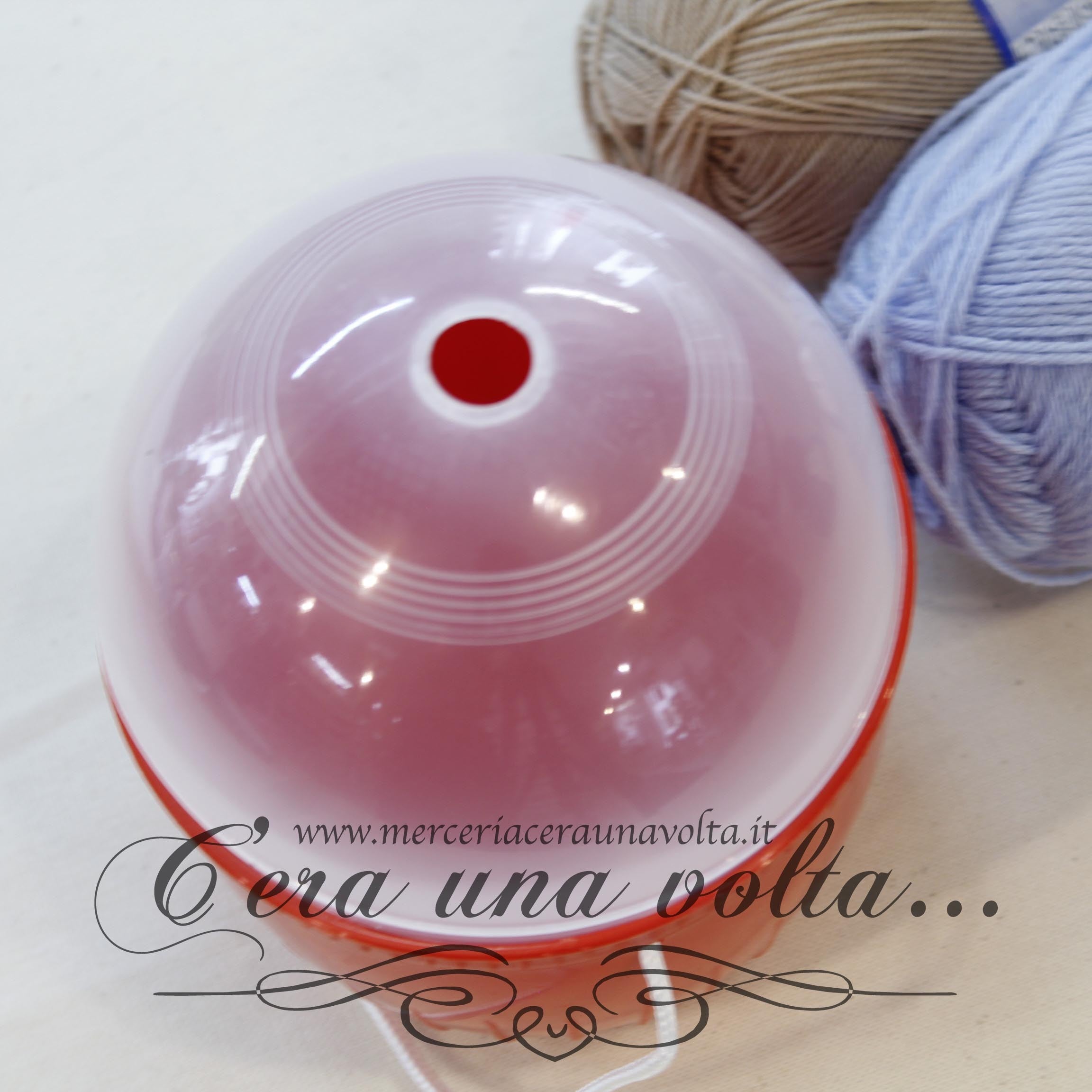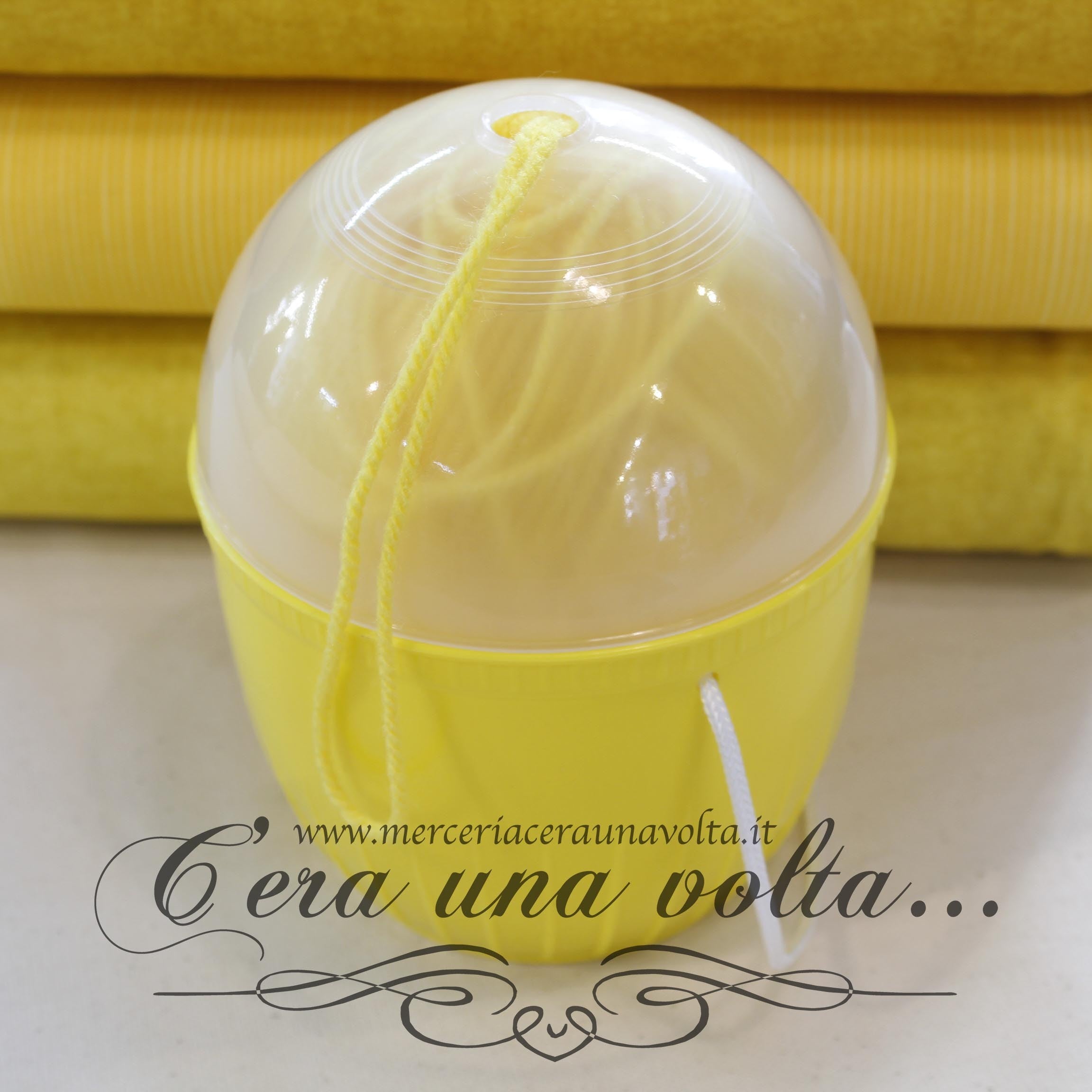 Portagomitoli per lane e cotoni, consente di lavorare in maniera pratica e ordinata, evitando che il filo si aggrovigli o si sporchi rotolando a terra; si appoggia il gomitolo all'interno del contenitore e si infila il filo attraverso il foro sulla cima. La base è in plastica colorata con chiusura ermetica trasparente. Dotato di un cordino per il trasporto. Disponibile in 3 varianti
