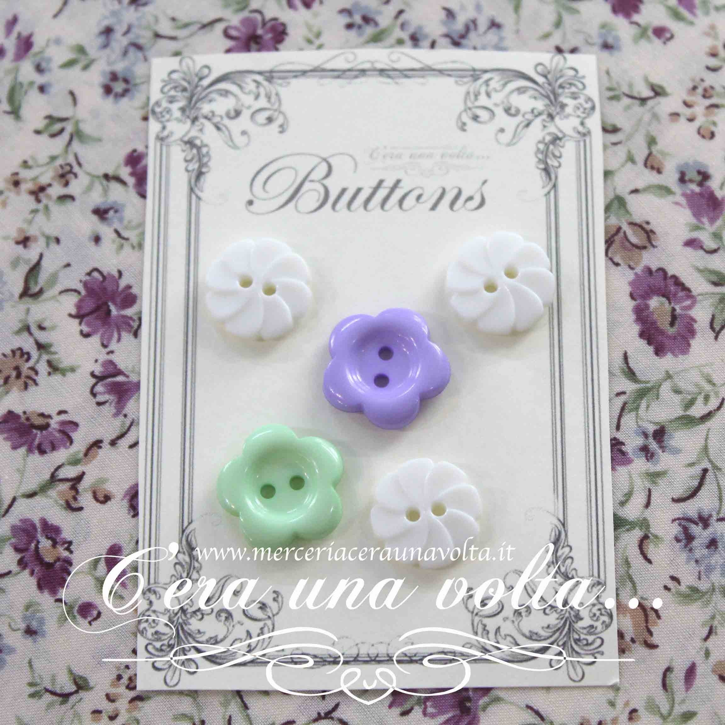 Set 5 bottoni fiori Shabby, ideali per decorare e rifinire capi di abbigliamento, per aggiungere un tocco personale alle vostre creazioni. Trova largo uso nell'hobbistica creativa.