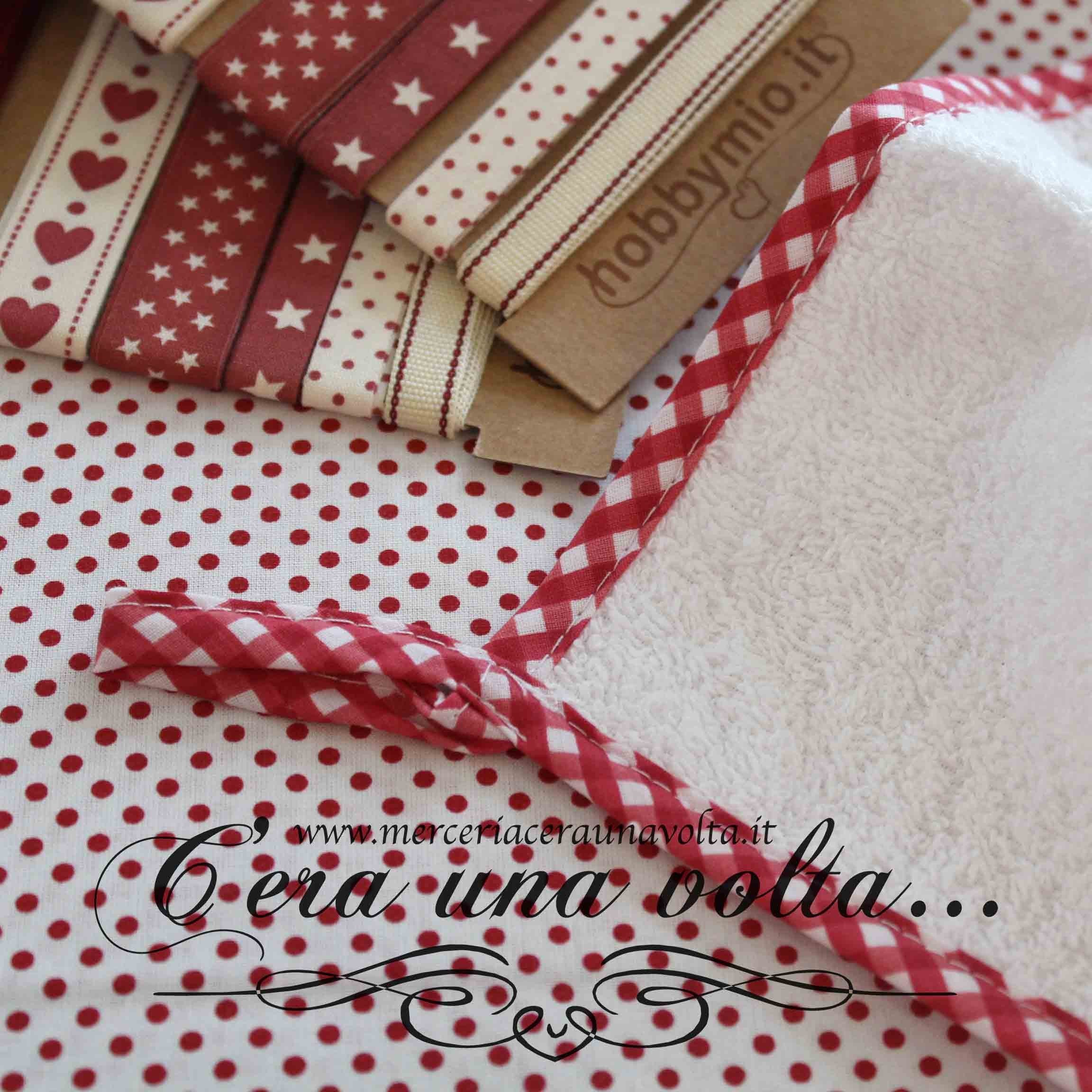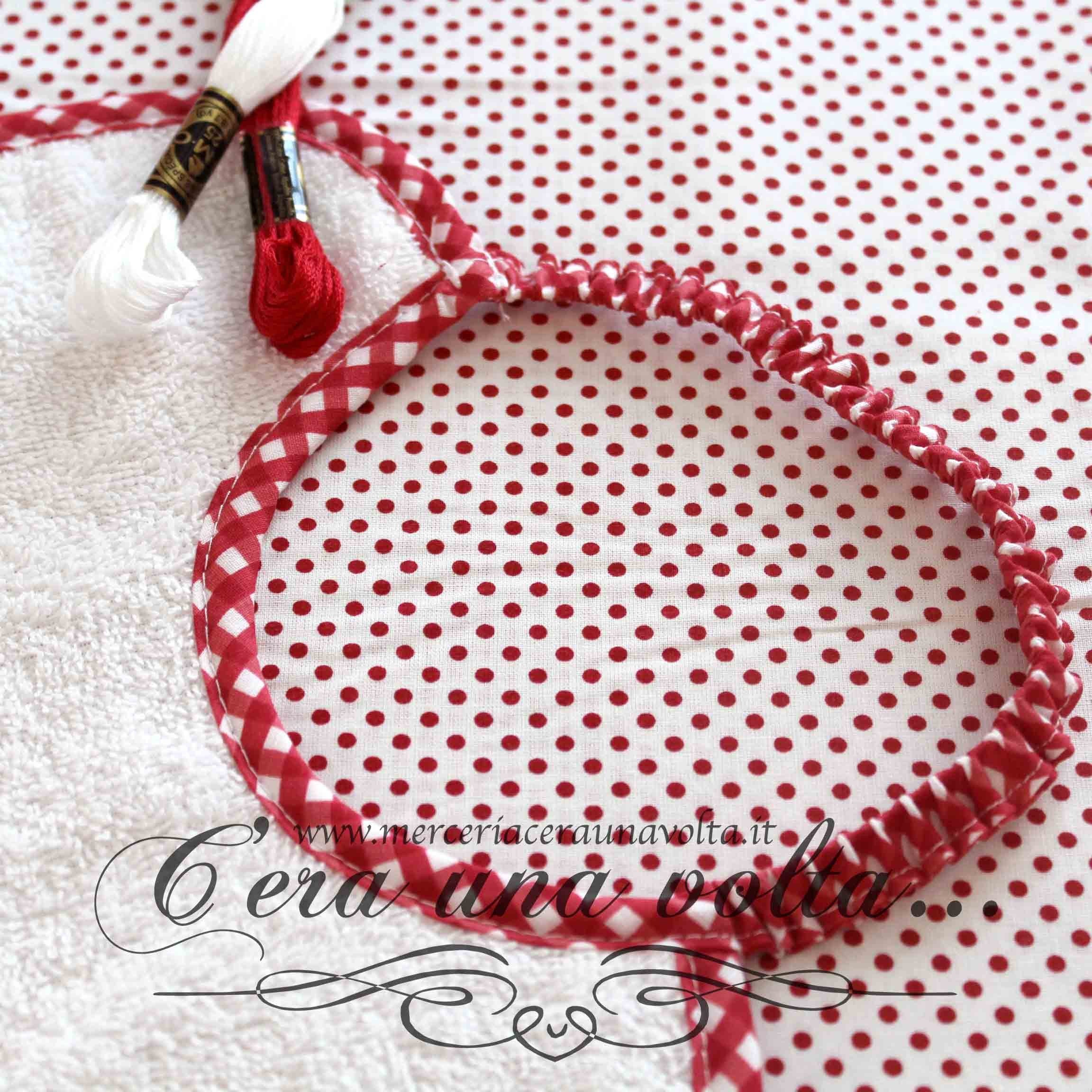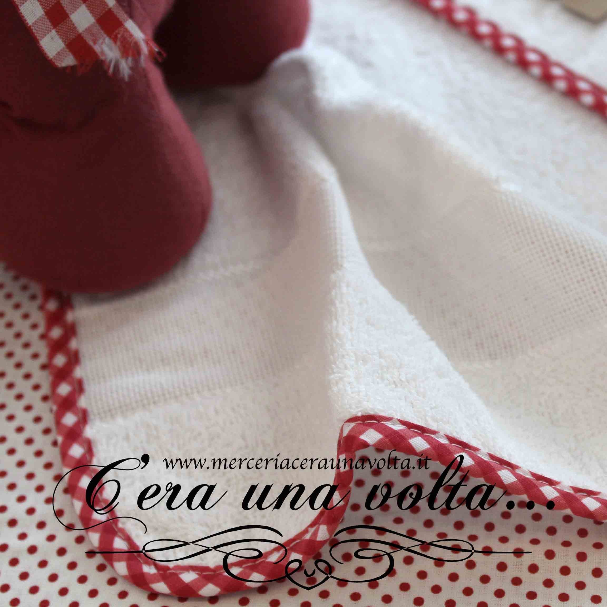 Set asilo 2 pz da ricamare Vicky Rosso, composto da: 1 bavaglino con elastico, 1 asciugamani con asola per appenderlo,...