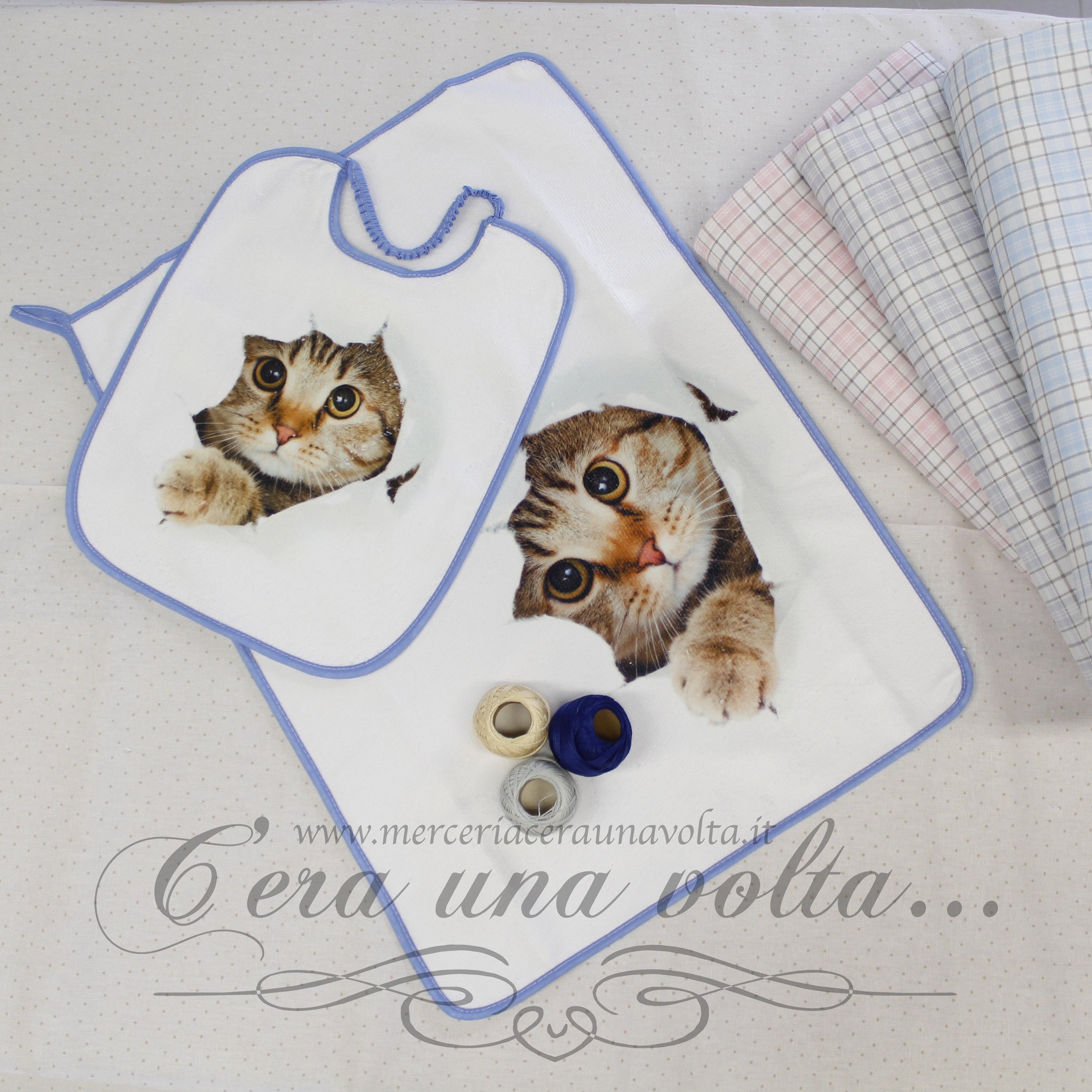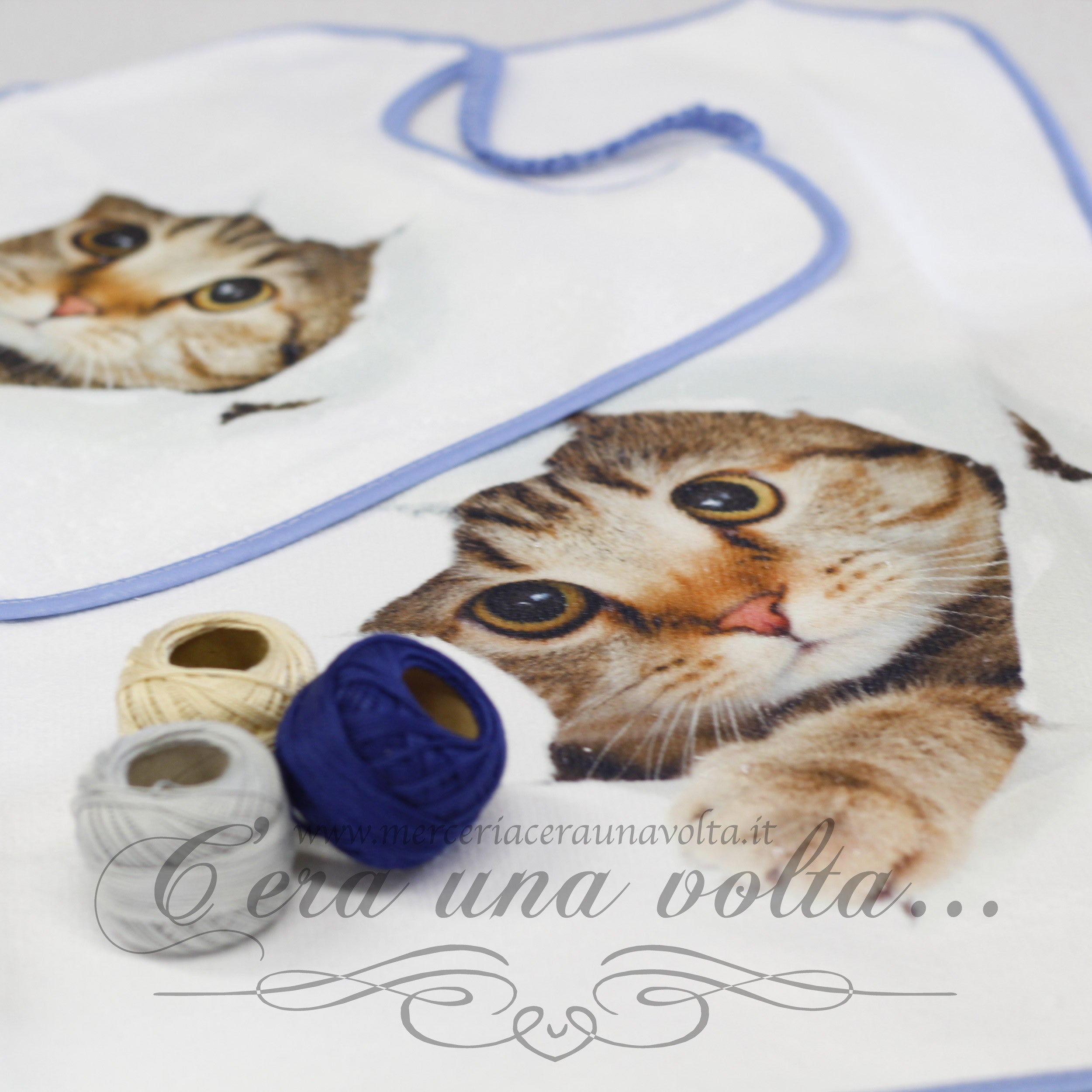 Set asilo, con stampa di un gattino composto da: 1 bavaglino con elastico , 1 asciugamani con asola per appenderlo,1...