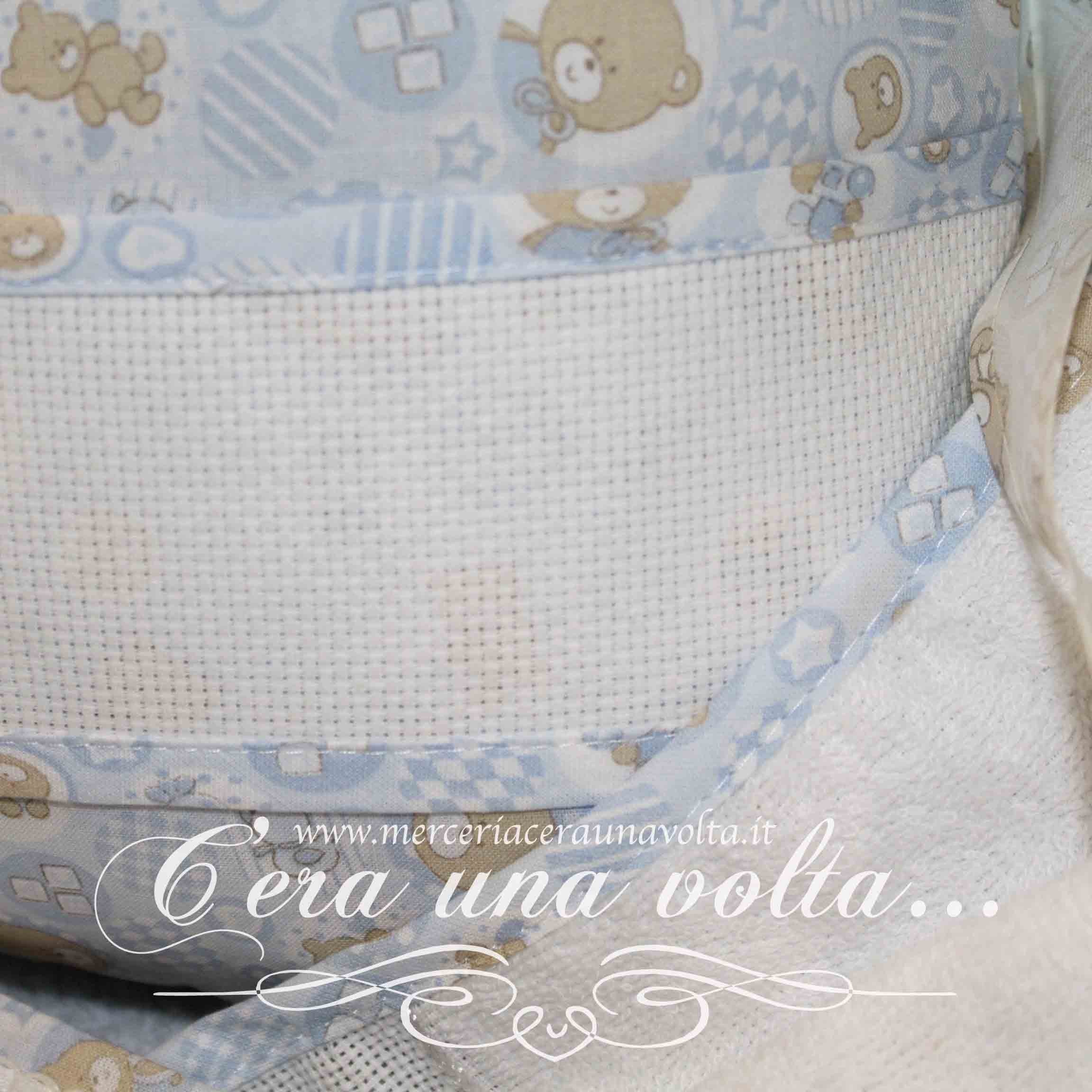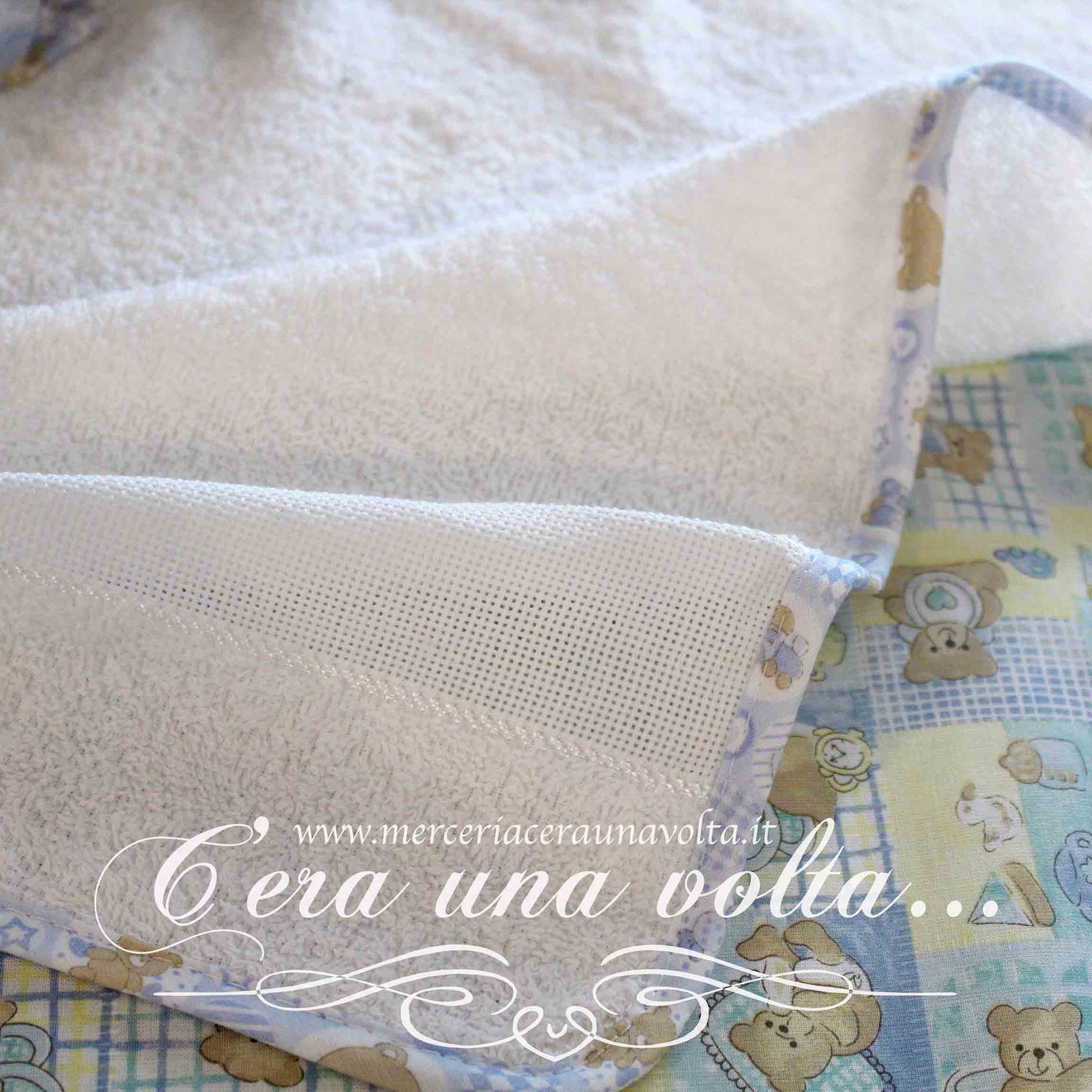 Set asilo da ricamare con simpatica stampa composto da: 1 bavaglino con elastico , 1 asciugamani con asola per appenderlo,...
