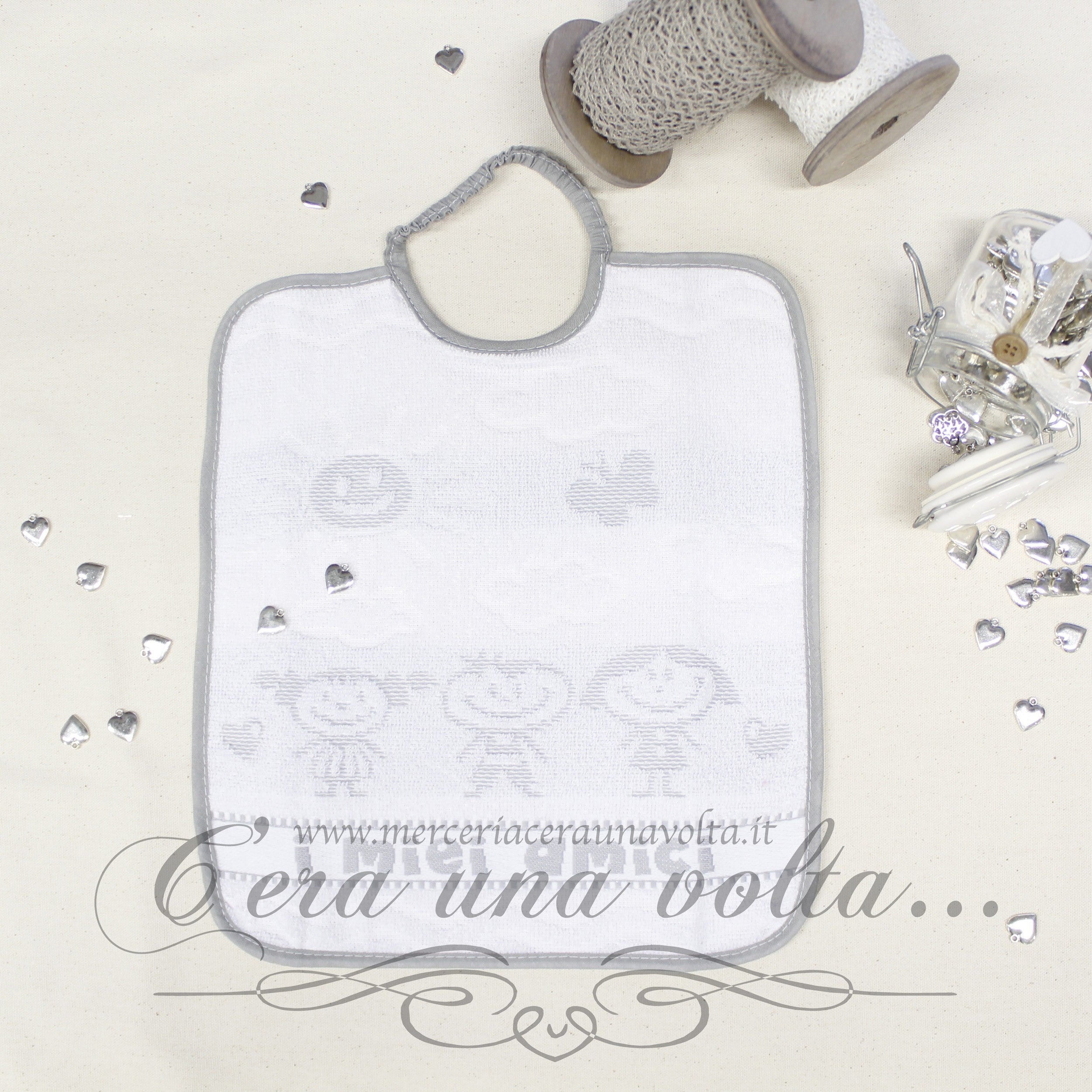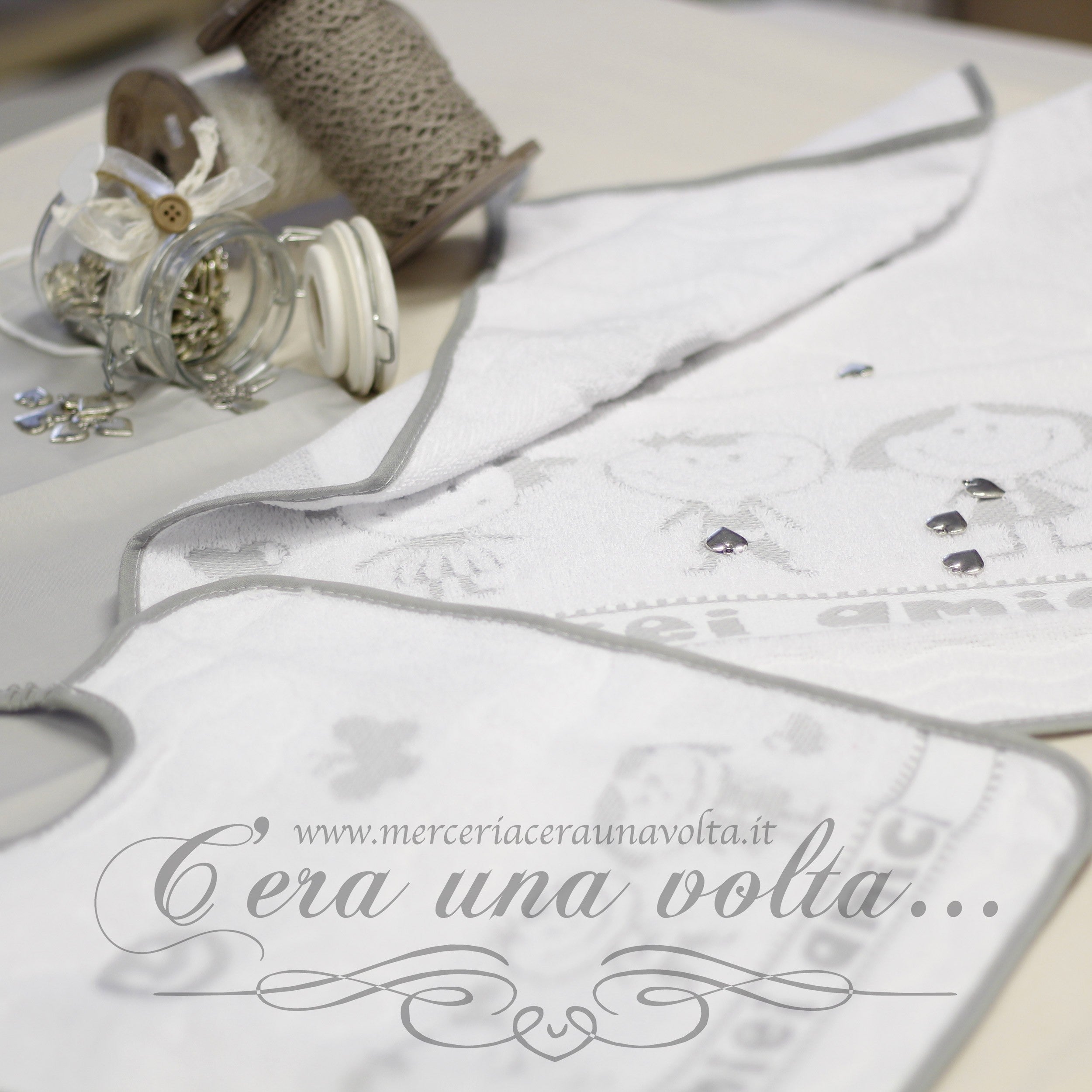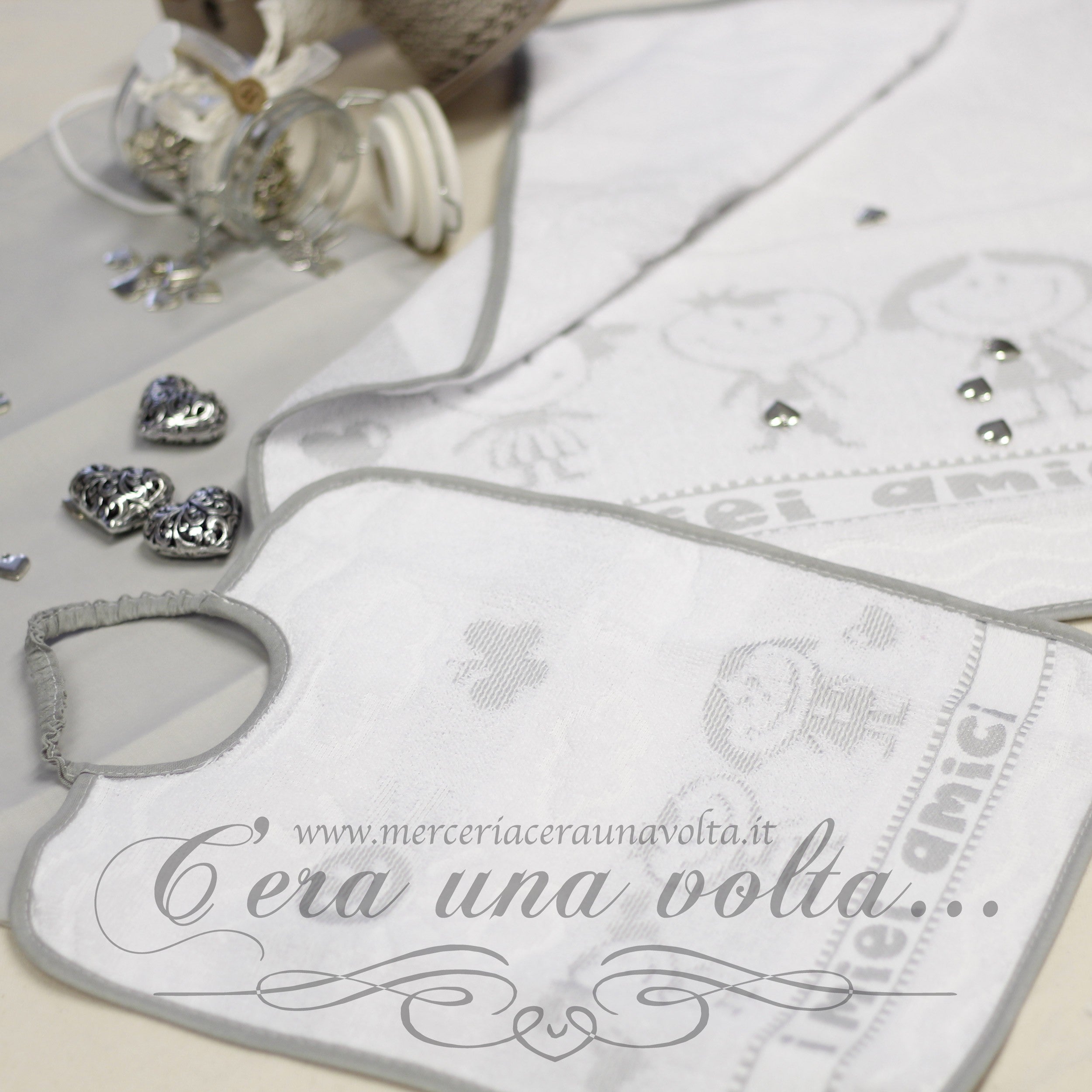 Set asilo Grigio Tortora, con stampa a rilievo composto da: 1 bavaglino con elastico , 1 asciugamani con asola per...