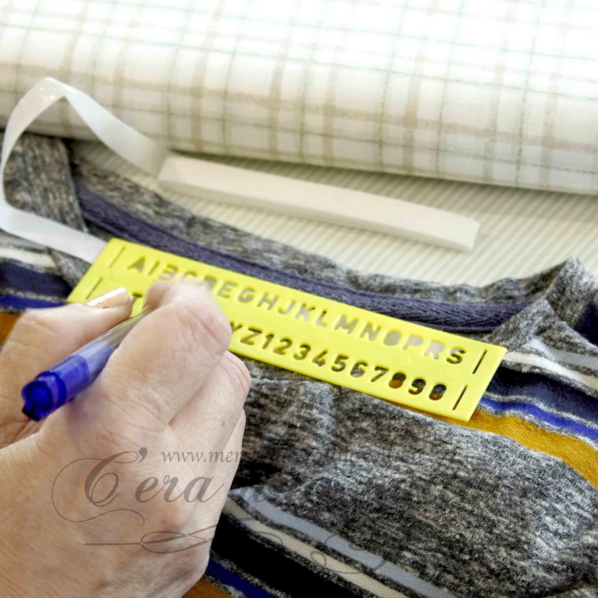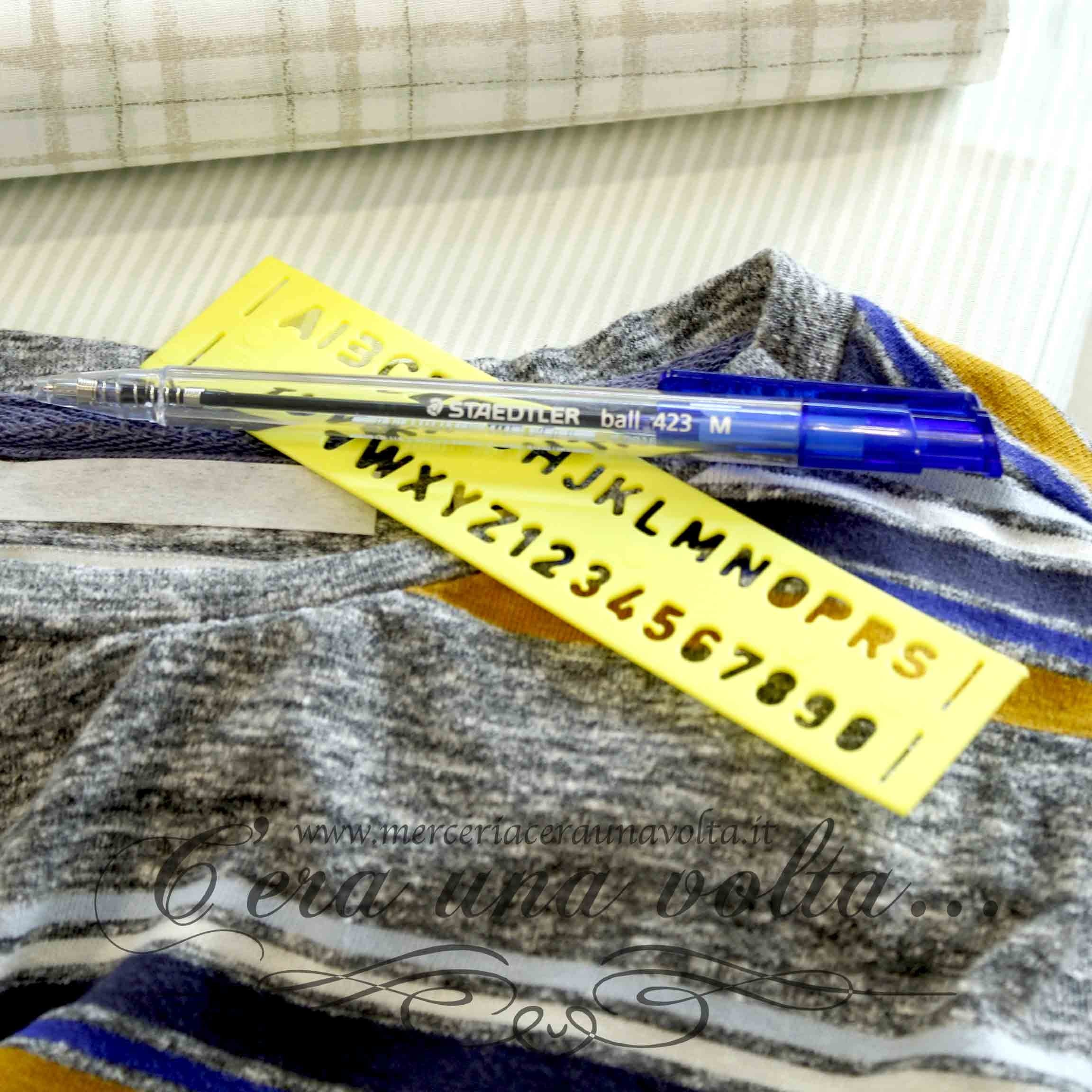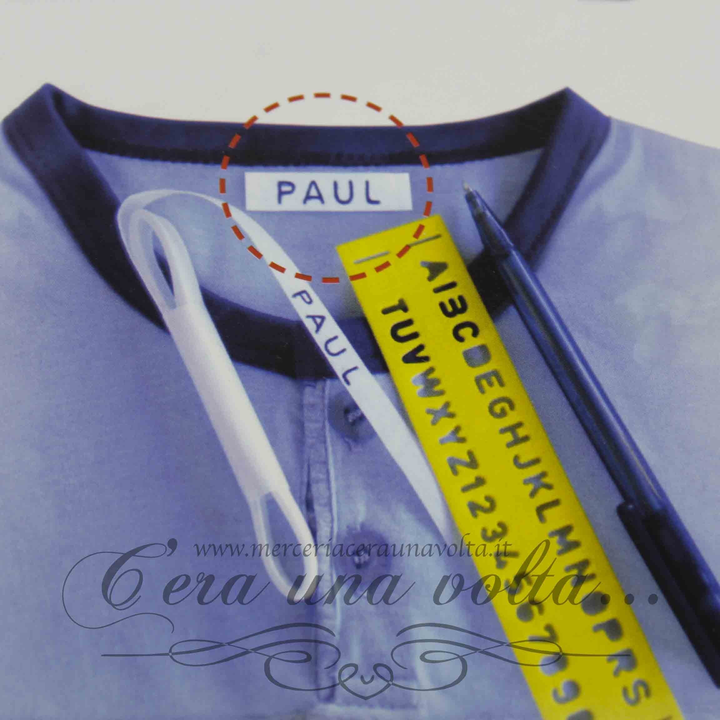 Set termoadesivo per personalizzare indumenti in modo pratico e veloce: si scrive sulla fettuccia con la penna indelebile e si applica con il ferro da stiro