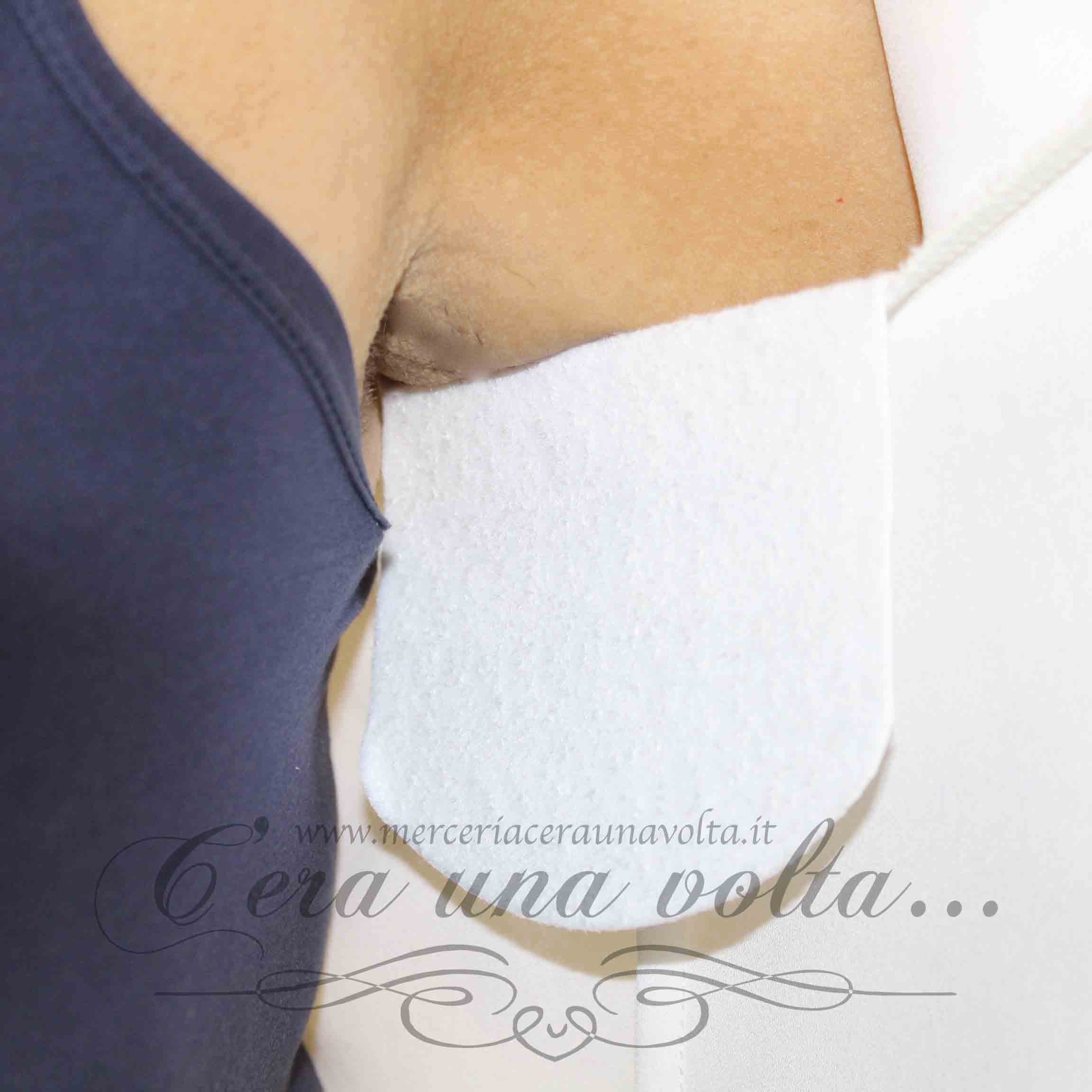 Togliere le strisce protettive dell'adesivo e posizionare le sottoascelle a cavallo delle cuciture.