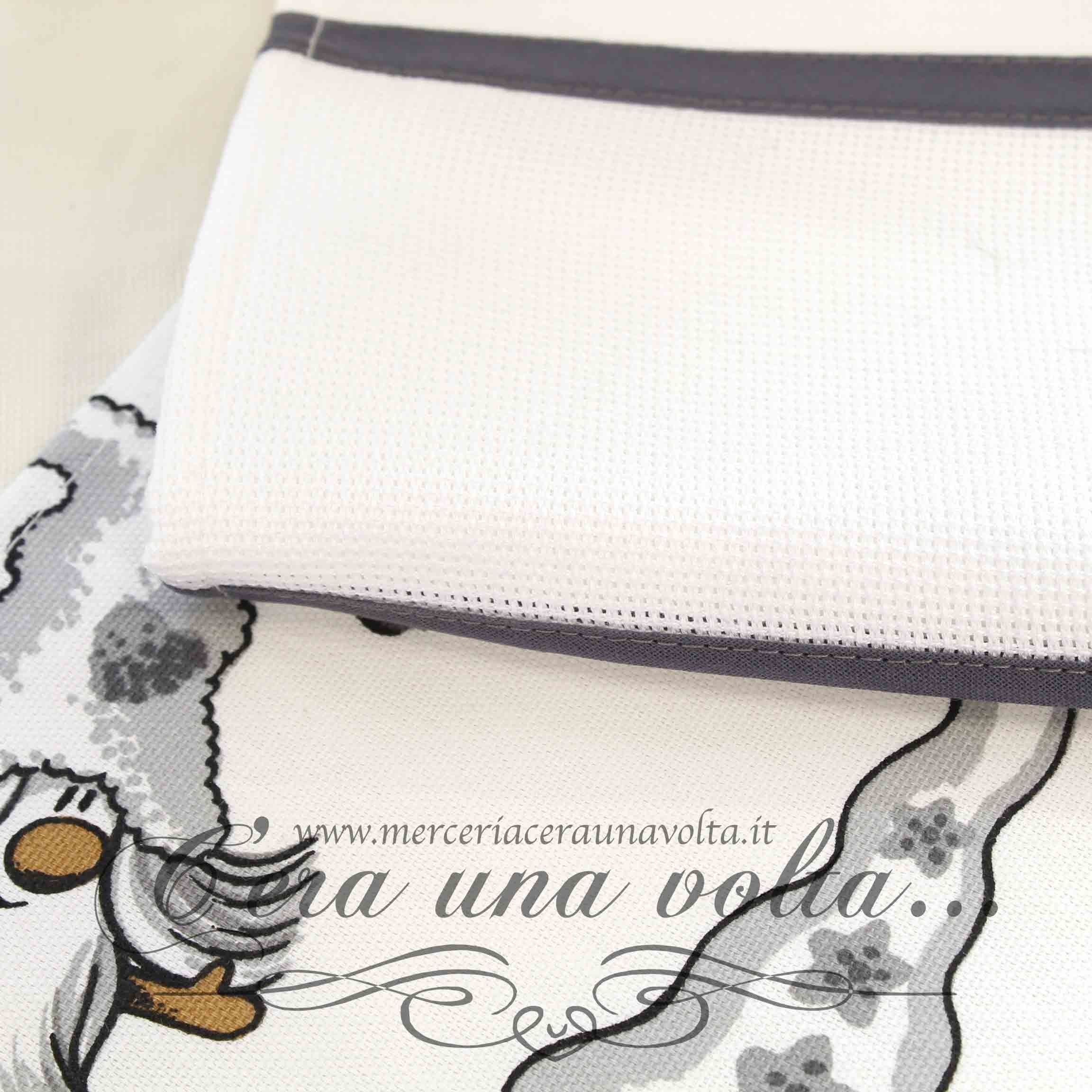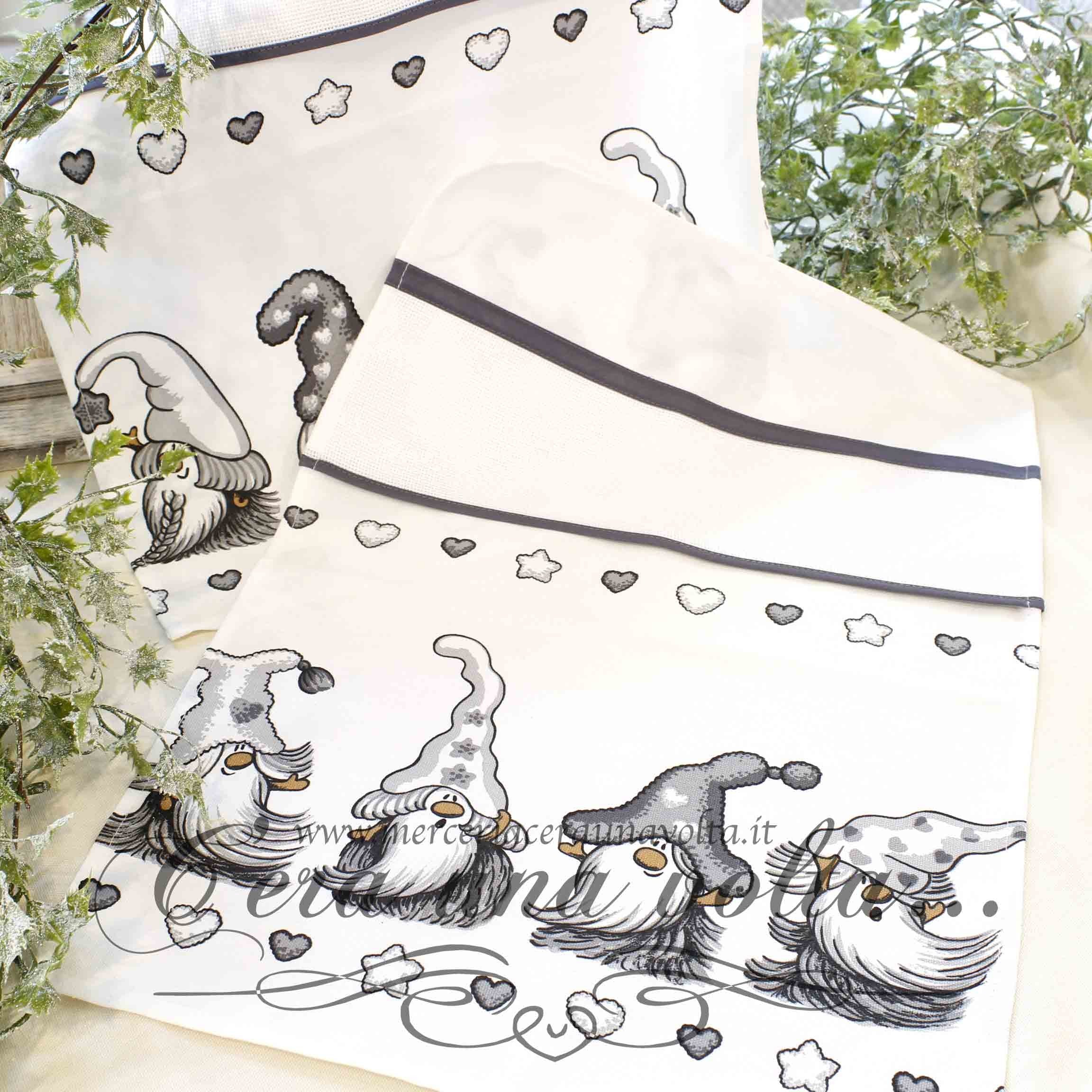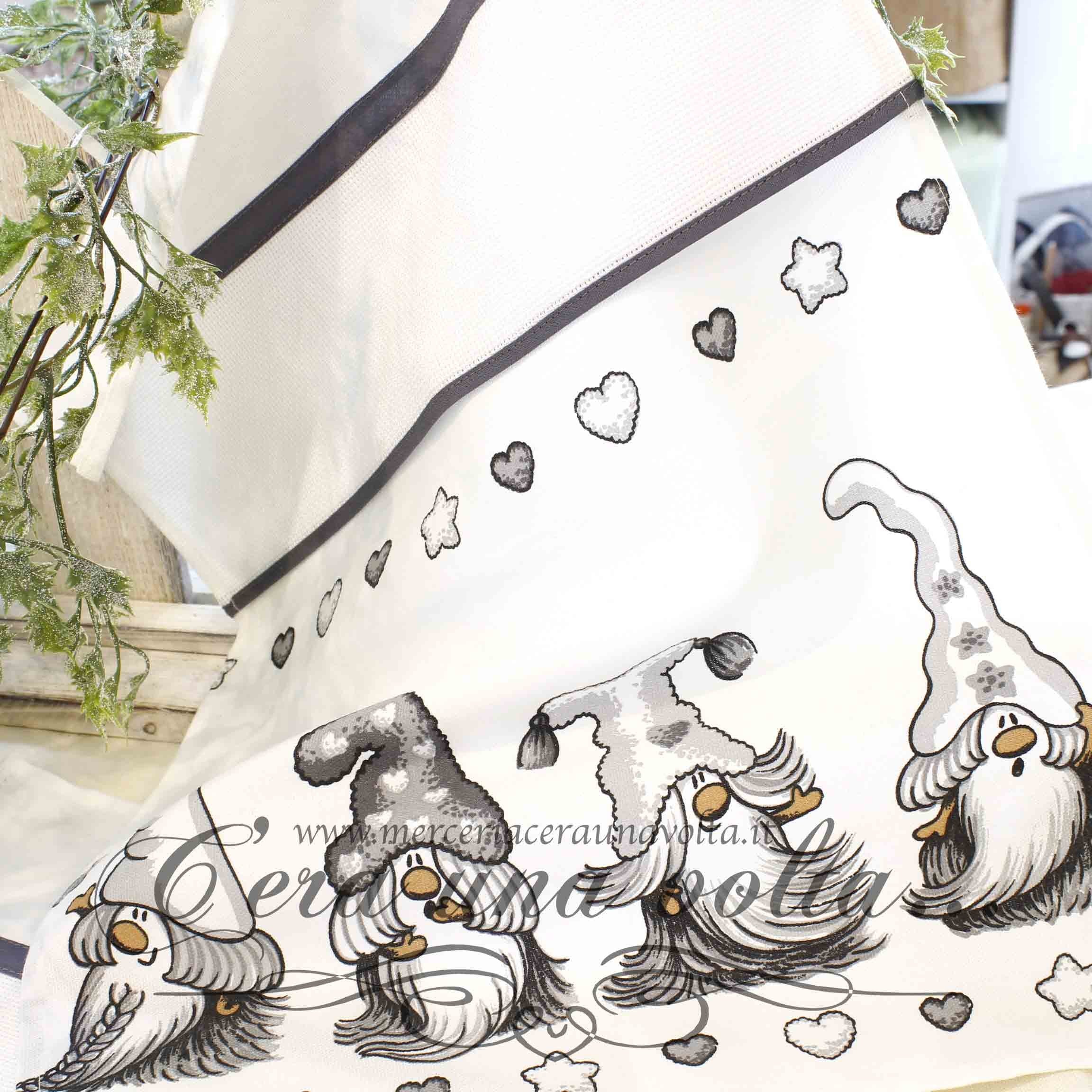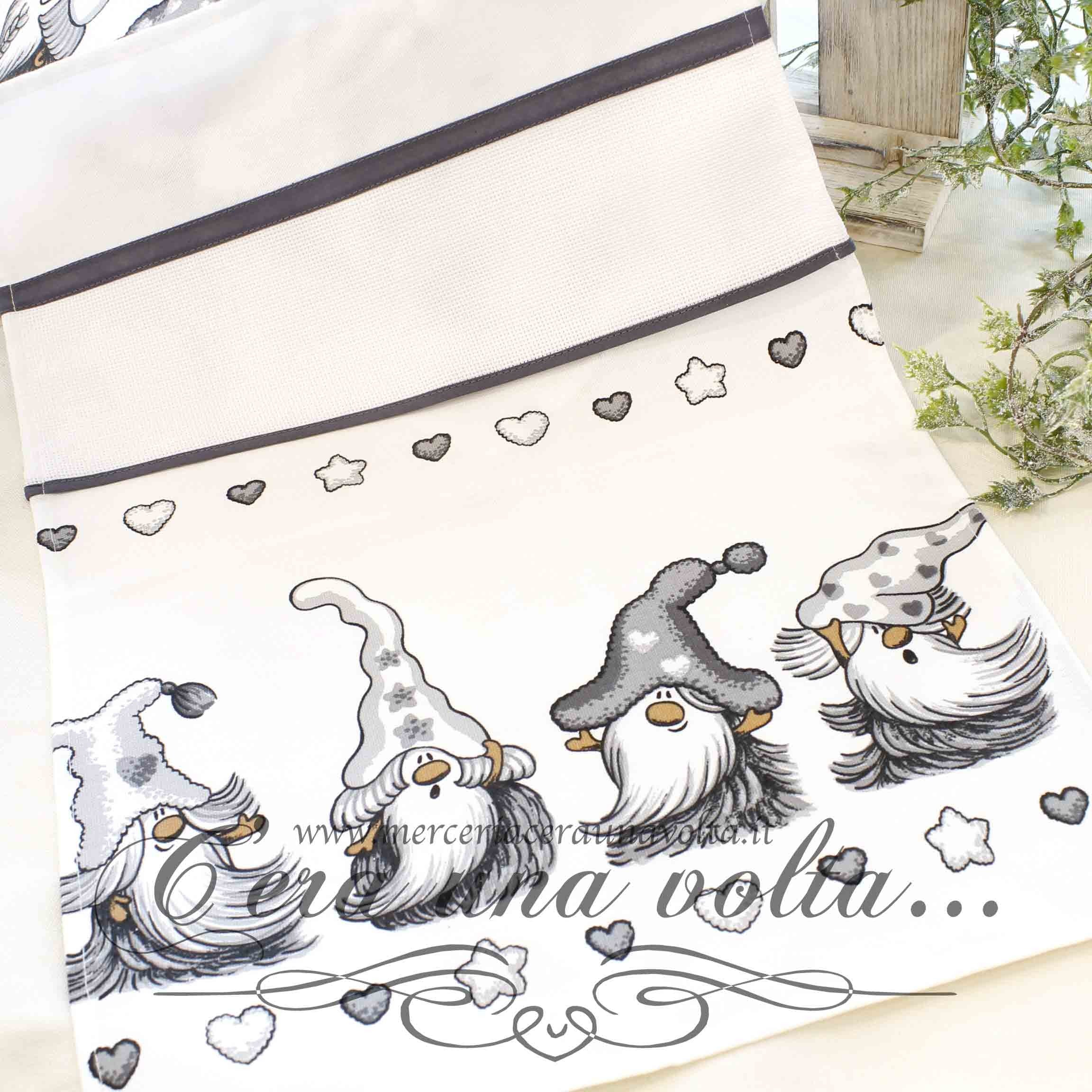 Strofinaccio gnomi, personalizzabile grazie all'inserto in tela aida 55 (Altezza 55 quadretti) provvisto di asola per appenderlo Materiale 100% CotoneMisure H 52 cm...