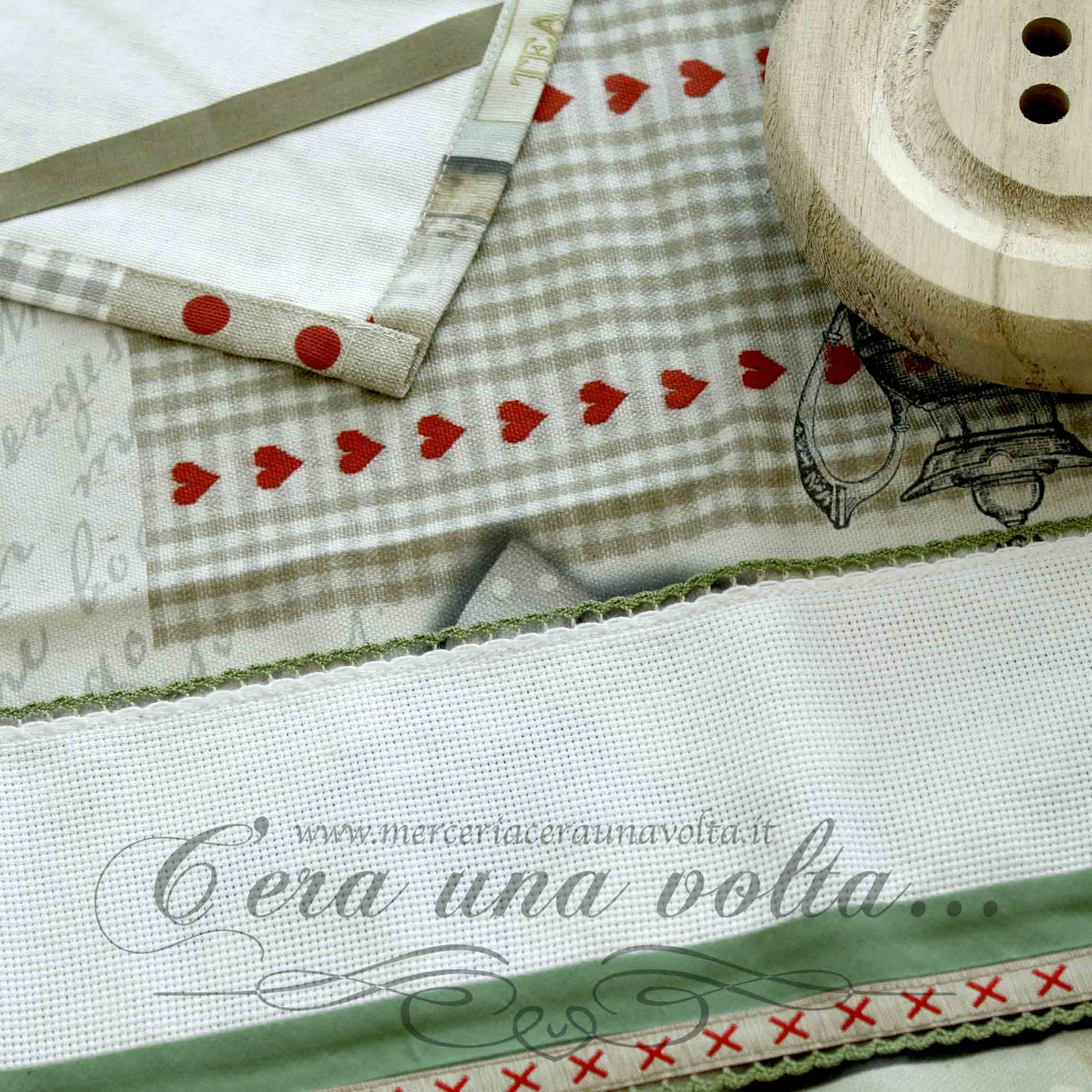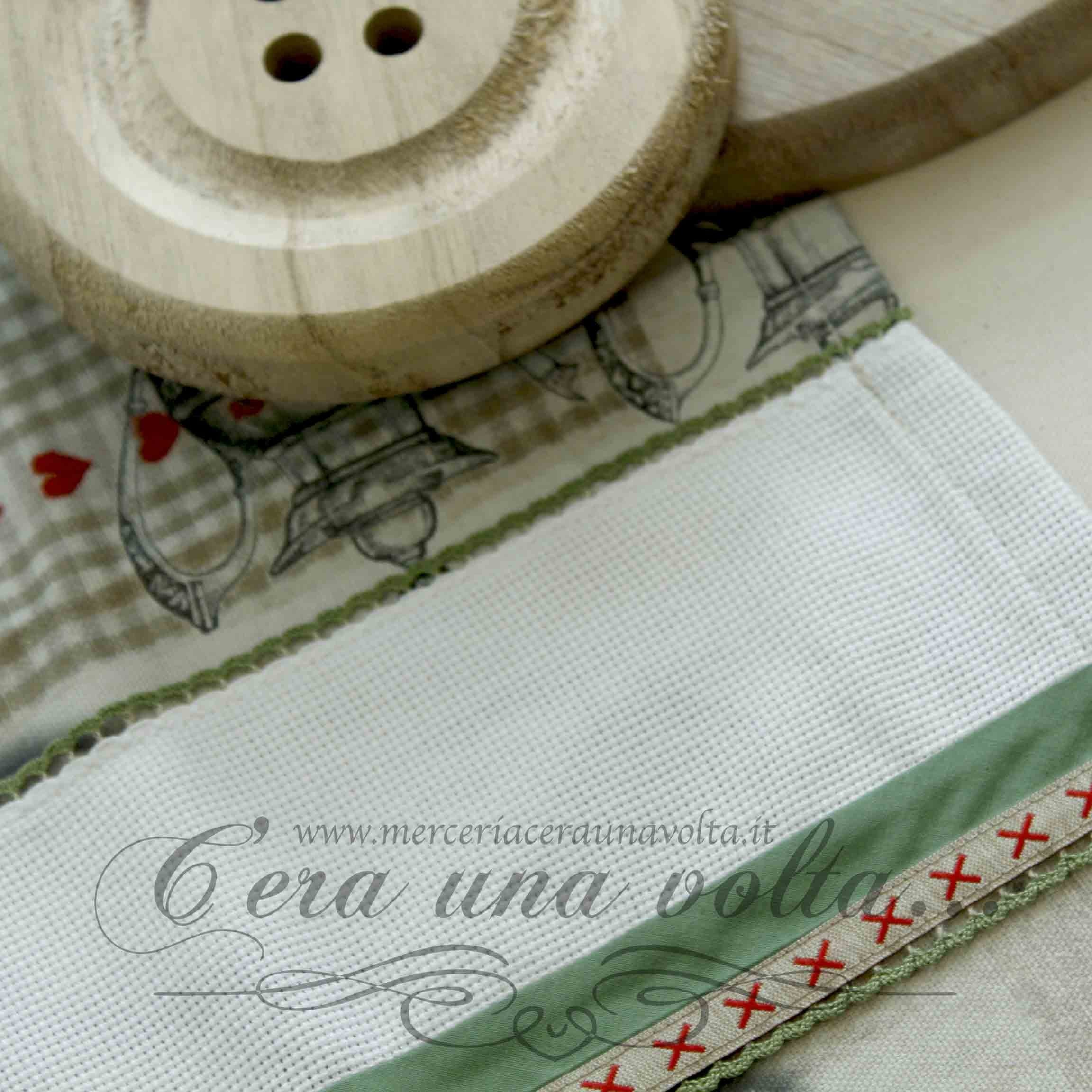Strofinaccio Home, personalizzabile grazie all'inserto in tela aida 55 (Altezza 42 quadretti) provvisto di asola per appenderlo