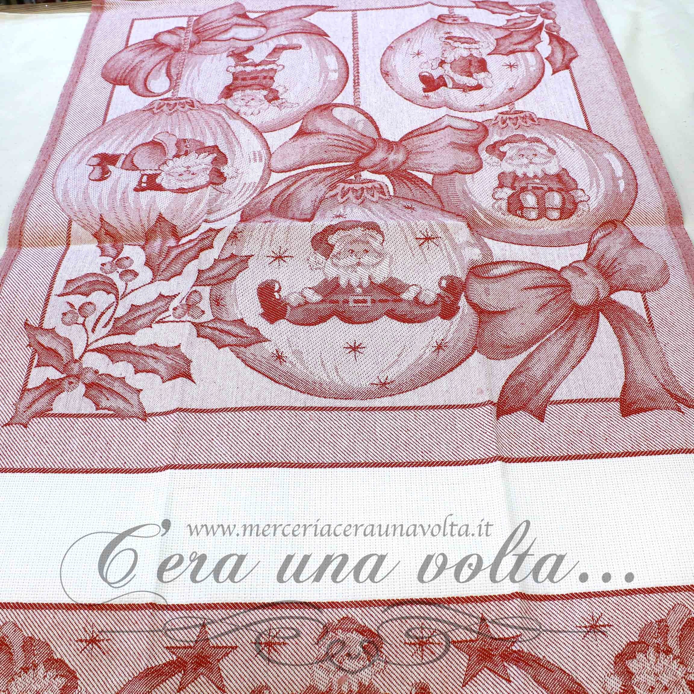 Strofinaccio Sfere Natalizie, personalizzabile grazie all'inserto in tela aida 55 (Altezza 46 quadretti) provvisto di asola per appenderlo. Colore RossoMateriale 100% CotoneMisure H 80...