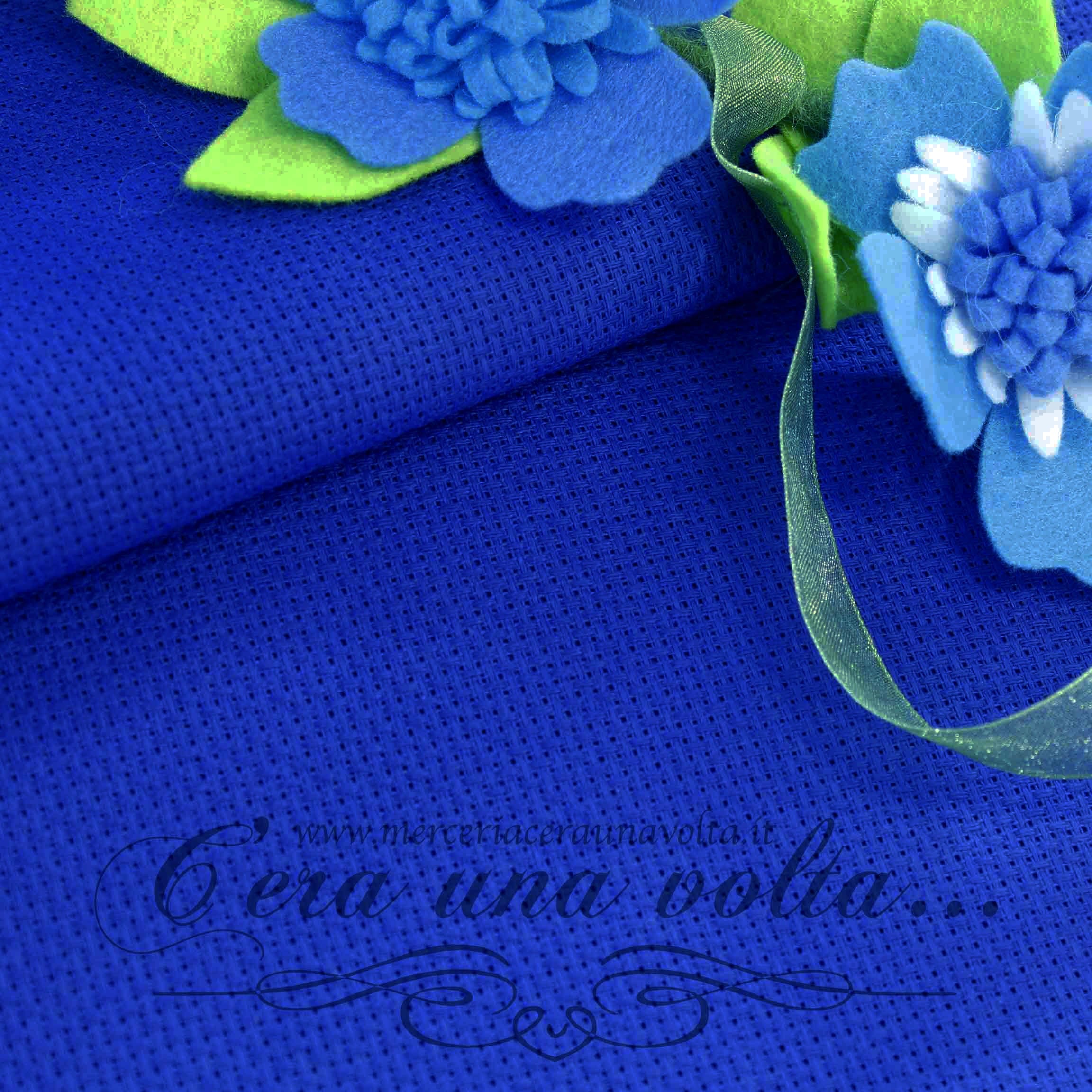 Tela aida Blu 55 quadretti ogni 10 cm Colore BluMateriale 100% cotone Altezza pezza 150 cmPesantezza mediaUnità di vendita 1 mtN.B Il...