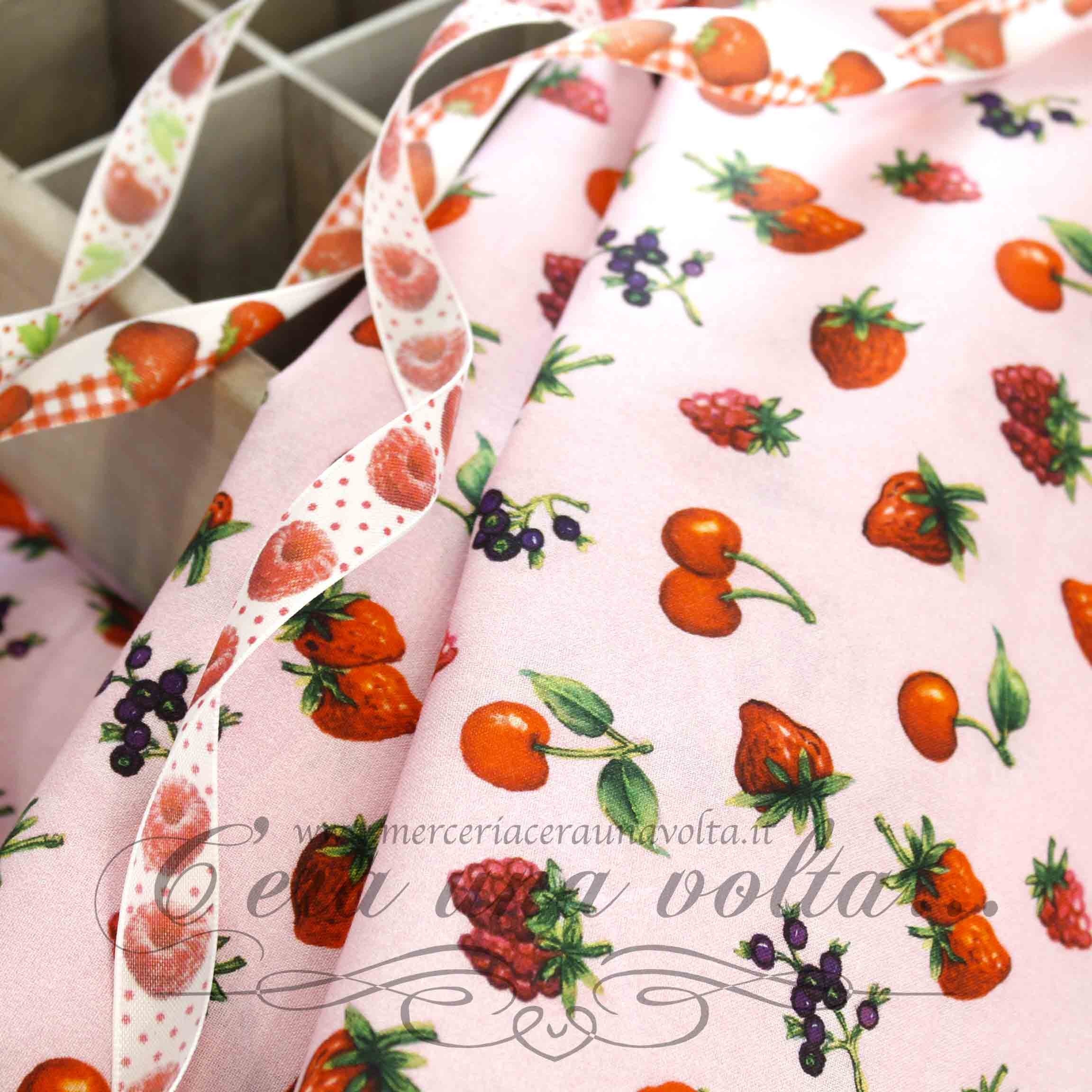 Un tessuto dallo stile rurale, che regala subito un piacevole senso di vissuto, impreziosito con i frutti della natura dai colori vivaci, ideale per confezionare tovaglie e materiali per la cucina.