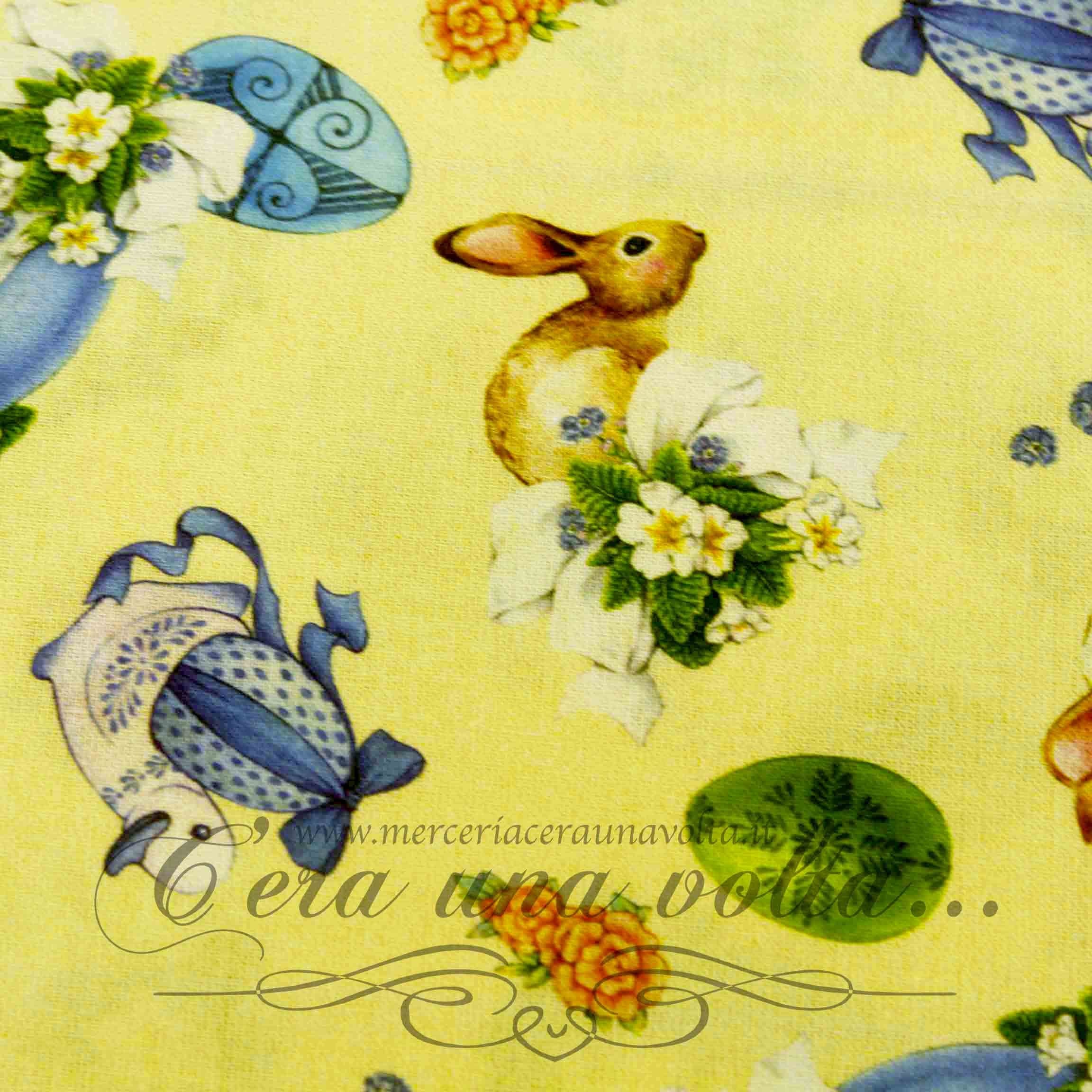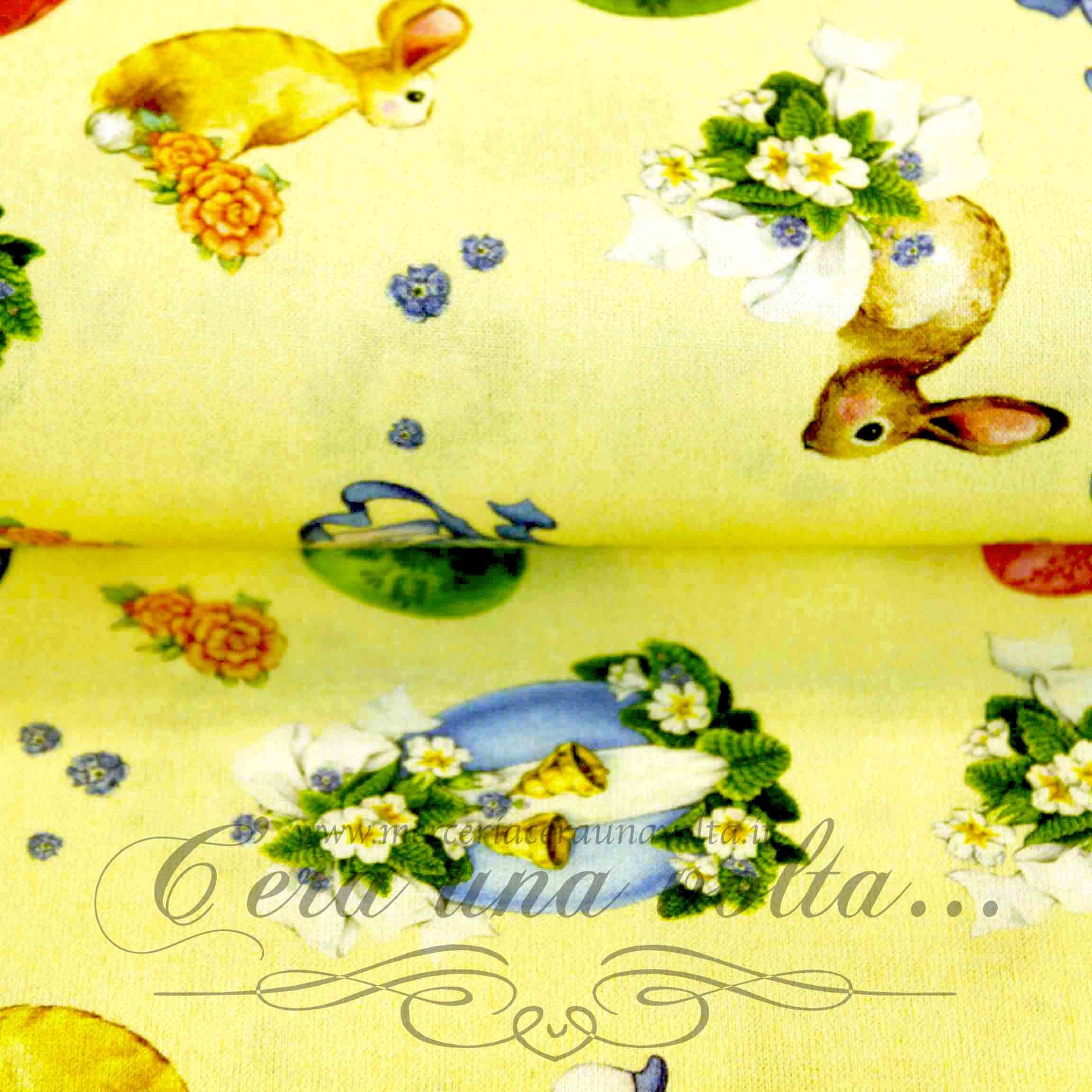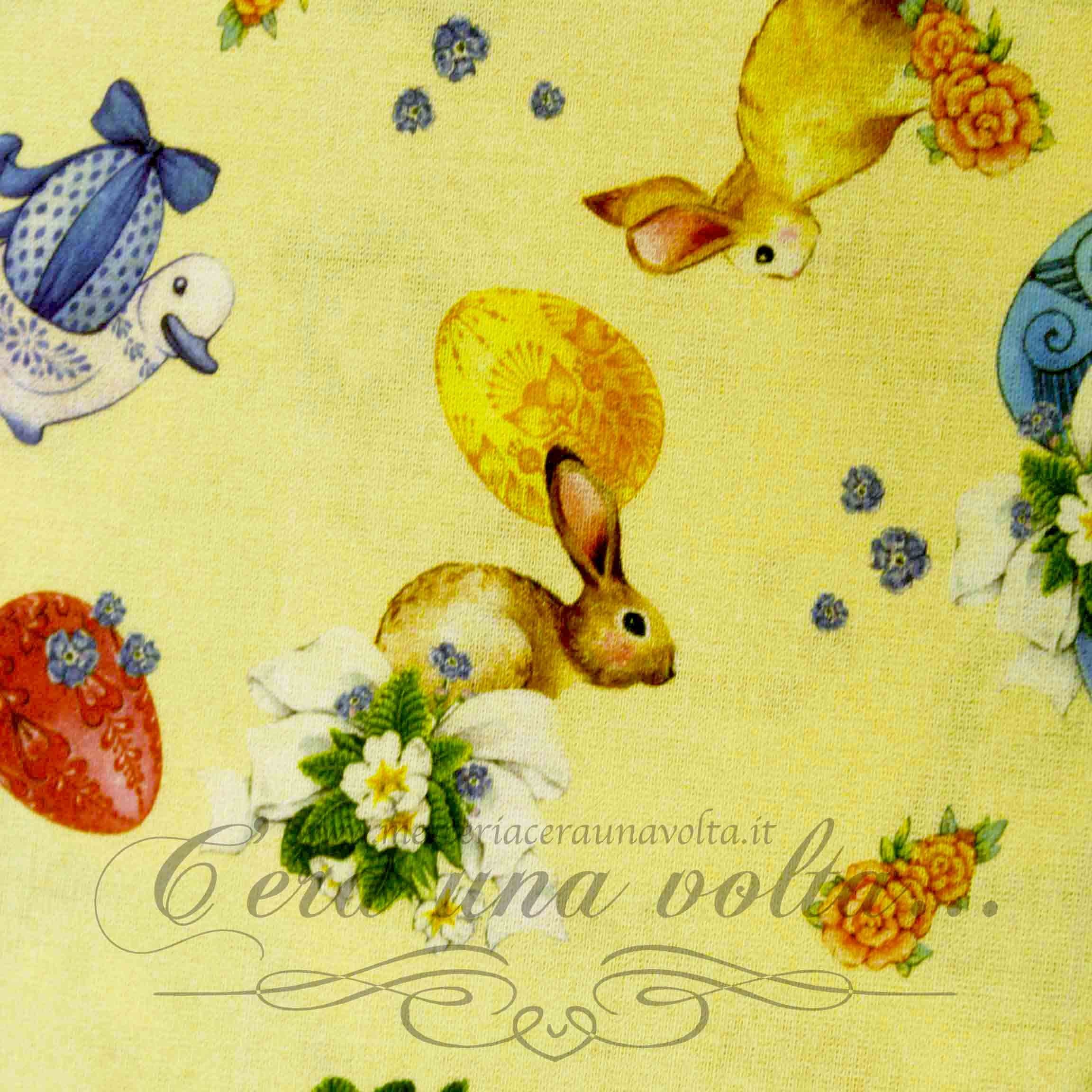 Un'esprit chiaro e brioso per questo tessuto in cotone, da utilizzare in qualsiasi progetto pasquale lasciandovi semplicemente trasportare dall'istinto.