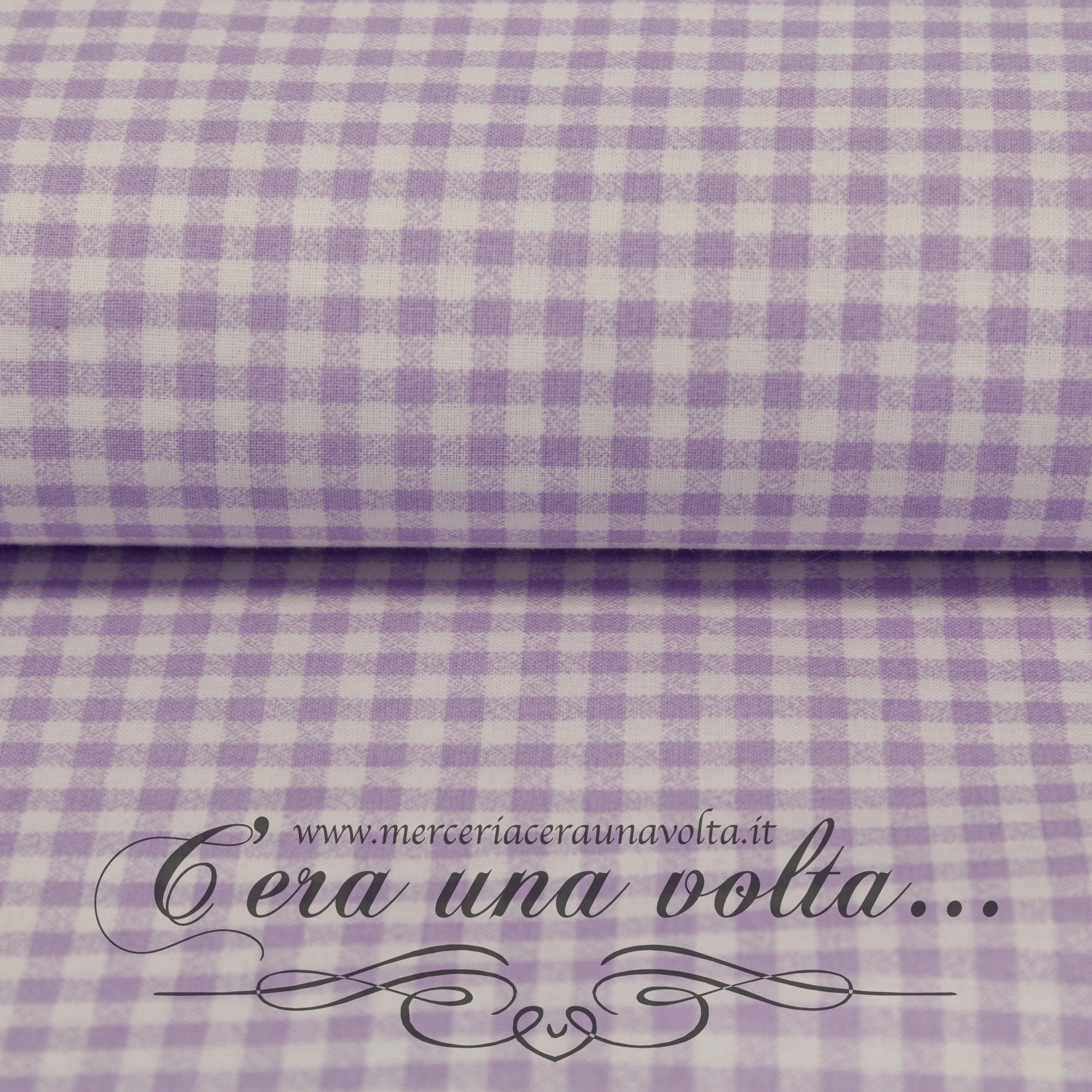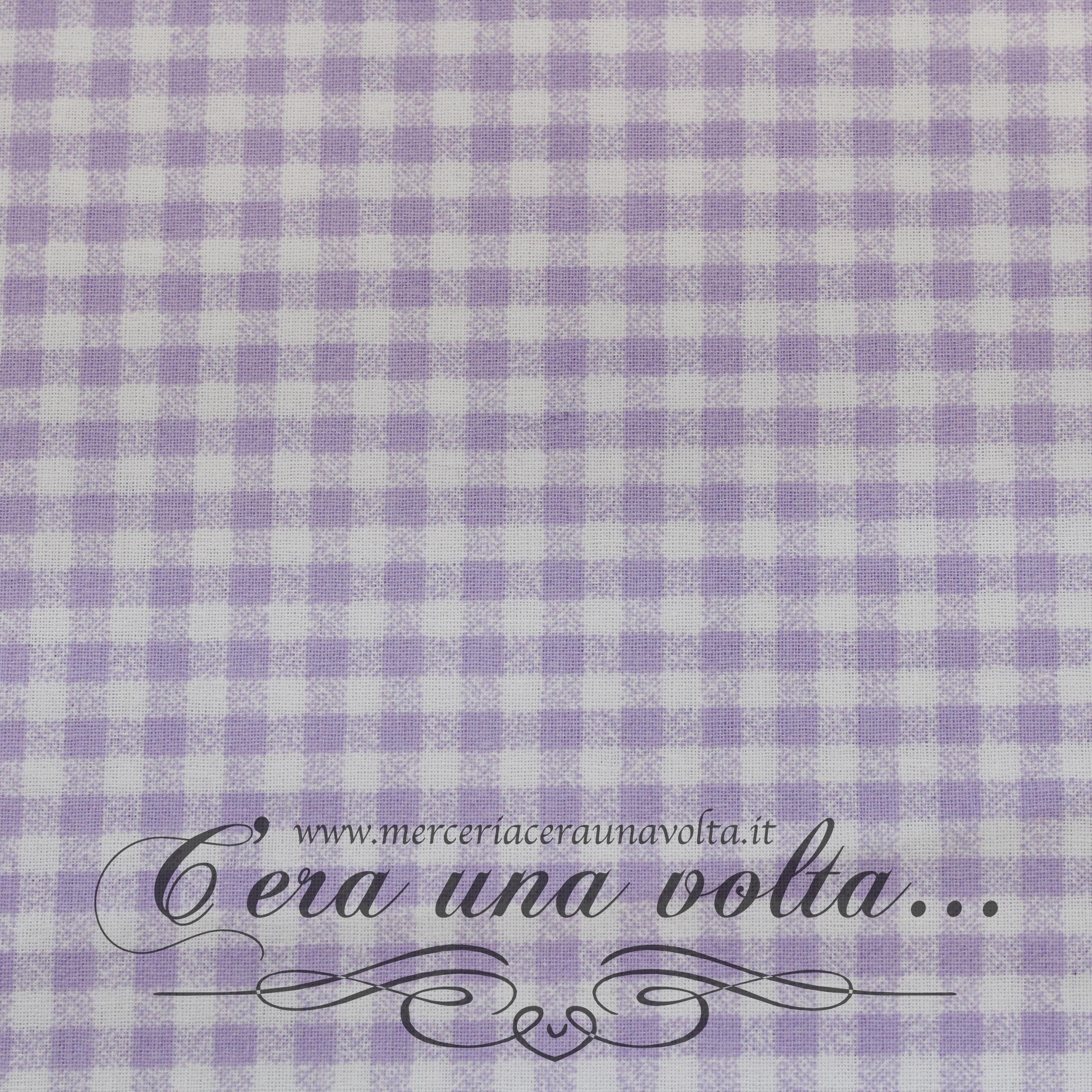 Tessuto a quadretti bicolore, fantasia Vichy Glicine. Prende il nome dall'omonima città francese, famosa proprio per la produzione di tessuti...