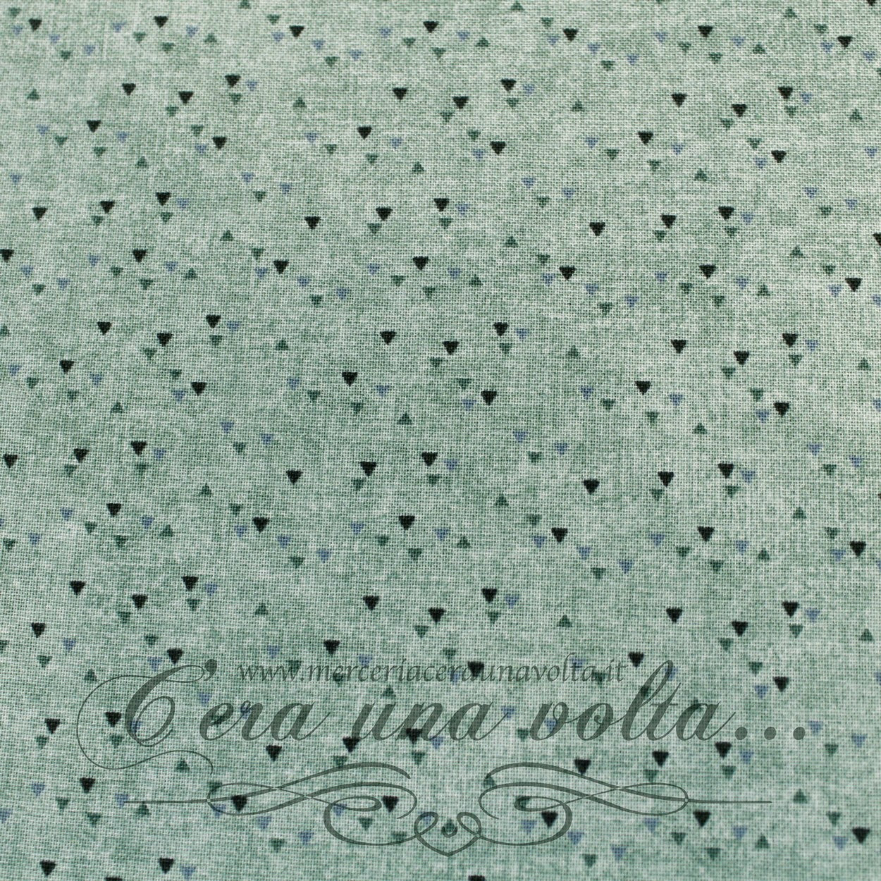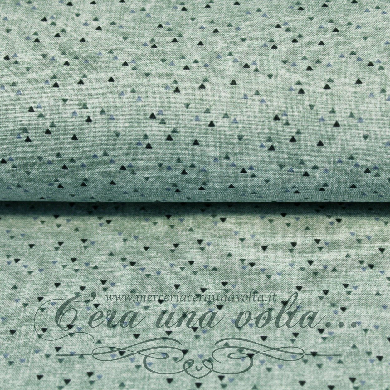 Tessuto giapponese della linea Stoff Quilter Mix Melange, uno sfondo scialbato dall'effetto ottico movimentato, è macchiato da piccoli e colorati triangoli, dalla palette cromatica tono su tono, per una ventata di freschezza e novità
