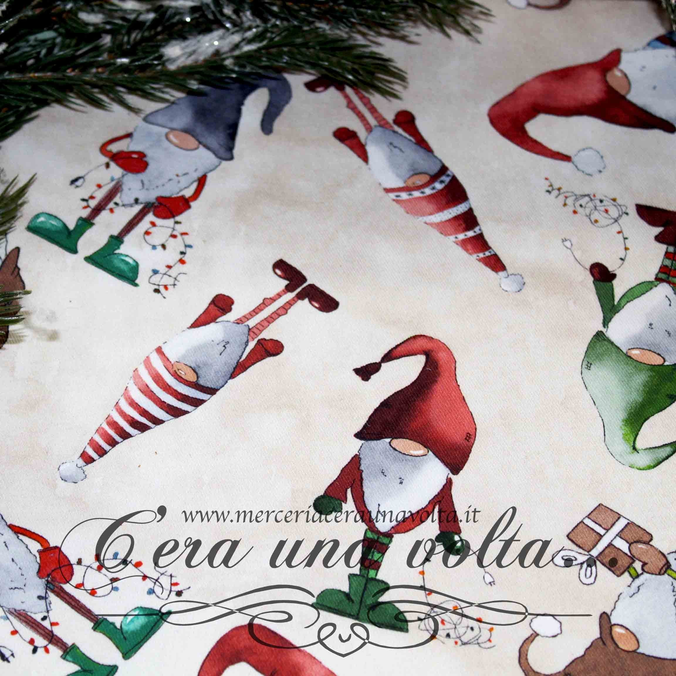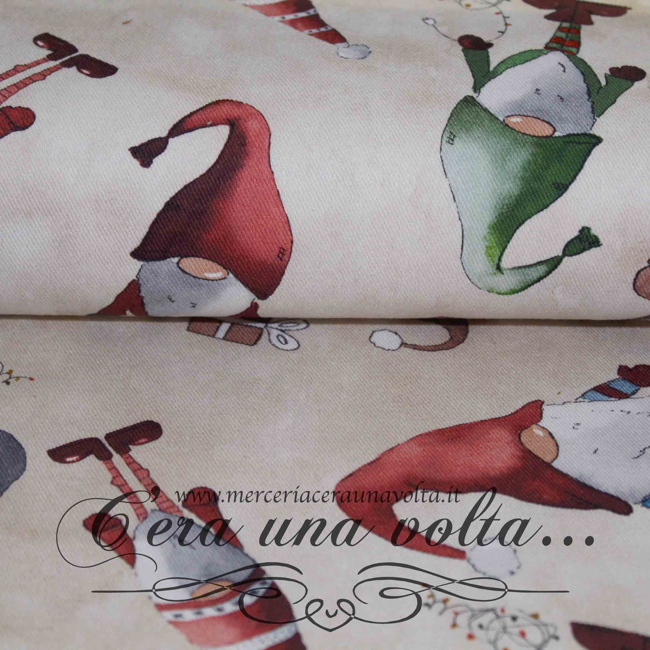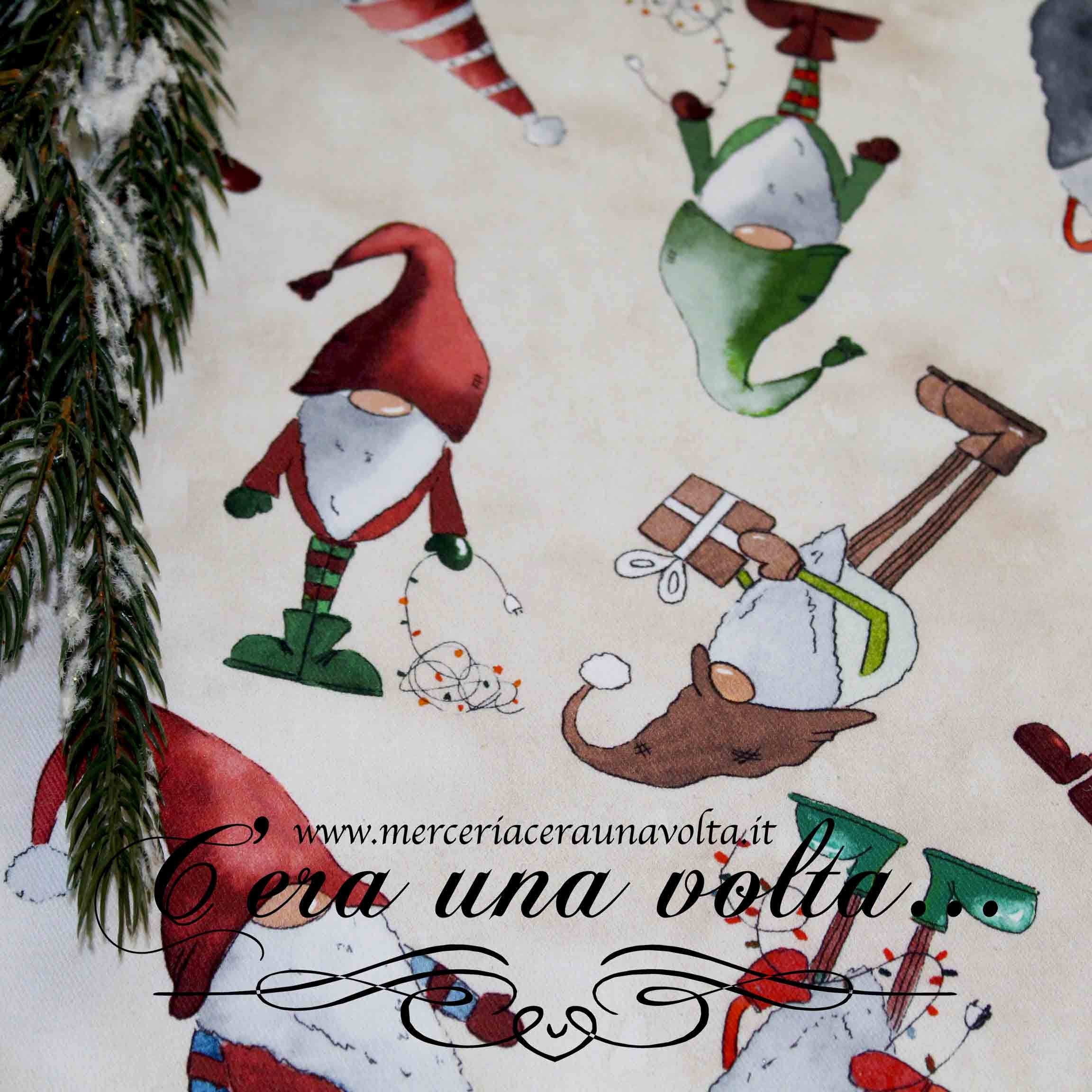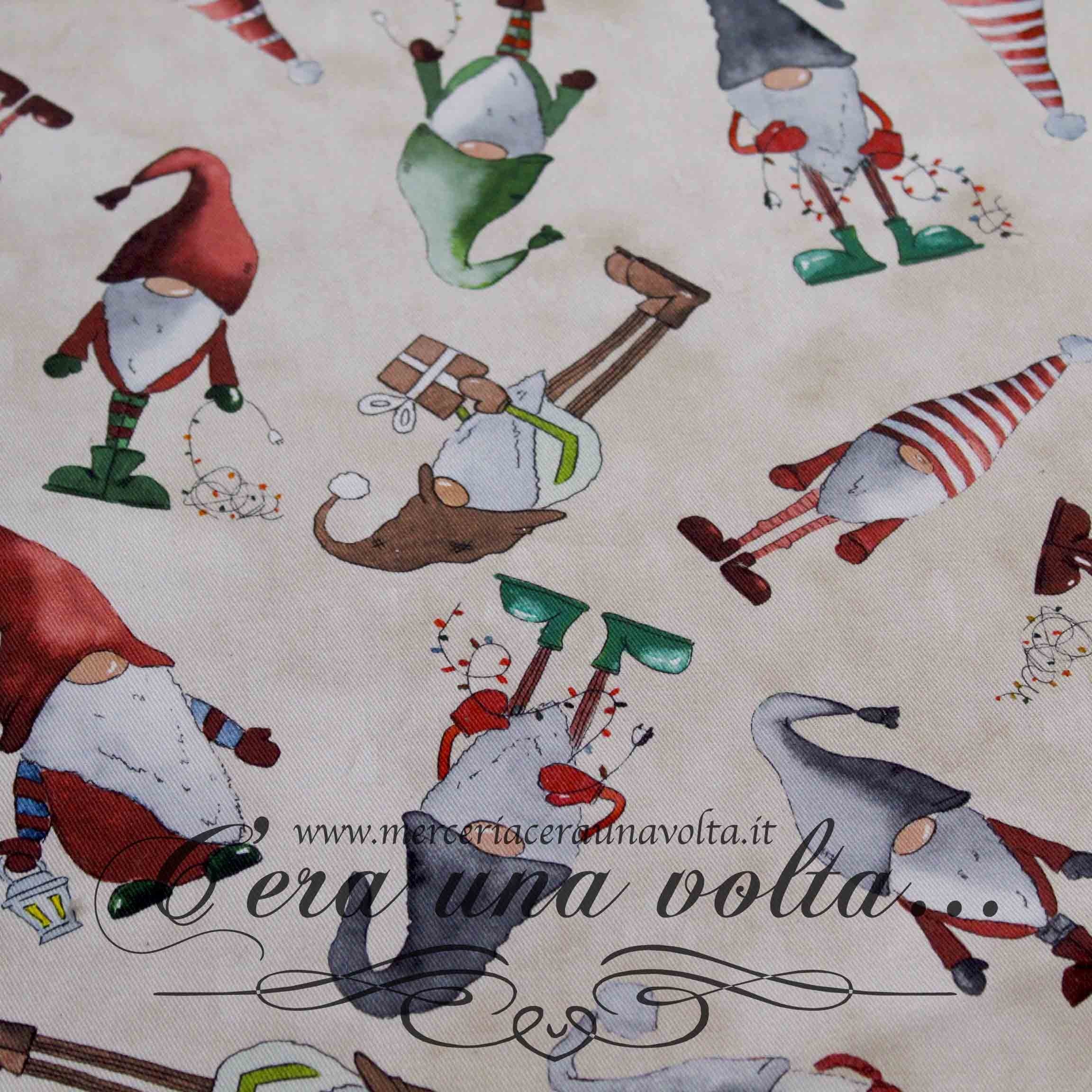 Fatati gnometti paffuti, dimorano in questo tessuto che ispira storie eccitanti e avventurose da inventare, per tuffarsi in un mondo di magica atmosfera fatata. Ideale per confezionare tovaglie, runner e cuscini per la stagione invernale.