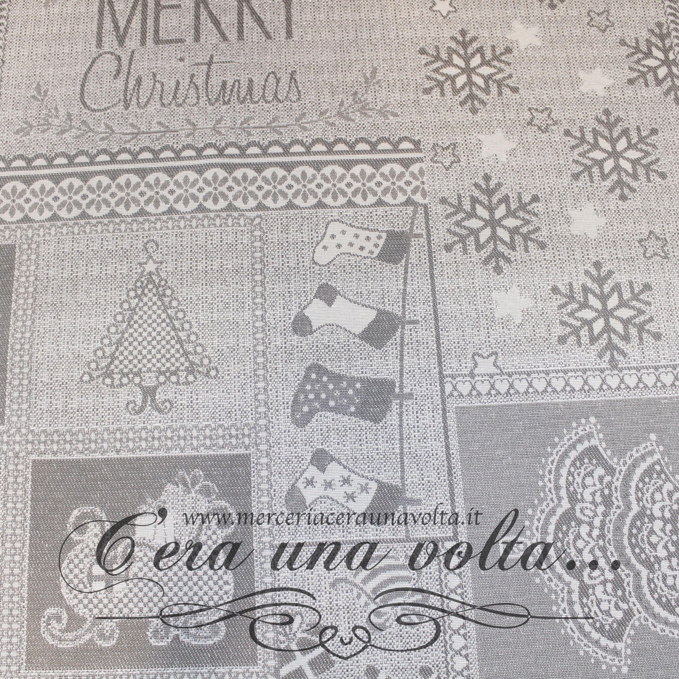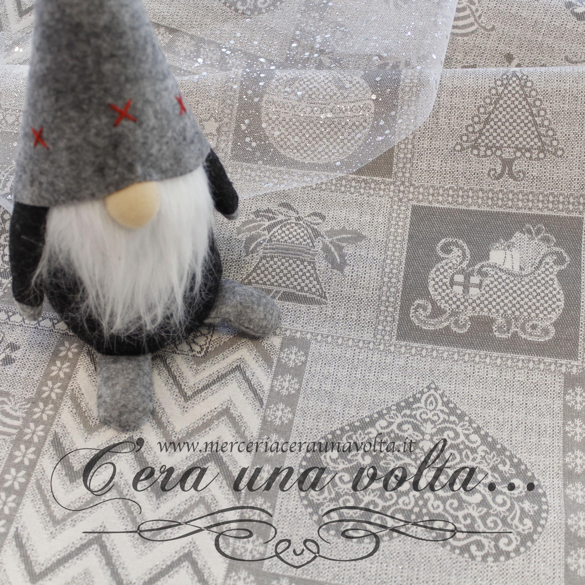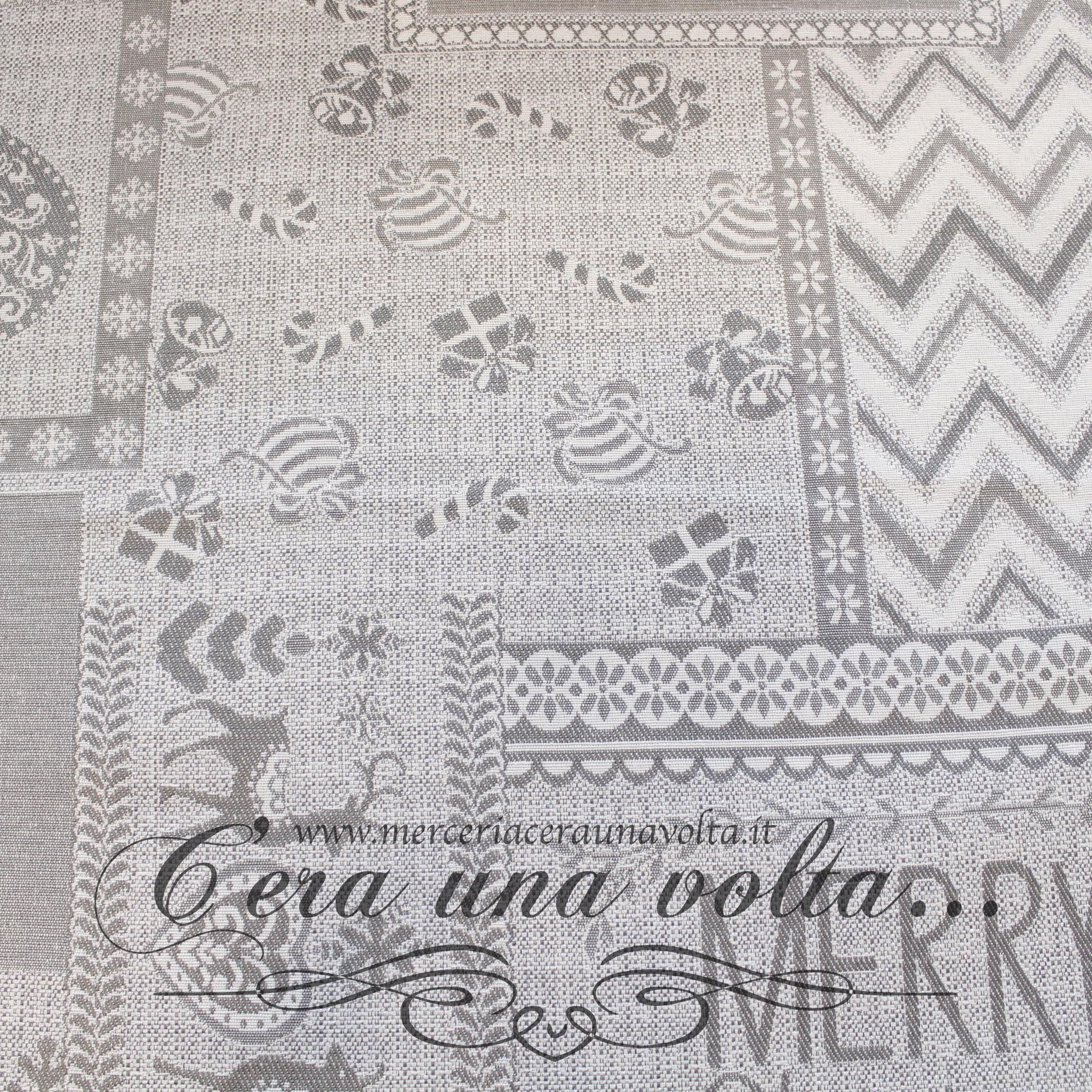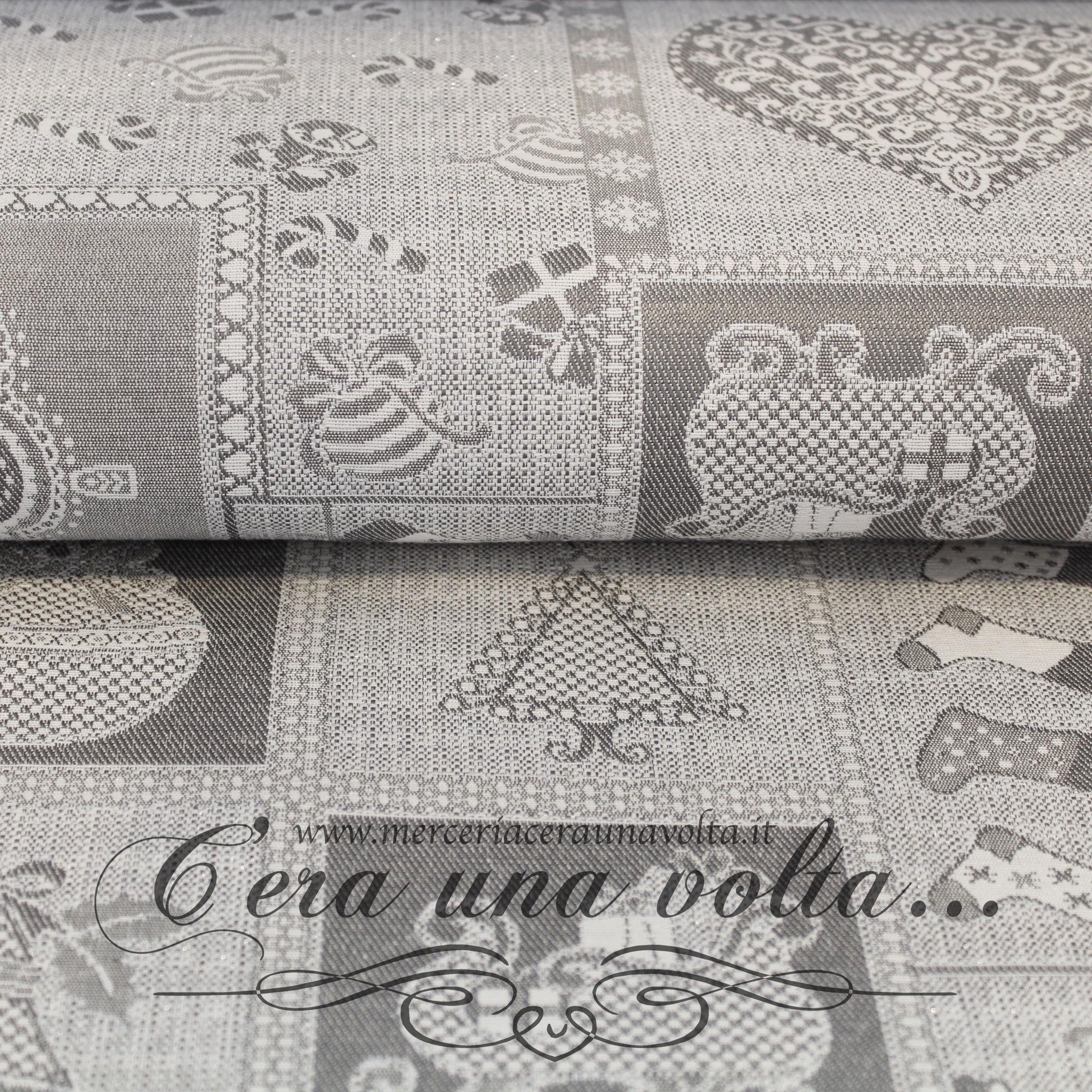 La complessa lavorazione dei telai, tra trama e ordito, producono questo tessuto Gobelin; ricco di dettagli preziosi a tema natalizio, con colori cipriati attraversati da un filo d'argento che ne esaltano la stampa, perfetto per confezionare copritavoli e cuscini