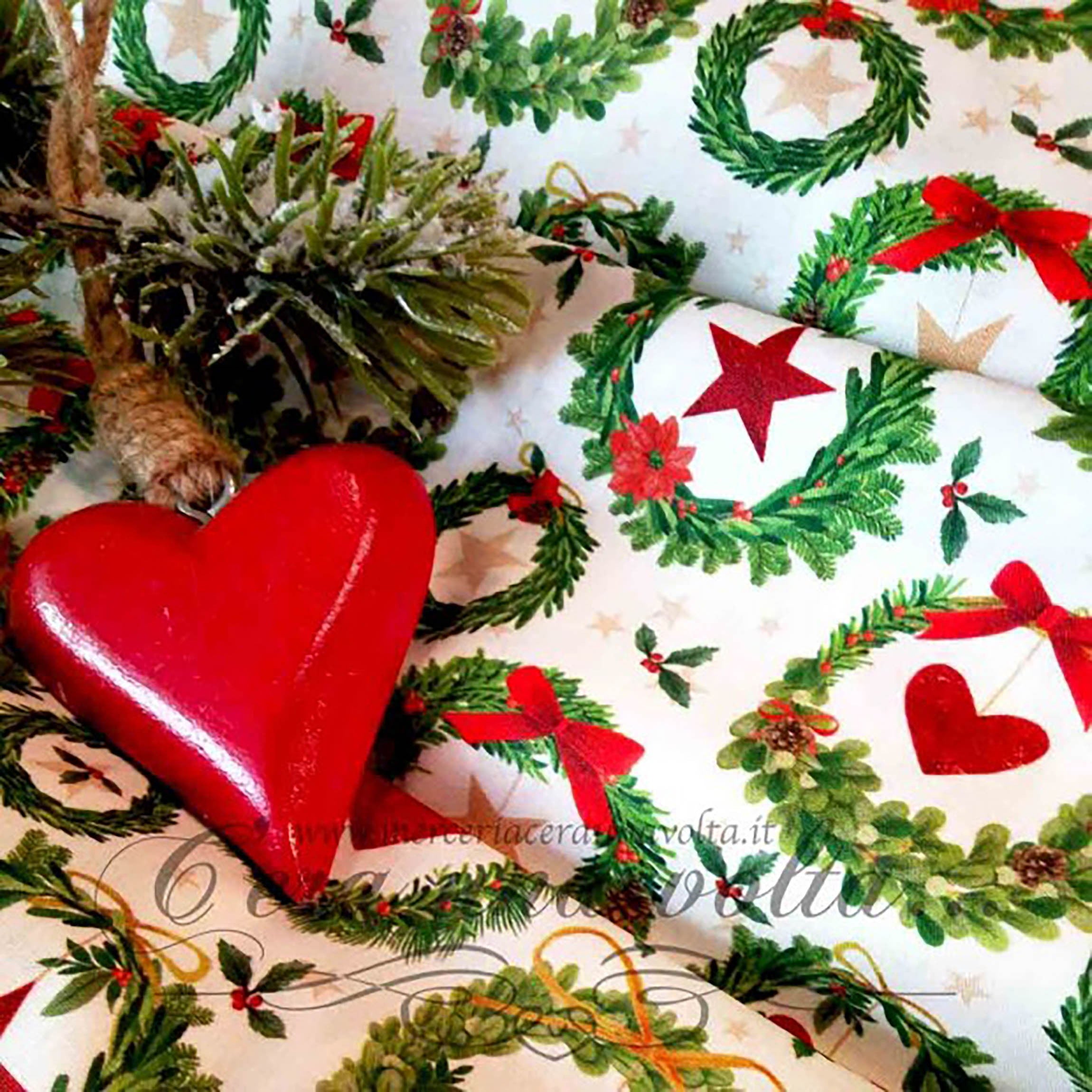 Colore Base Bianca, stampa Rosso, Verde e OroMateriale 100% Cotone Altezza cm 110Pesantezza Leggera Unità di vendita 50 cmesempio:1 => 50 cm di prodotto 4 => 2 metri...