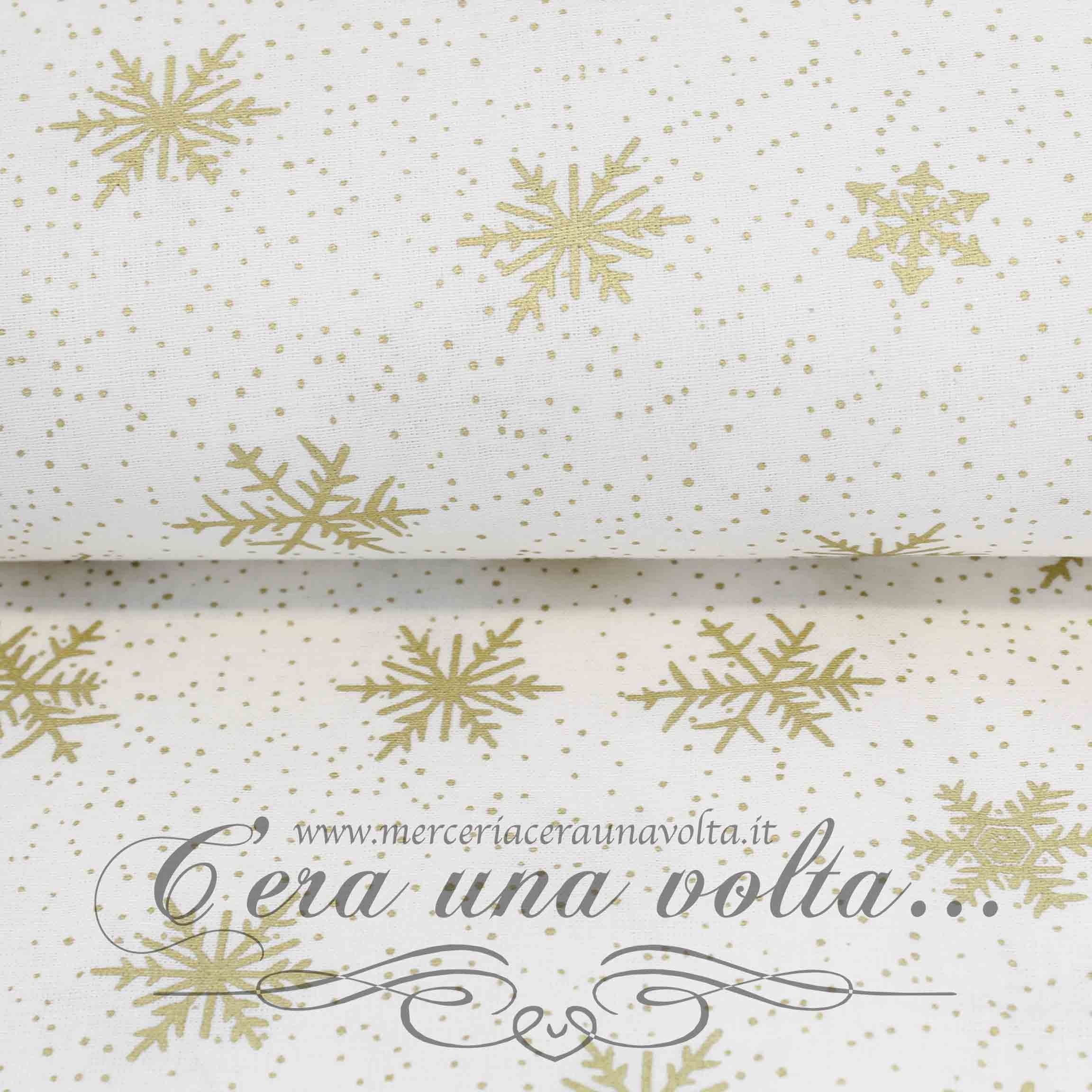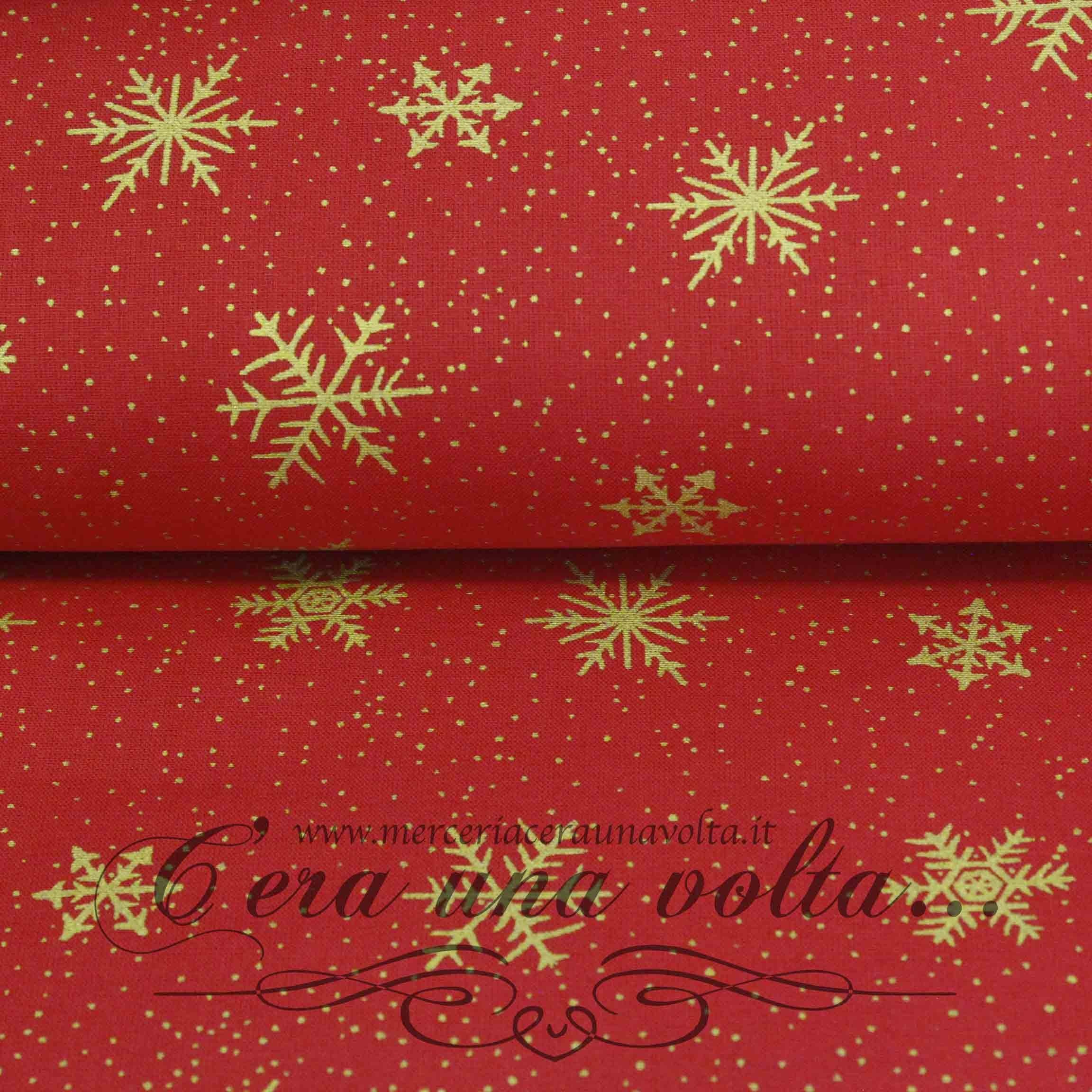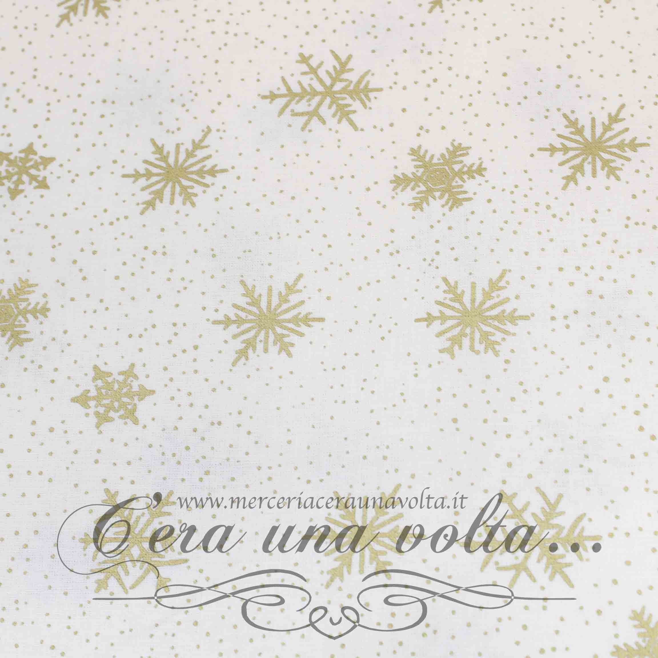 Disponibile in 2 variantiColori Oro su base Rossa - Oro su base Bianca Materiale 100% Cotone Stampa Cristalli di neve Altezza cm 135Pesantezza Leggera Unità di vendita 50 cmesempio:1...