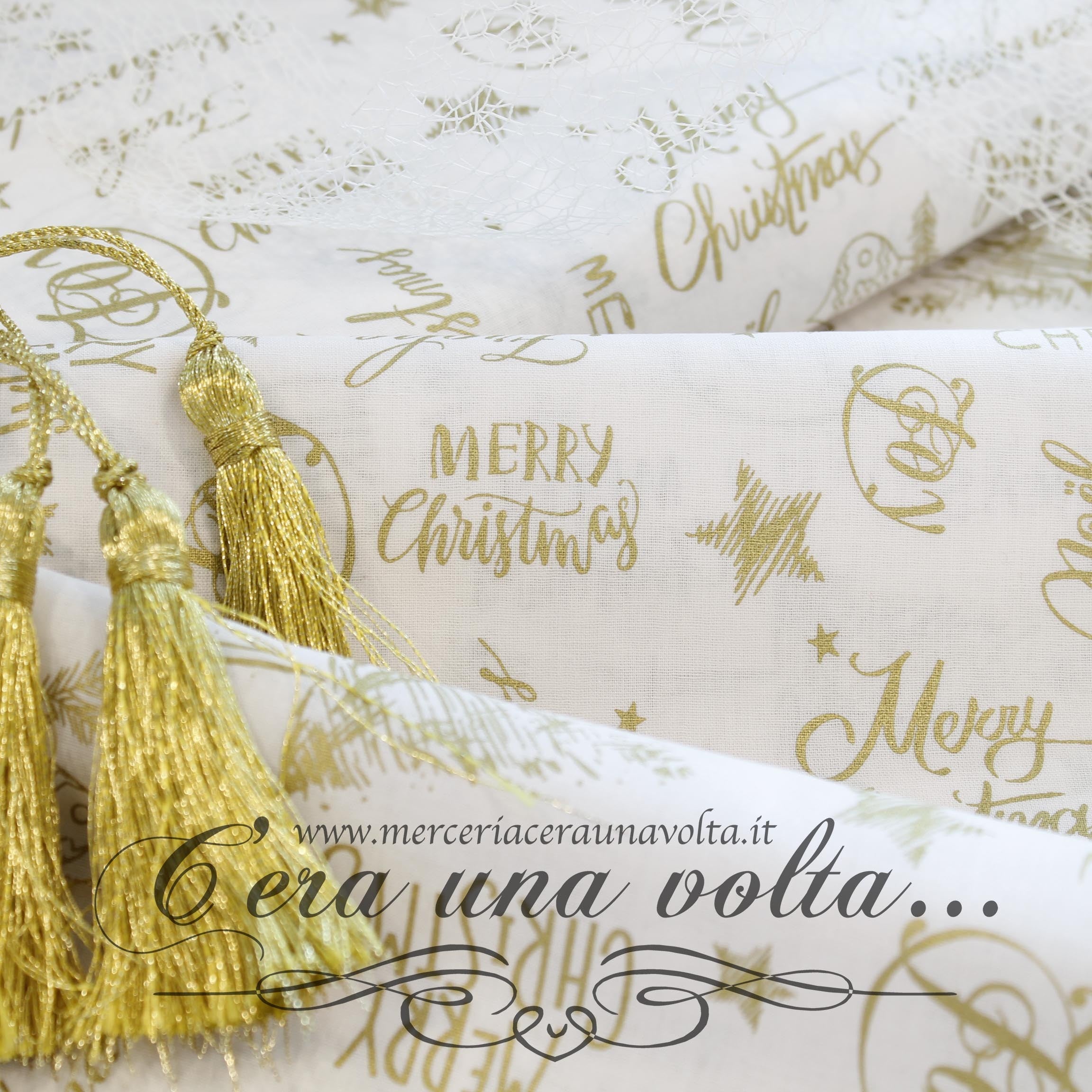 Colore Oro su base Bianco Materiale 100% Cotone Stampa Scritte e soggetti natalizi Altezza cm 135Pesantezza Leggera Unità di vendita 50 cmesempio:1 => 50 cm di prodotto 4 => 2 metri...