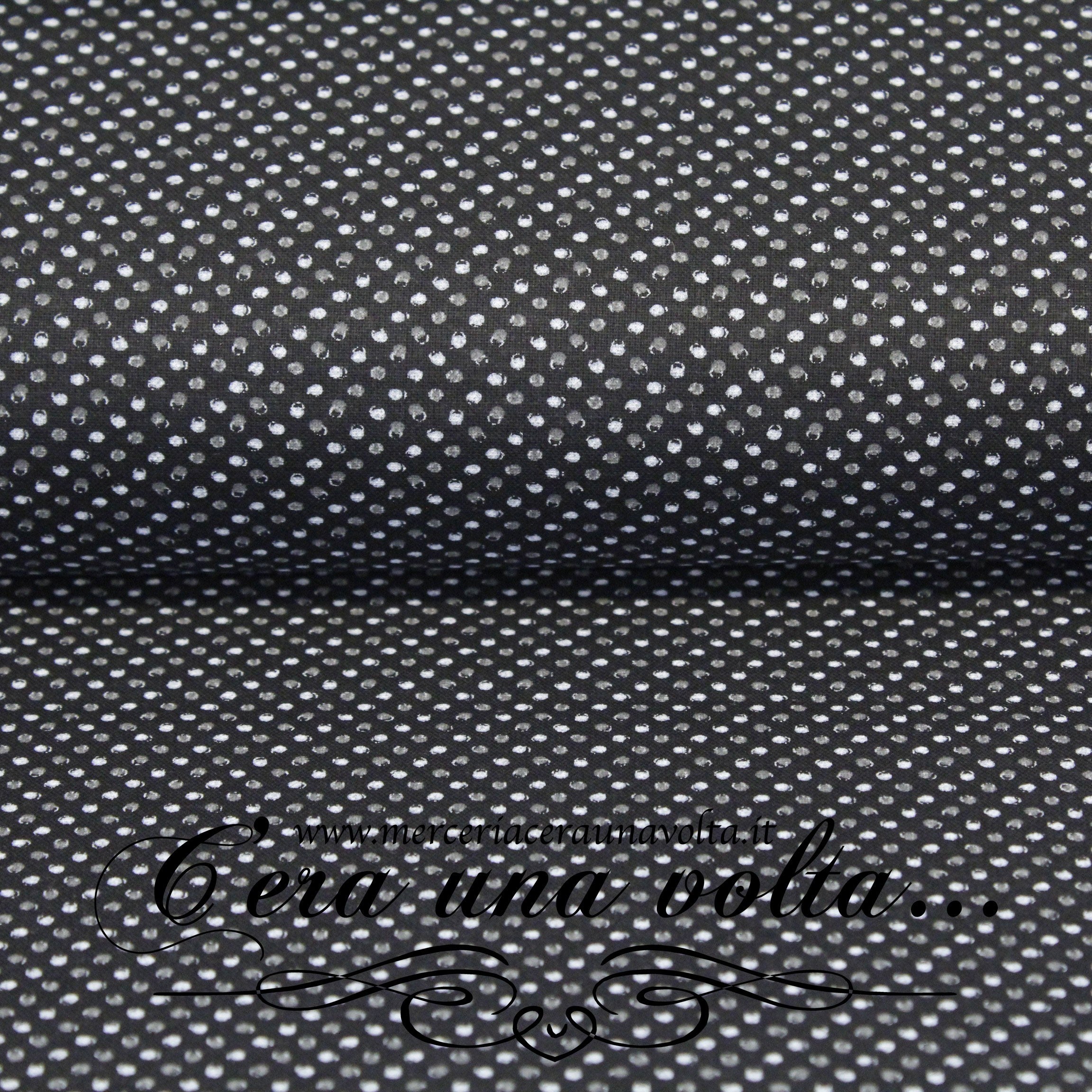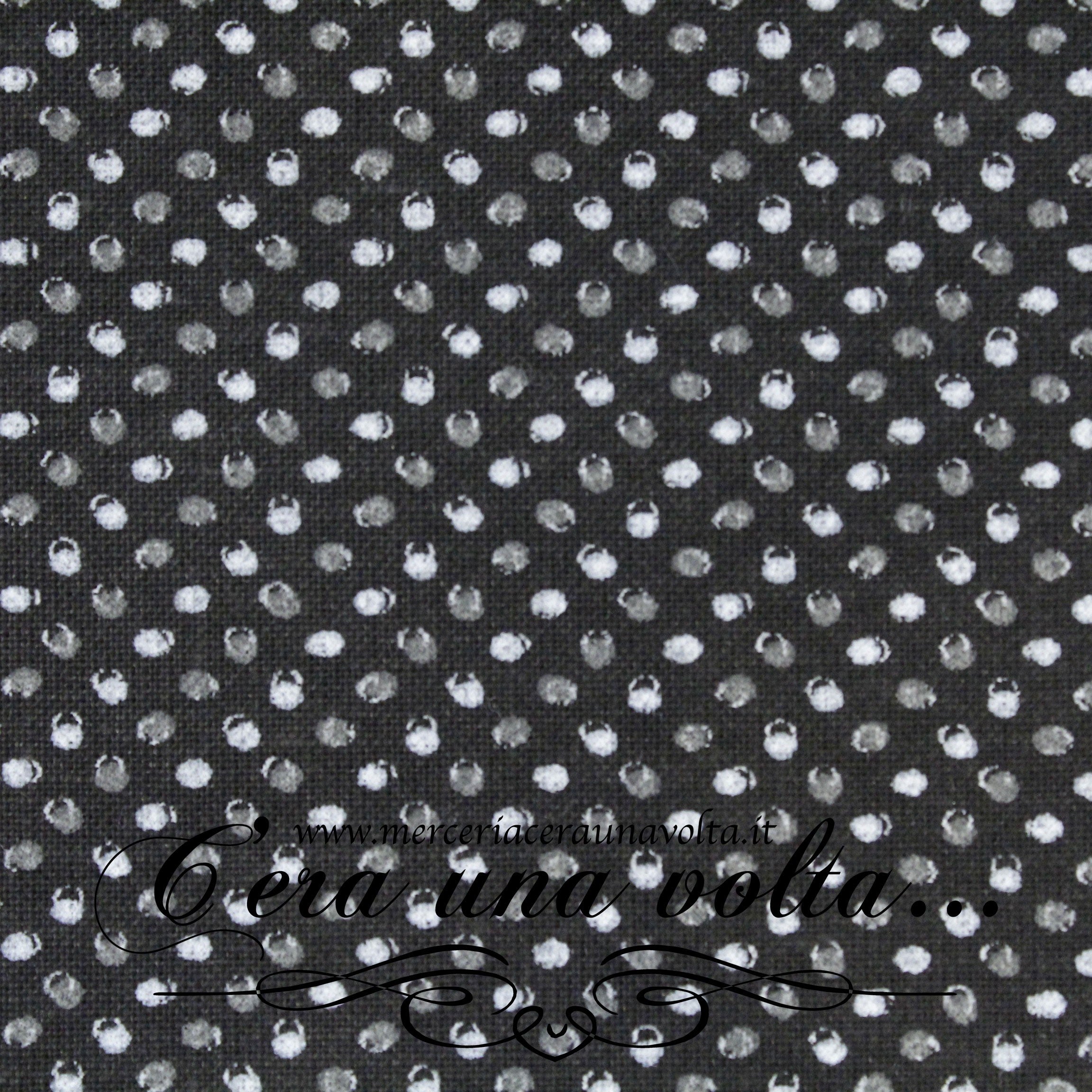 Tessuto in cotone Pois, particolare Ardesia e Grigio su fondo nero, per un look divertente e originale, perfetto per camicie...