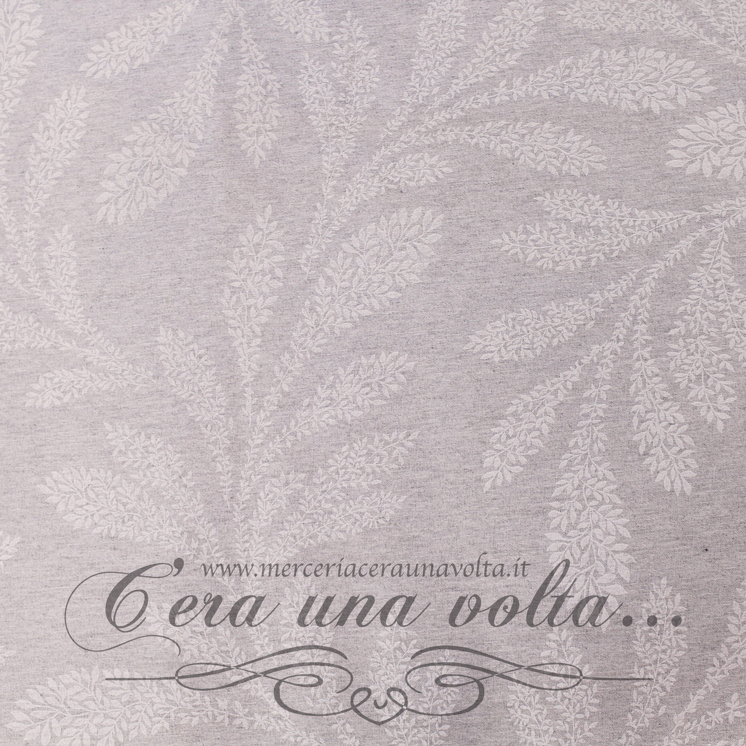 Uno stile liberty, per questo tessuto ispirato alla naturale eleganza della natura, un delicato Grigio Seta fa da sfondo a sinuose e morbide foglie bianche, creando un'atmosfera nostalgica sospesa nel tempo.
