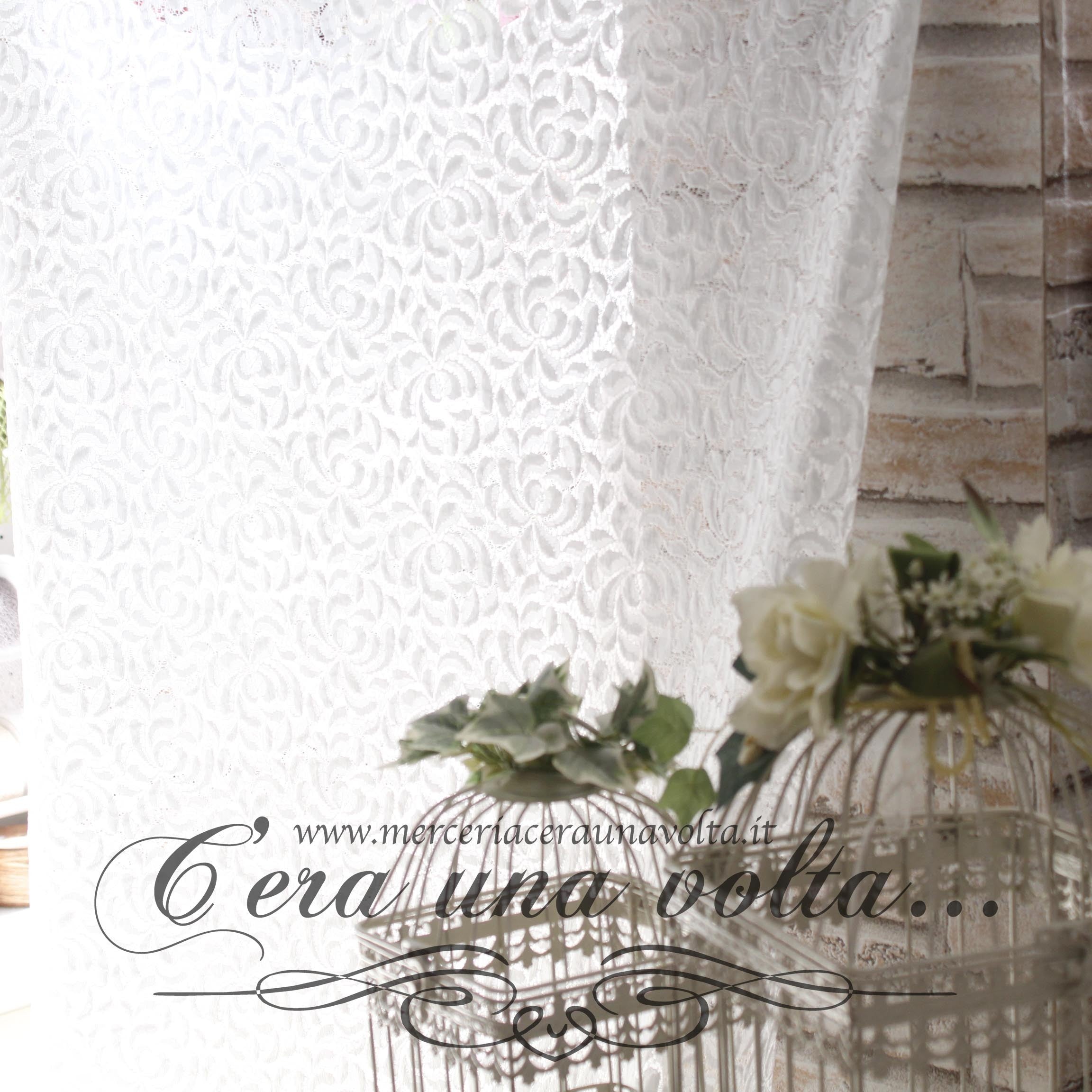 Immersi in uno splendido pizzo, dei romantici fiori ricamati a rilievo, creano con prepotente delicatezza, una scia armoniosa e piacevole, in questo tessuto per tende smerlato sul fondo con pizzo macramè.