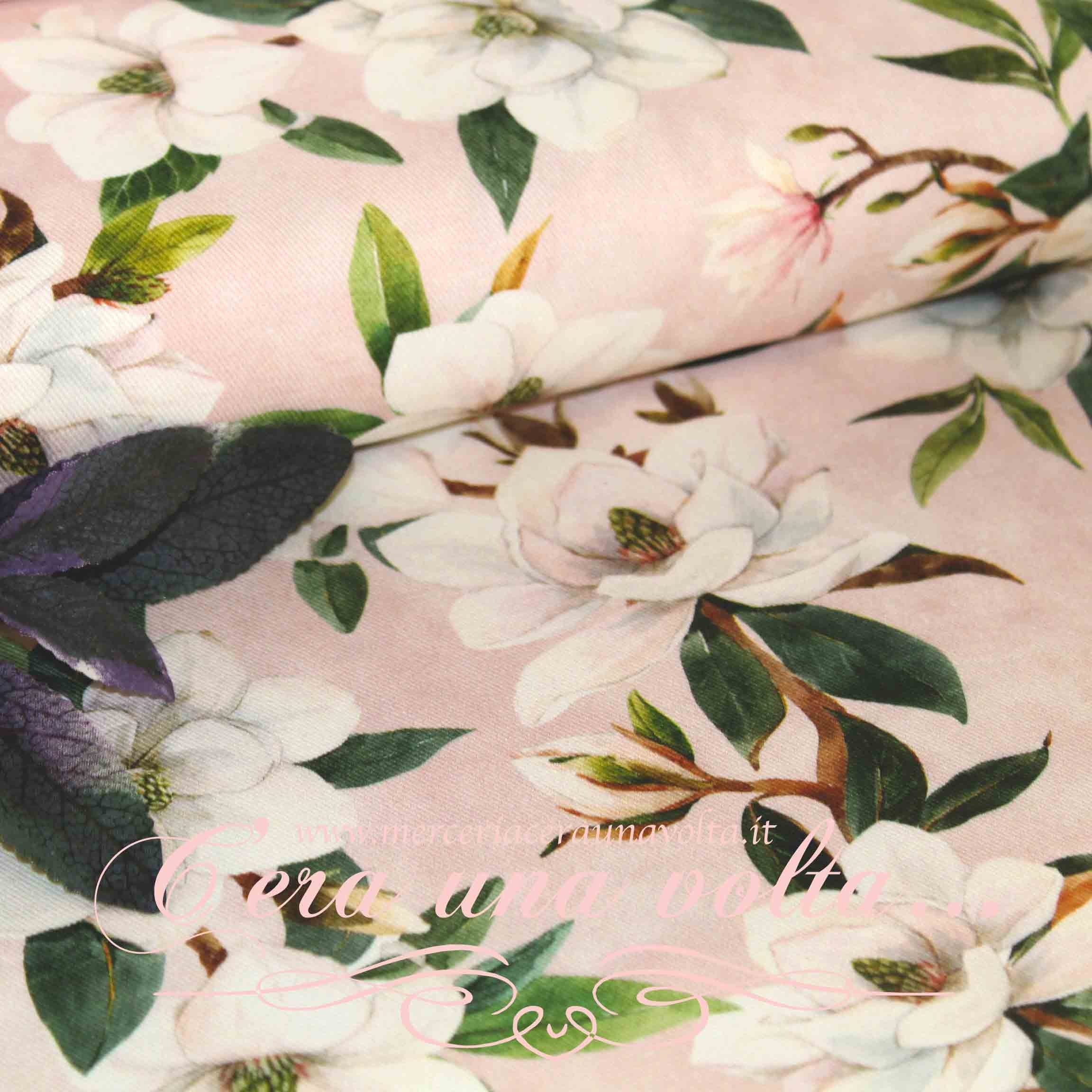 Una pianta ornamentale particolarmente apprezzata per i vistosi e profumati fiori, stampati in questo tessuto che regala una sensazione visiva...
