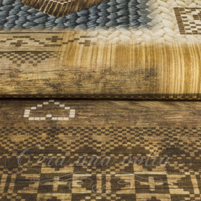 Tessuto stampato con oggetti semplici, dai dettagli green, ispirati alla natura, colori pastellati, simili a quelli che i timidi raggi del sole invernale creano quando incontrano la brina mattutina.