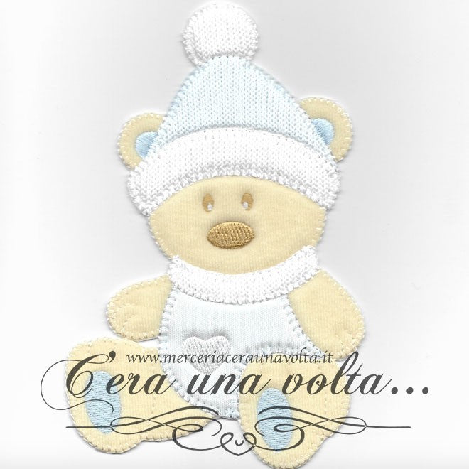 Toppa termoadesiva Bears Azzurra, ideale per decorare copertine per neonati