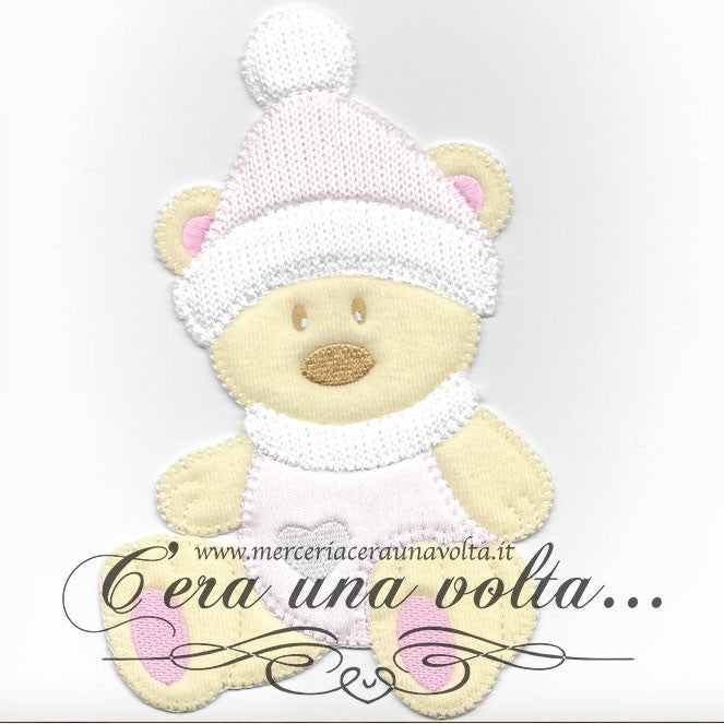 Toppa termoadesiva Bears Rosa, ideale per decorare copertine per neonatiColore Miele, Bianco e RosaMisure: h cm 16,5 x L cm 11Composizione: 40%Poliestere 40%...