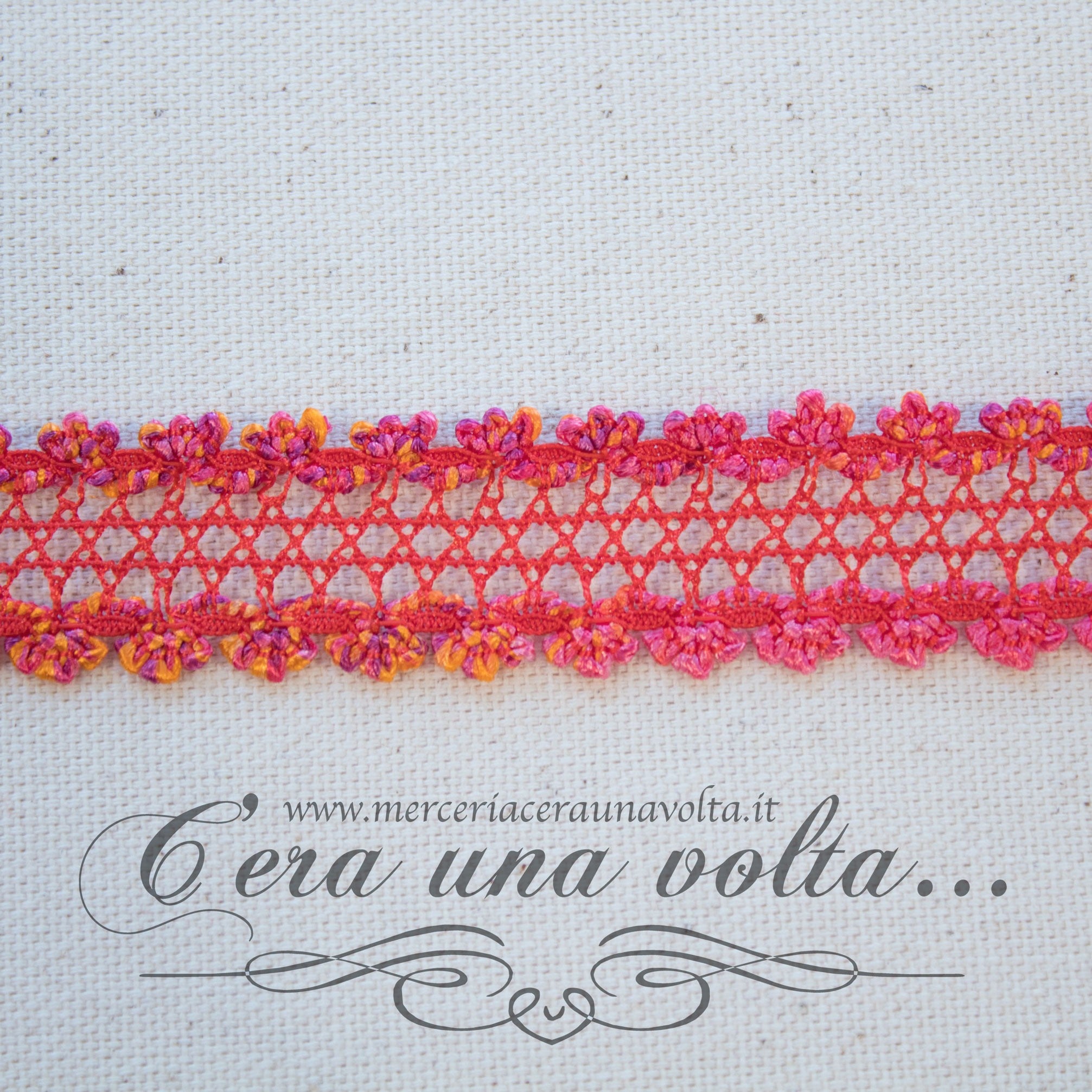 Pizzo tramezzo elasticizzato, un viaggio visivo con motivi decorativi multicolor, una rete elasticizzata incorniciata da motivi ricamati che si susseguono...