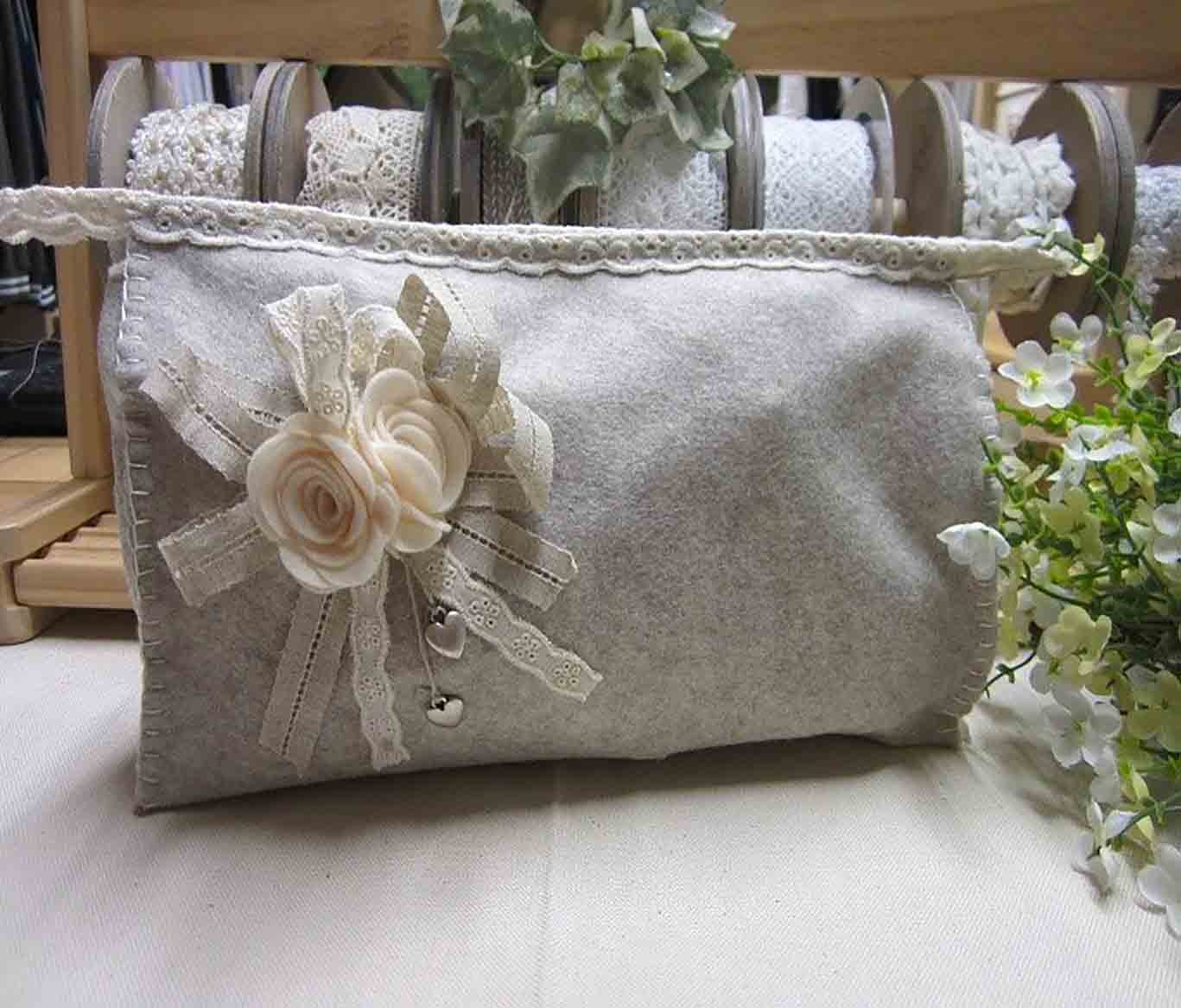 Trousse in pannolenci, una proposta fatta a mano firmata C'era una voltaMateriale Pannolenci e Pizzo SangalloMisure H cm 24 L cm...