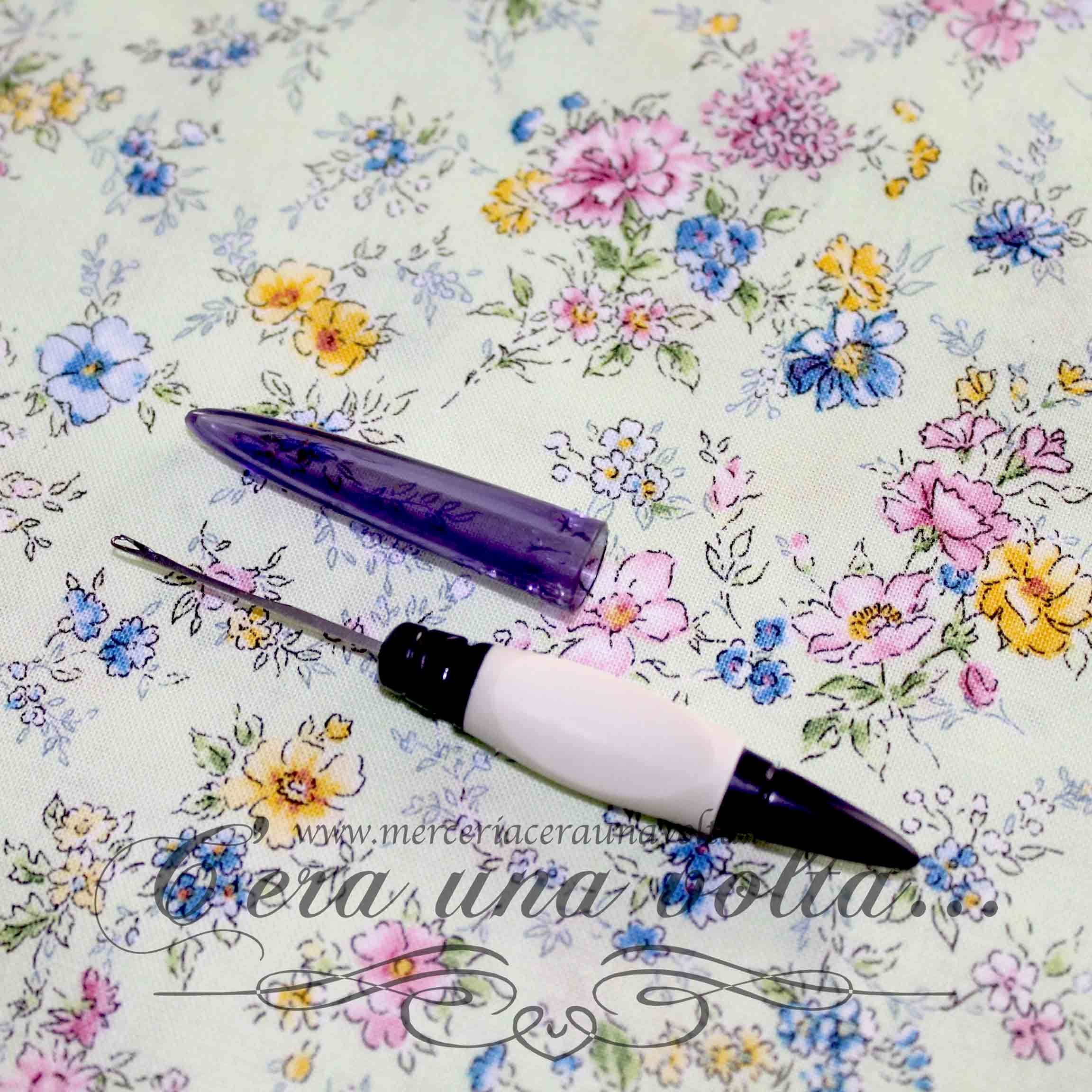 Si usa per recuperare i punti persi nei capi in maglia, ideale per infilare l'ago nelle macchine da cucire e nel tagliacuci. Impugnatura ergonomica antiscivolo grazie alle scanalature sulla superficie morbida. Il cappuccio protettivo diventa una prolunga del manico.