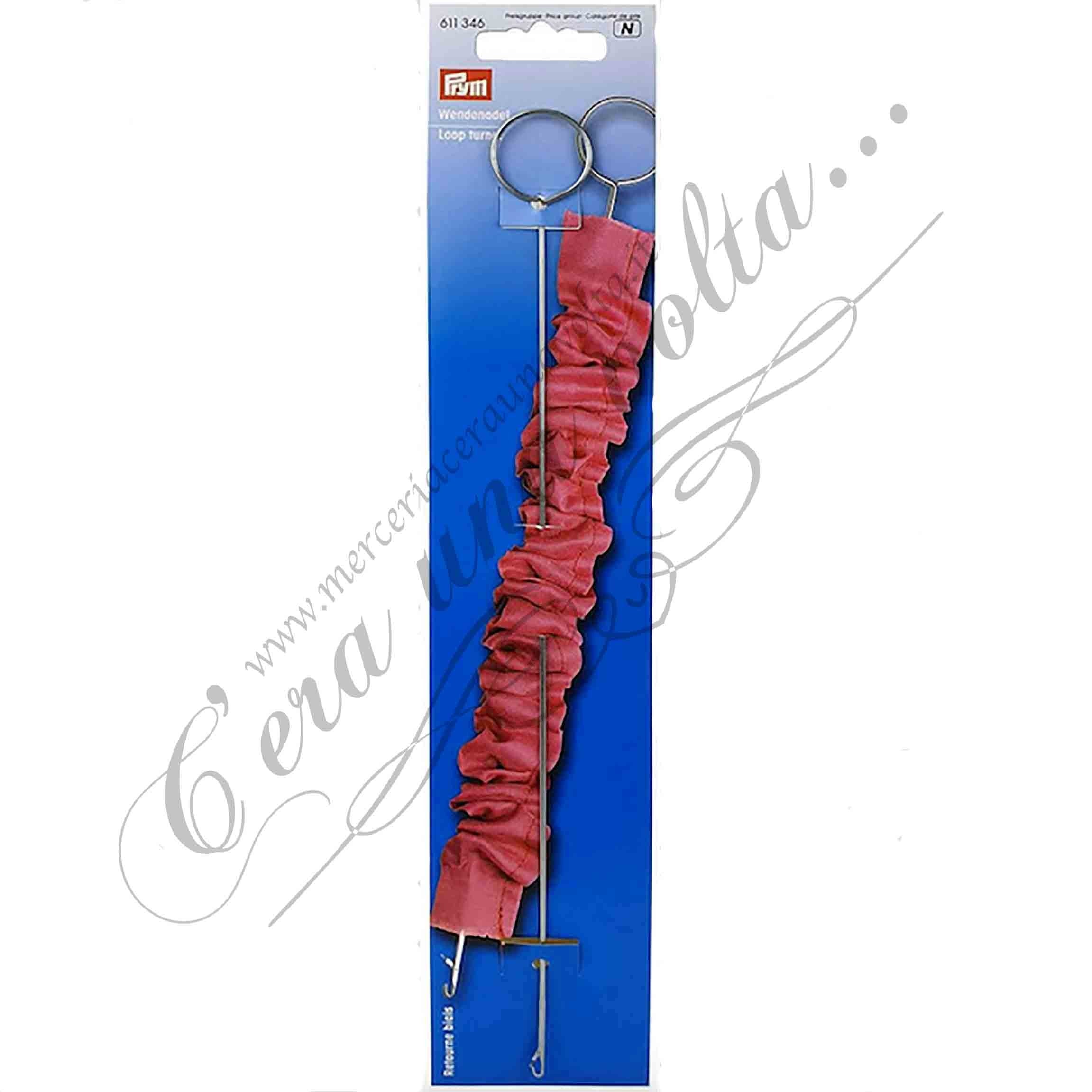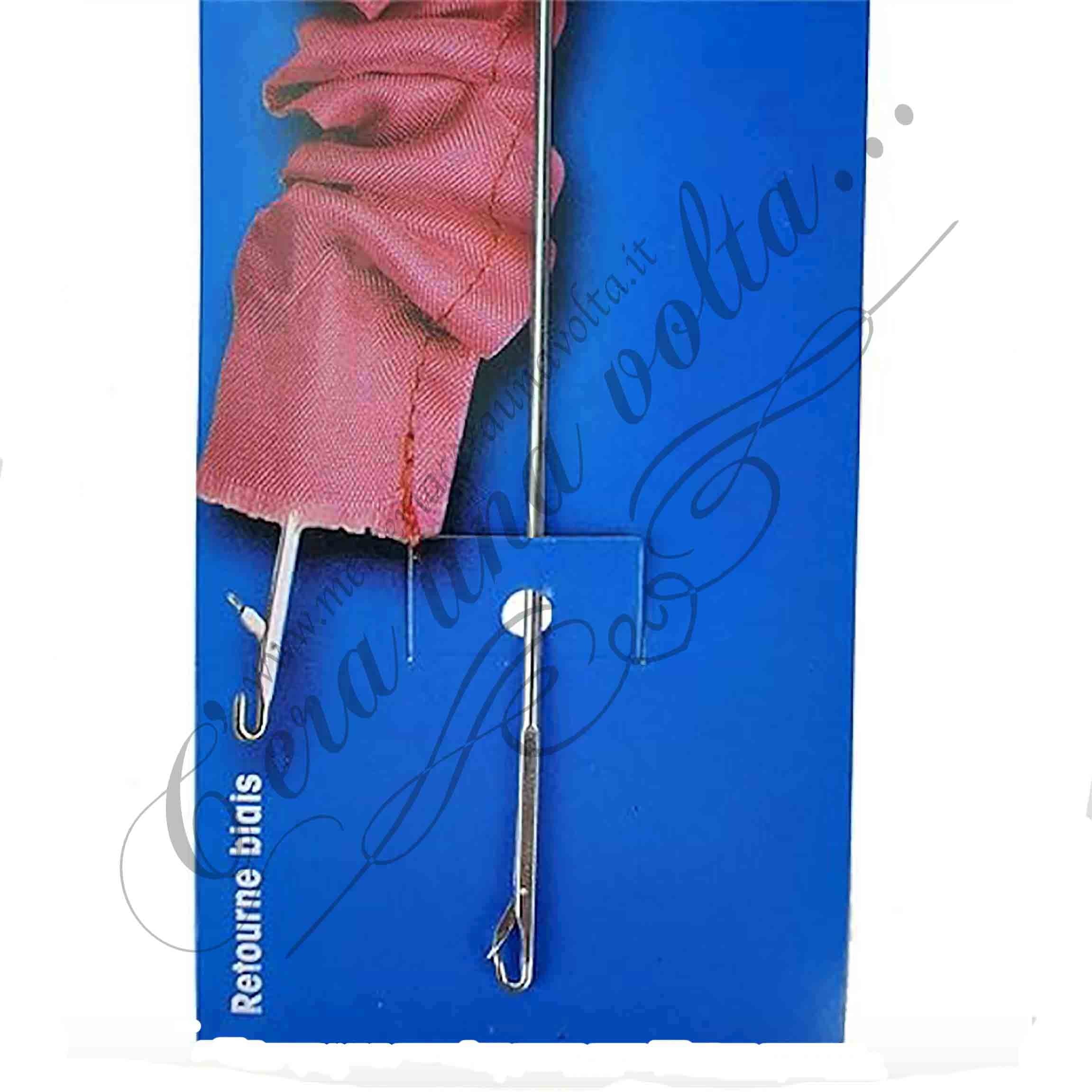Uncino per rivoltare tubi di tessuto come spalline, buste, tubolari, parti di bambole da imbottire, lavori di cucito...Semplice, pratico e veloce da utilizzare, si infila l'uncino dentro la parte di stoffa da rivoltare, si fissa l'apposito gancio alla stoffa e si tira l'intero lavoro fino al completo risvolto. Utile e pratico per lavori di sartoria, cucito e cucito creativo