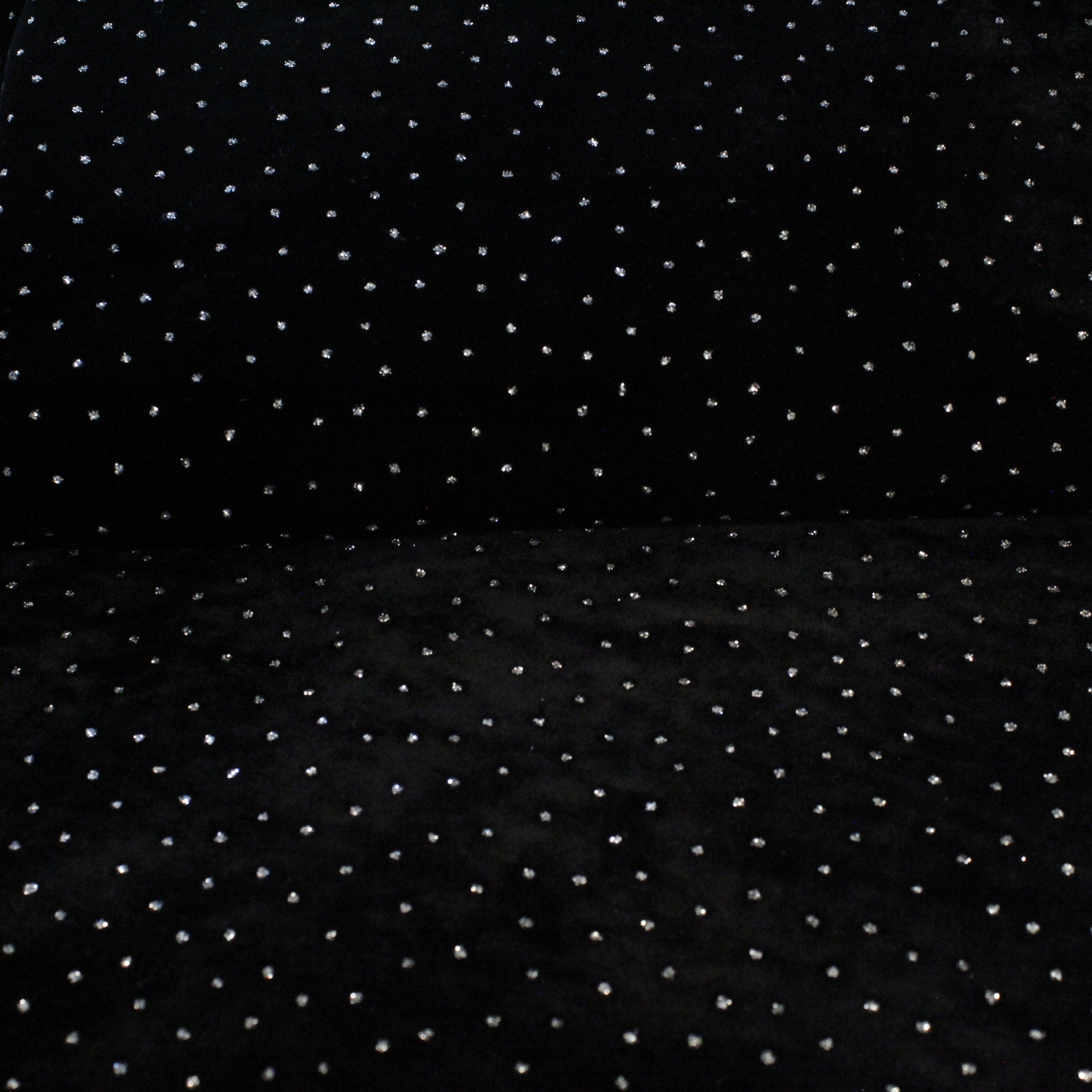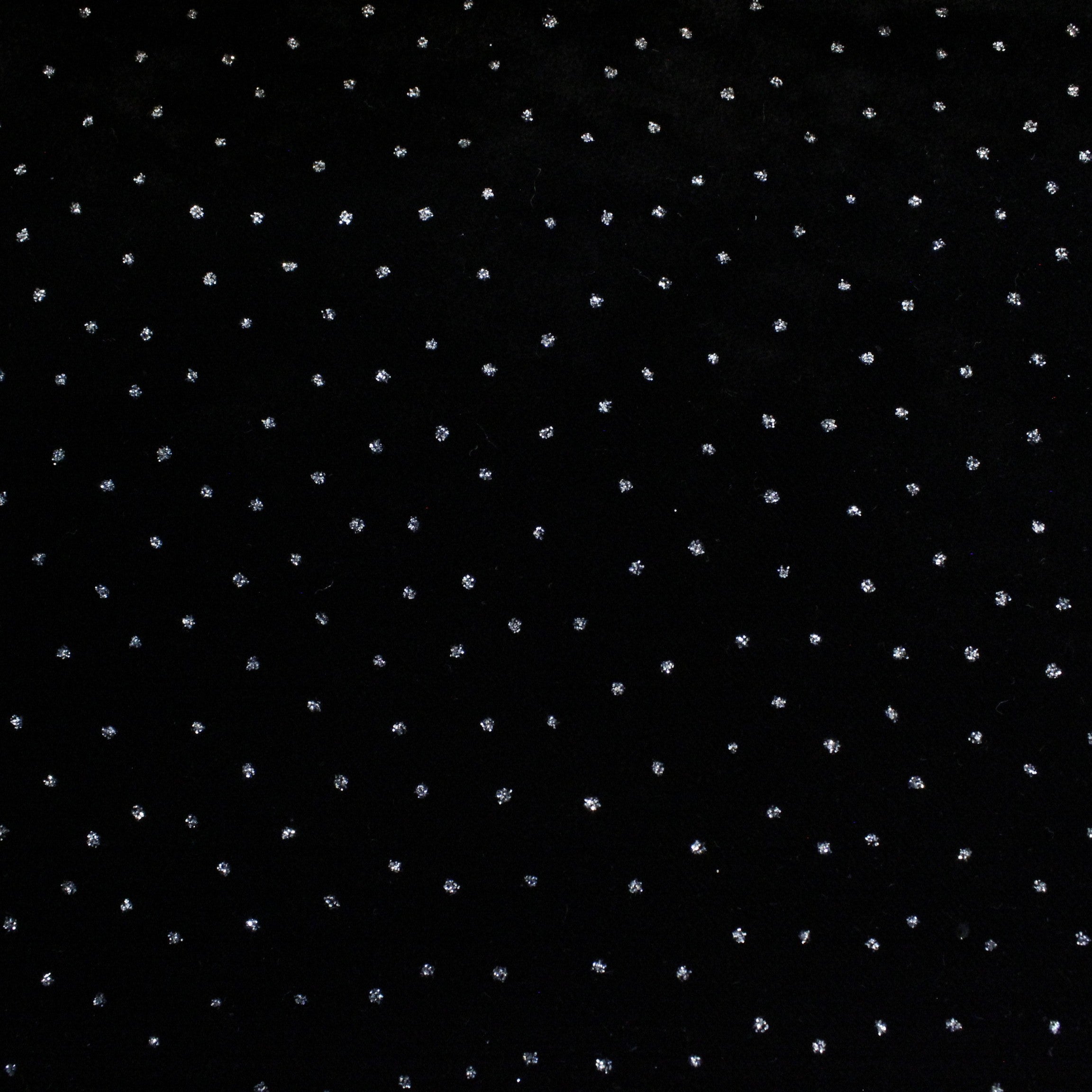 Velluto morbido di alta qualità, superficie compatta e brillante, morbidissimo al tatto, arricchito con puntini di lurex argento.Colore Nero con...