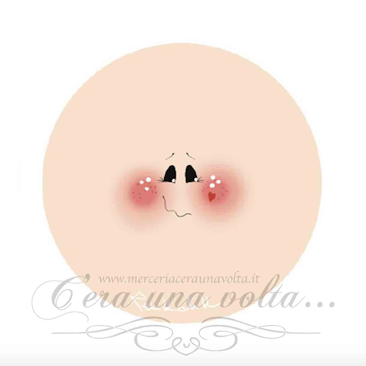 Viso stampato su tessuto adatto a sfere di polistirolo del diametro di cm 6, oppure pronte da riempire con dell'ovatta, ideali per creare bamboline e vari personaggi.