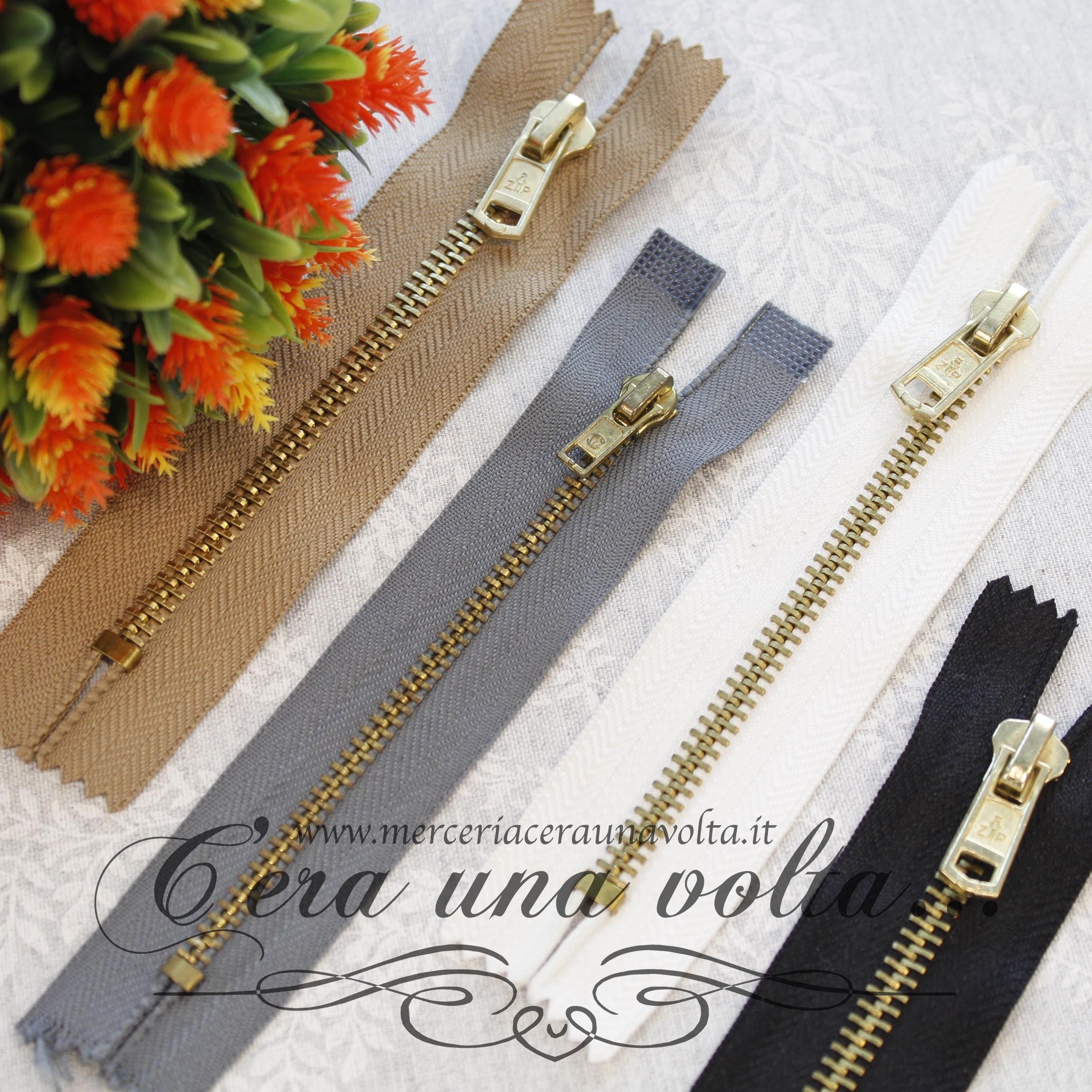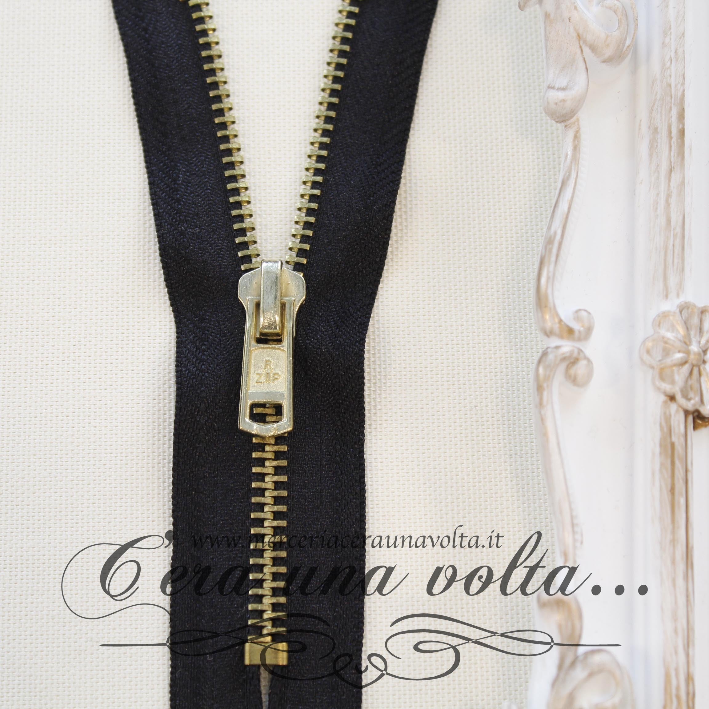 Zip in metallo per pantaloni, catena con dentini in metallo, tranciati e graffati direttamente sui nastri in cotone di supporto, leggera ma resistente è ideale per l'abbigliamento sportivo e per accessori. La parte terminale è munita di un fermo che ne impedisce l'apertura. Disponibile in 2 misure e 12 colori